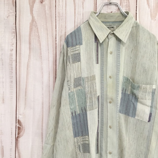 【長袖シャツ】 ビッグサイズ 総柄 透け感 日本製 ヴィンテージ XL 古着 [220829-007]