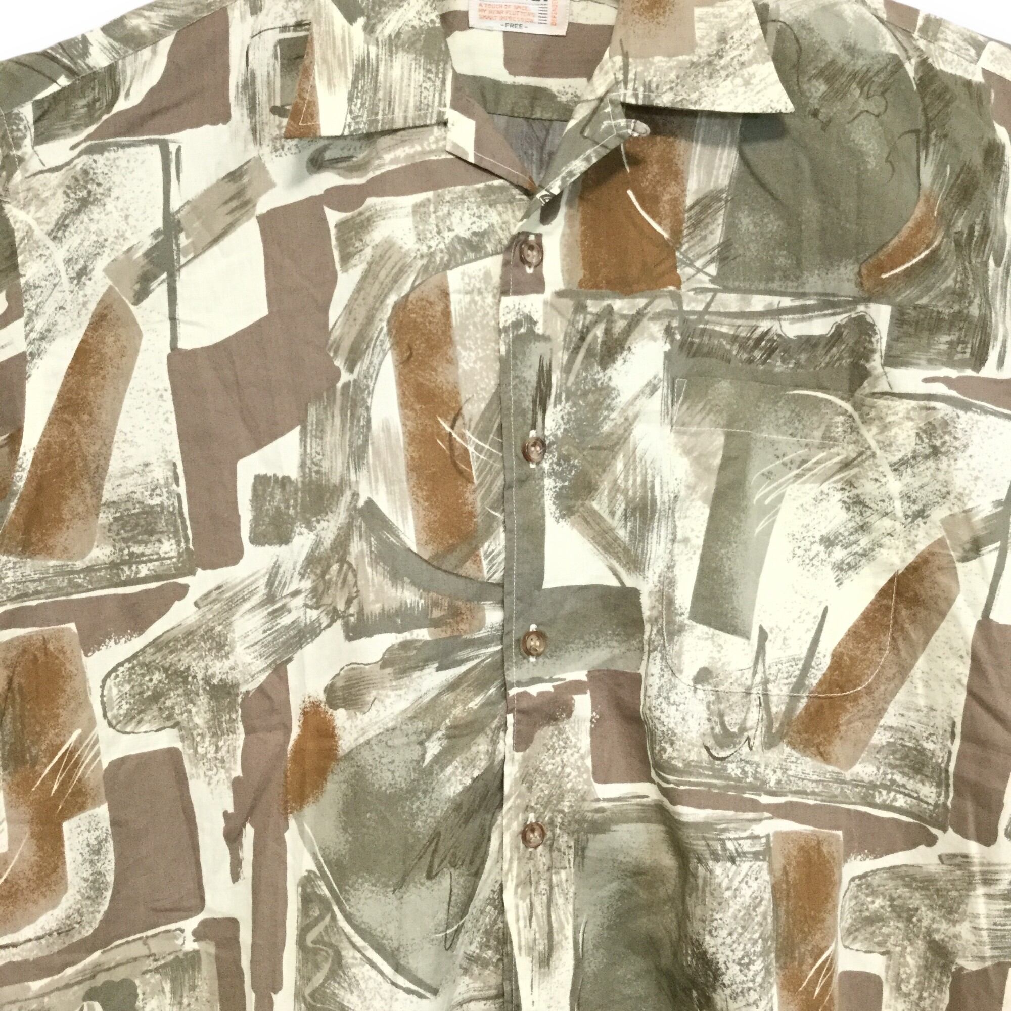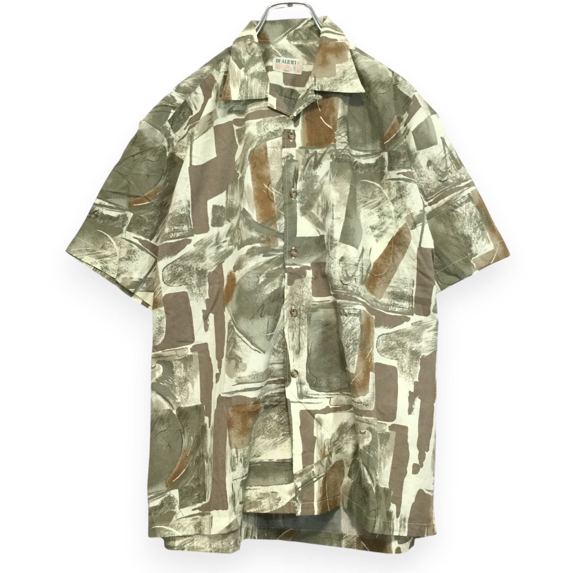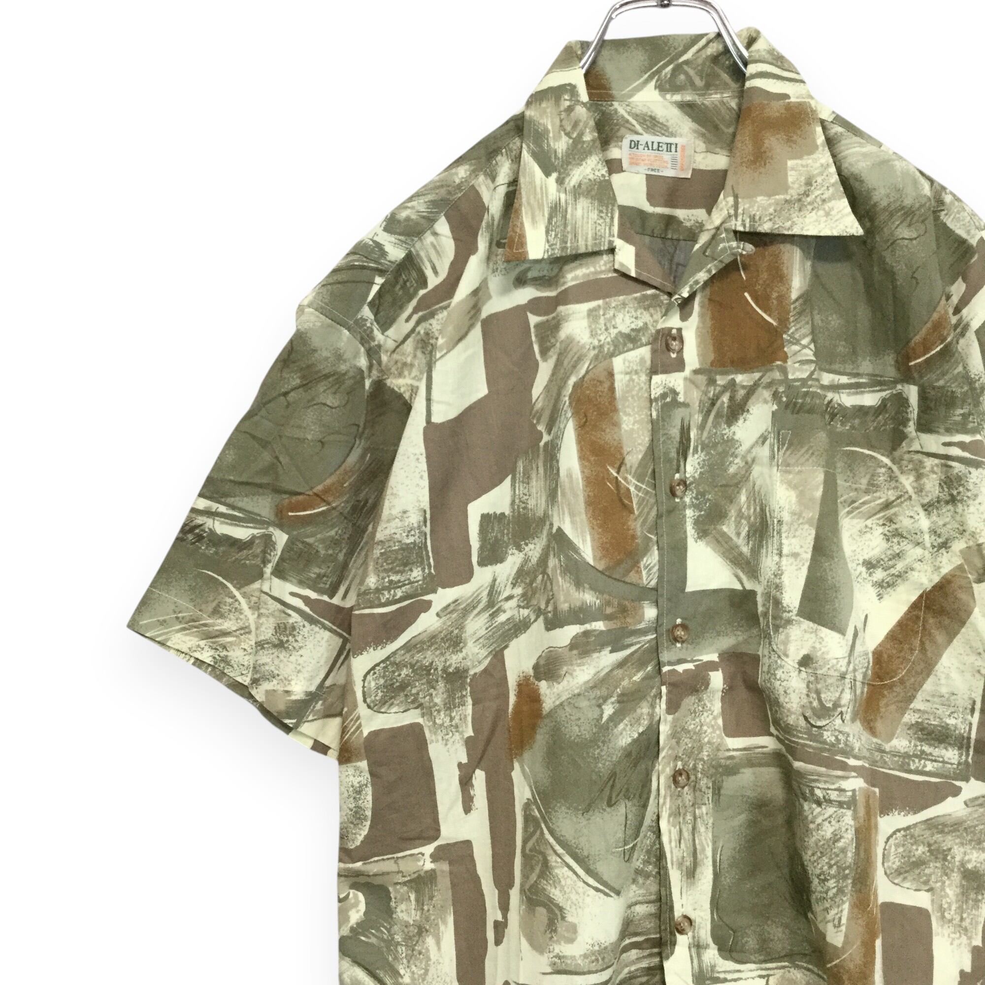 【レトロ オープンカラー 総柄 半袖シャツ】開襟 一点もの 替えボタン XL相当 古着 [230526-033]
