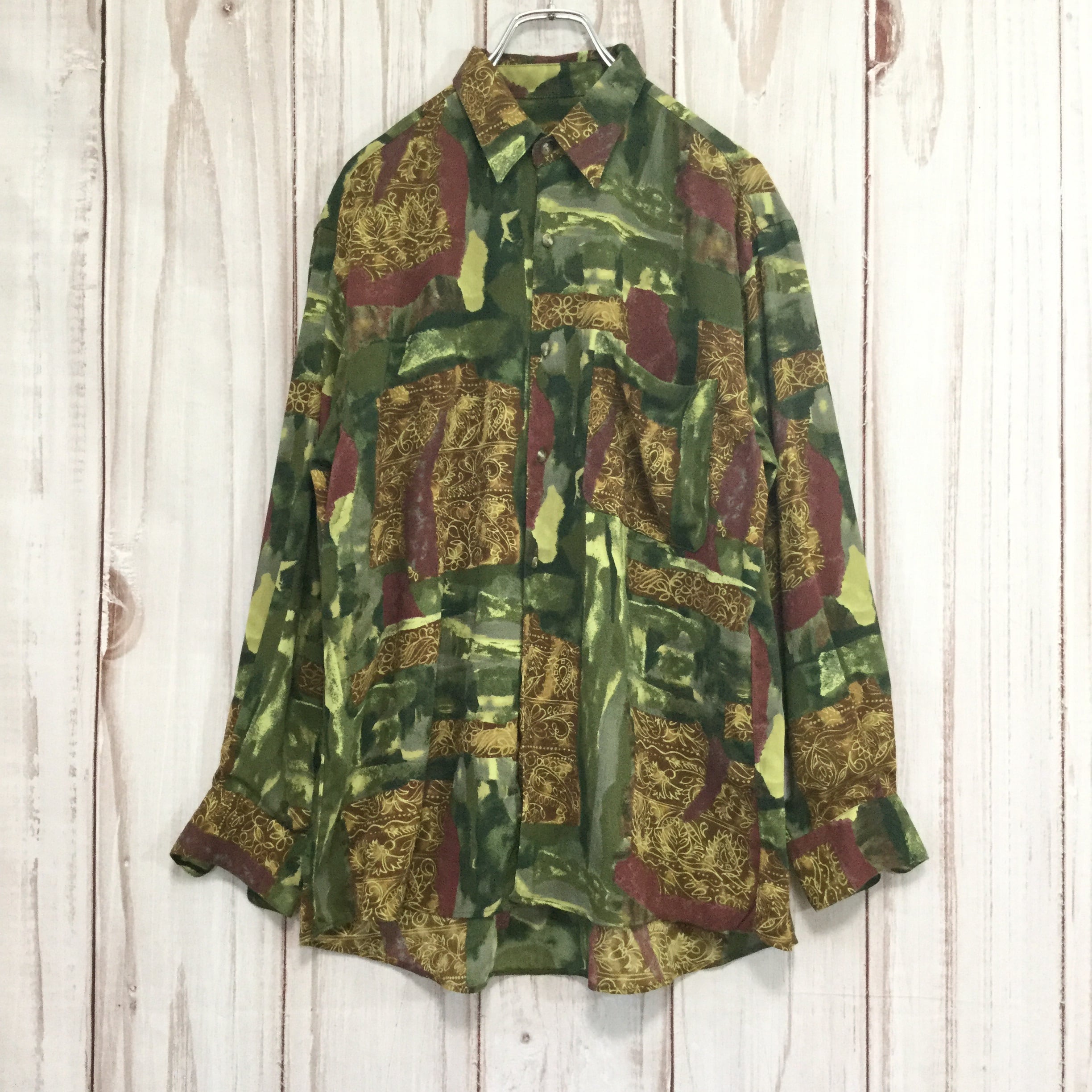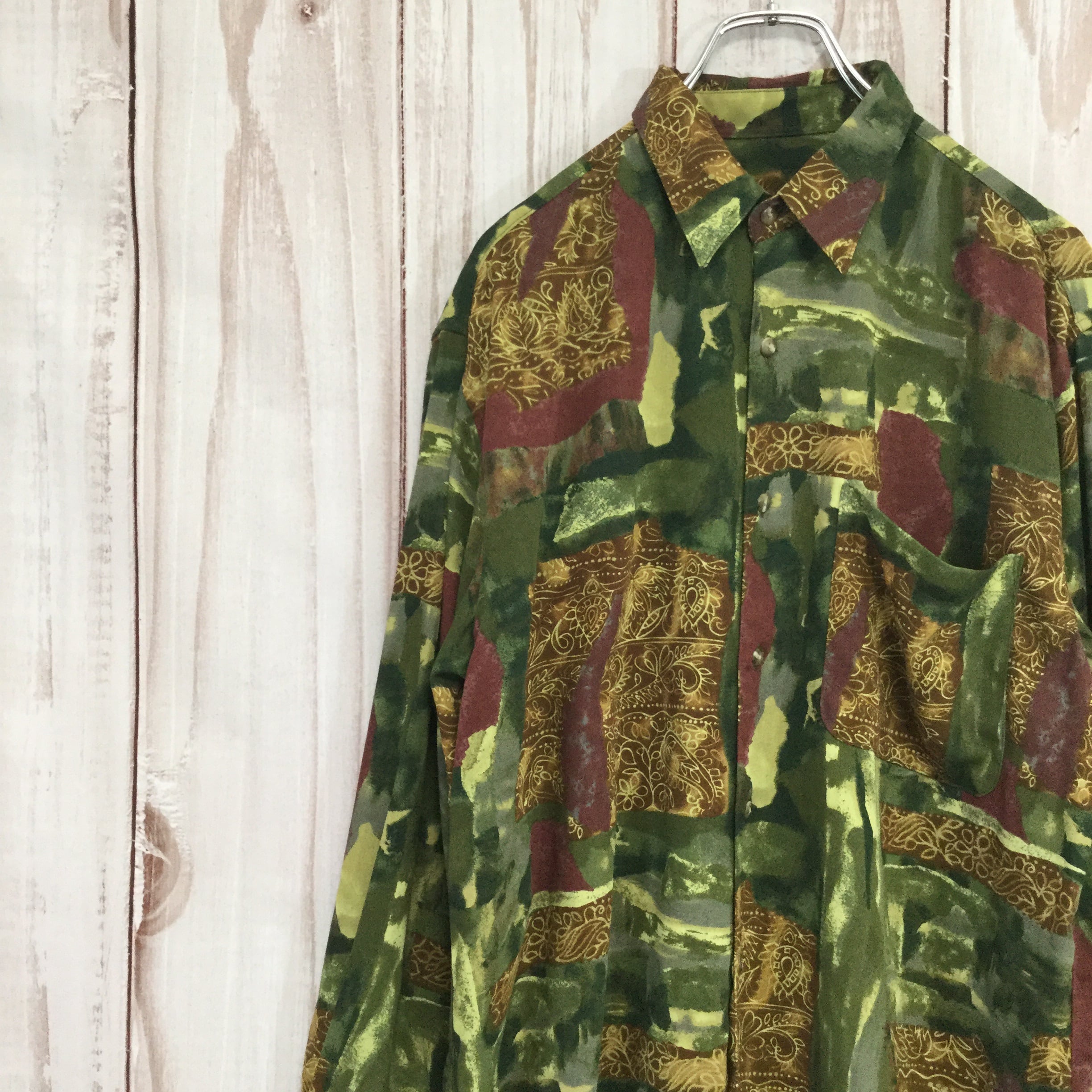 【ヴィンテージ 長袖シャツ】 オーバーサイズ 総柄 日本製 M 古着 [220829-002]
