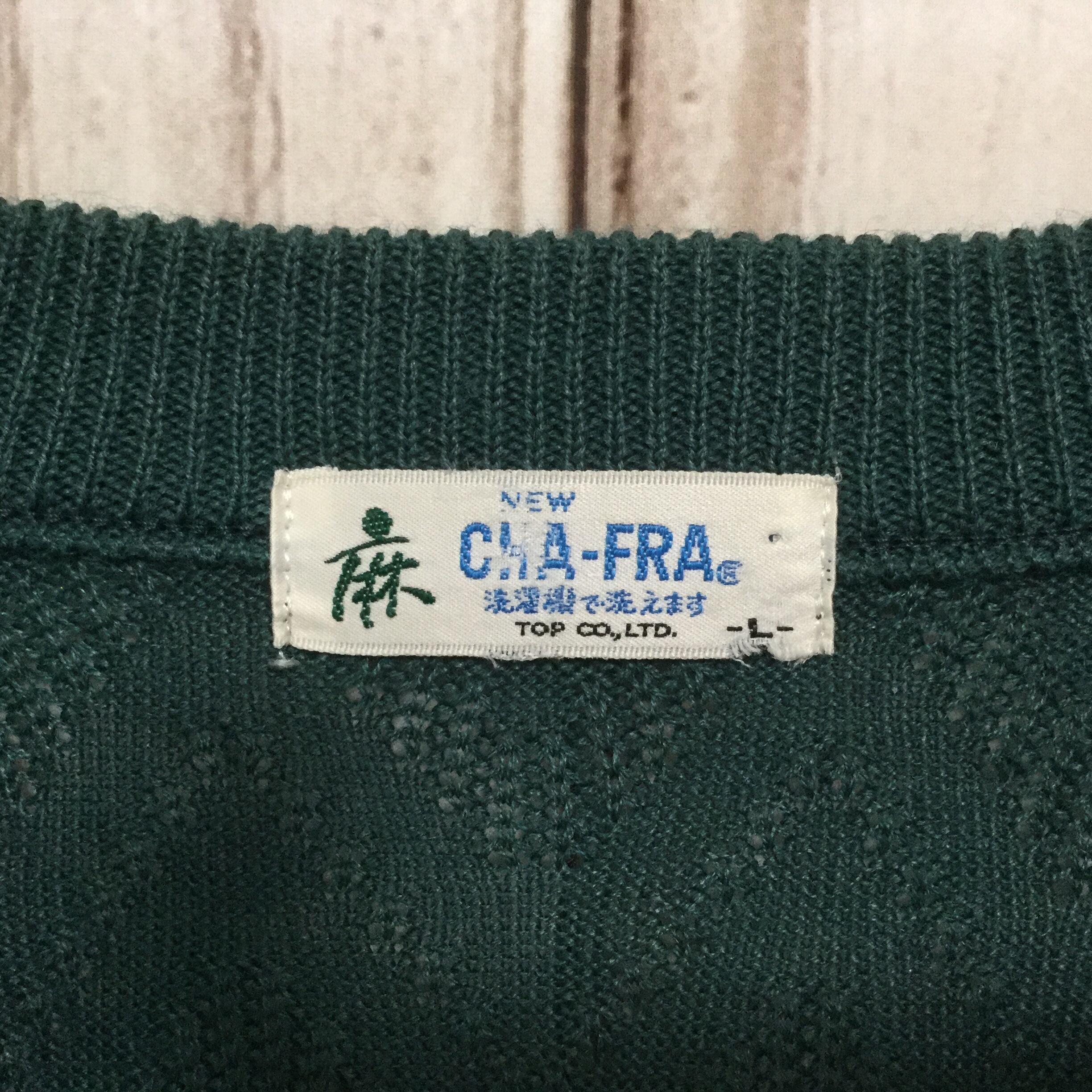 ヴィンテージ リネン混 透かし編み セーター 緑