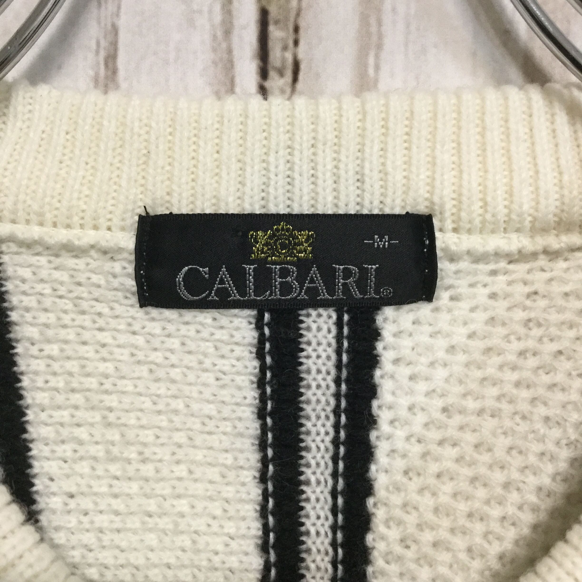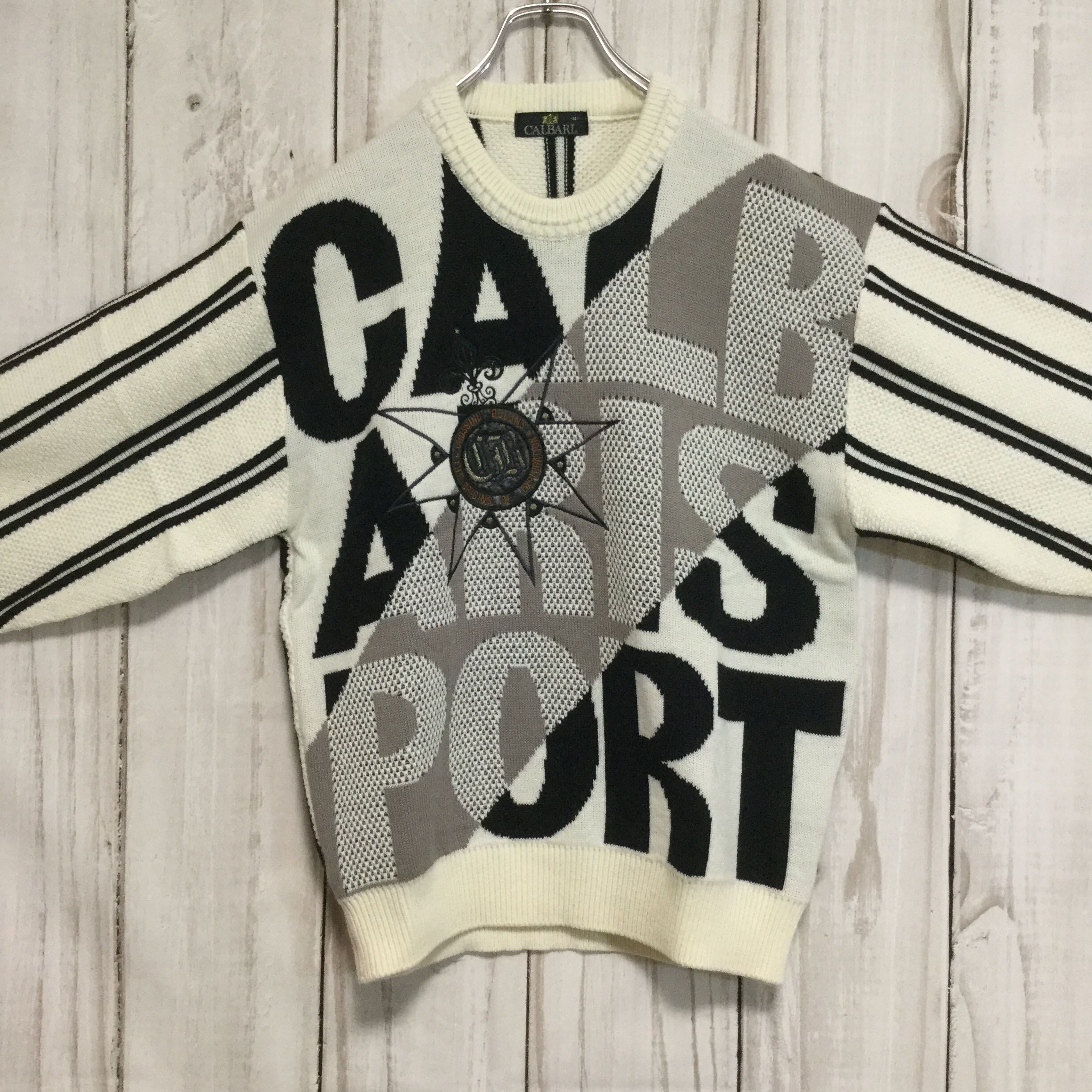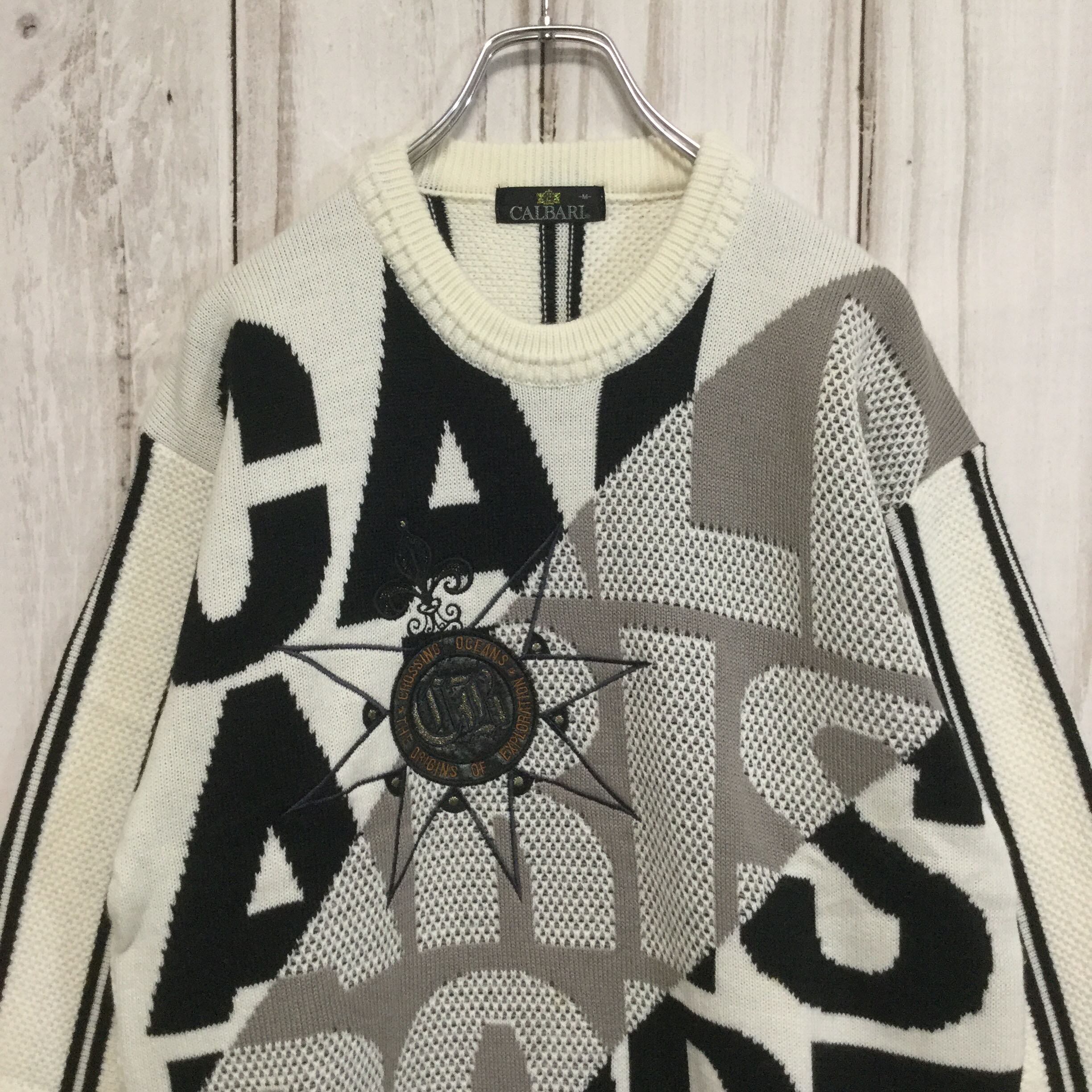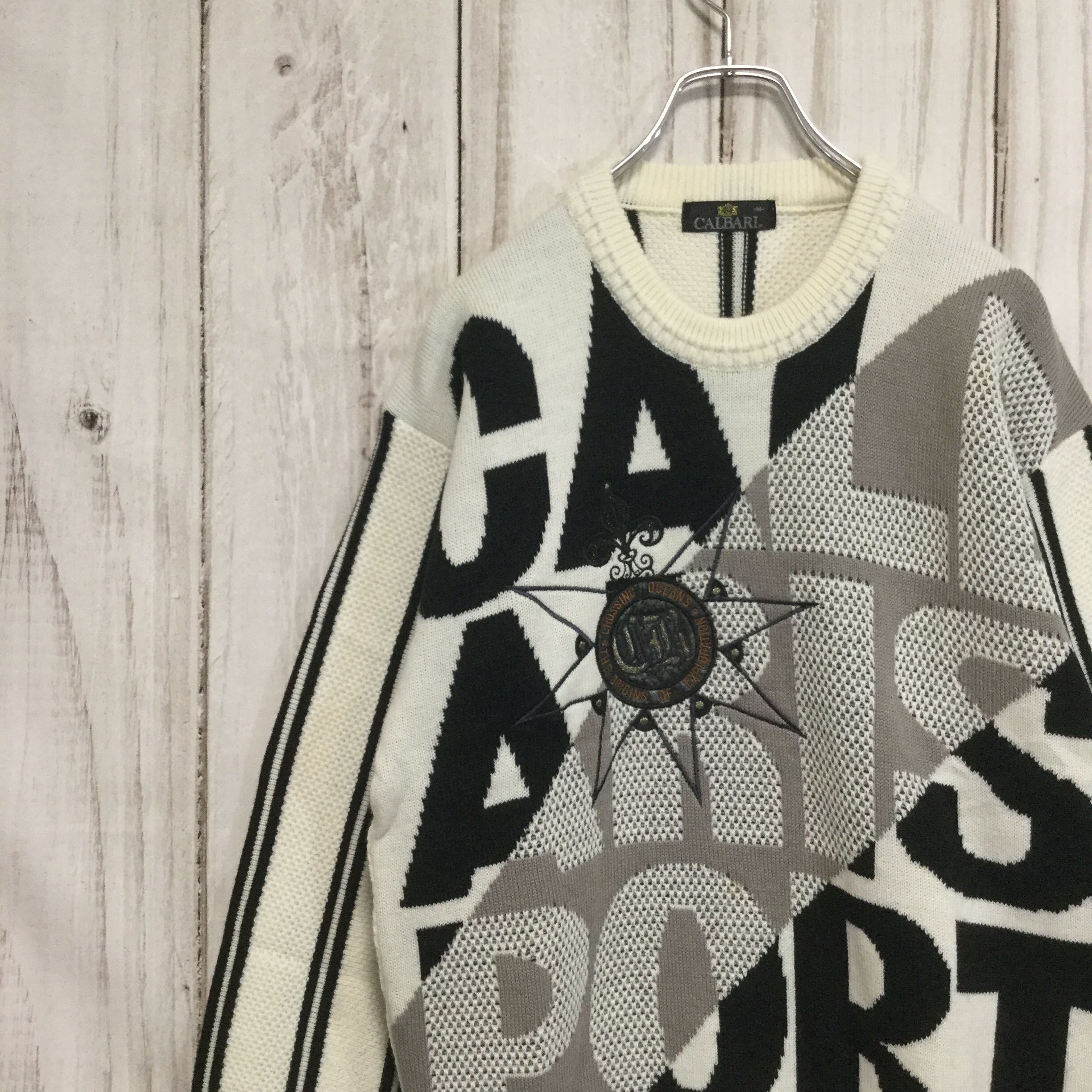 【カルバリ 刺繍入りニット】美品 90s 日本製 M 白 古着 CALBARI [231203-002]