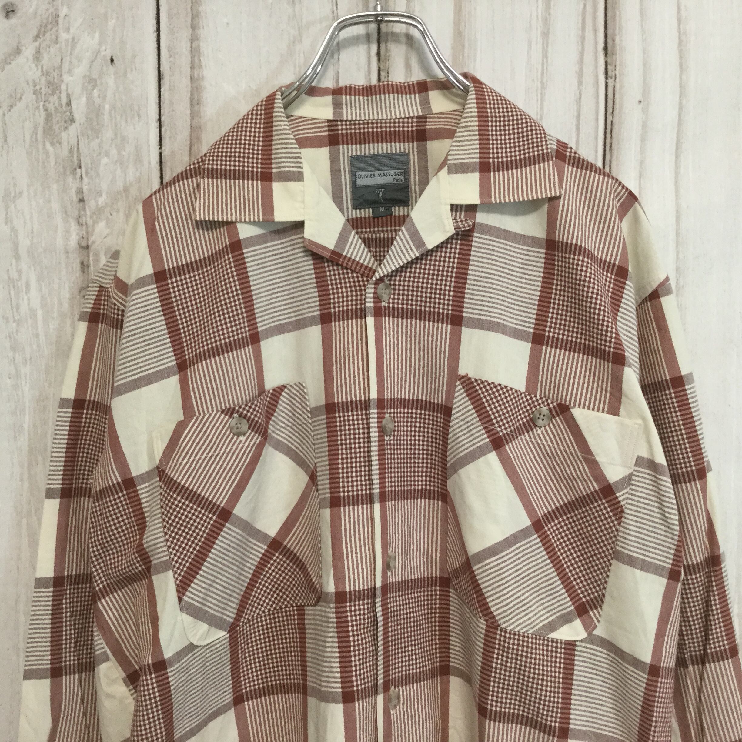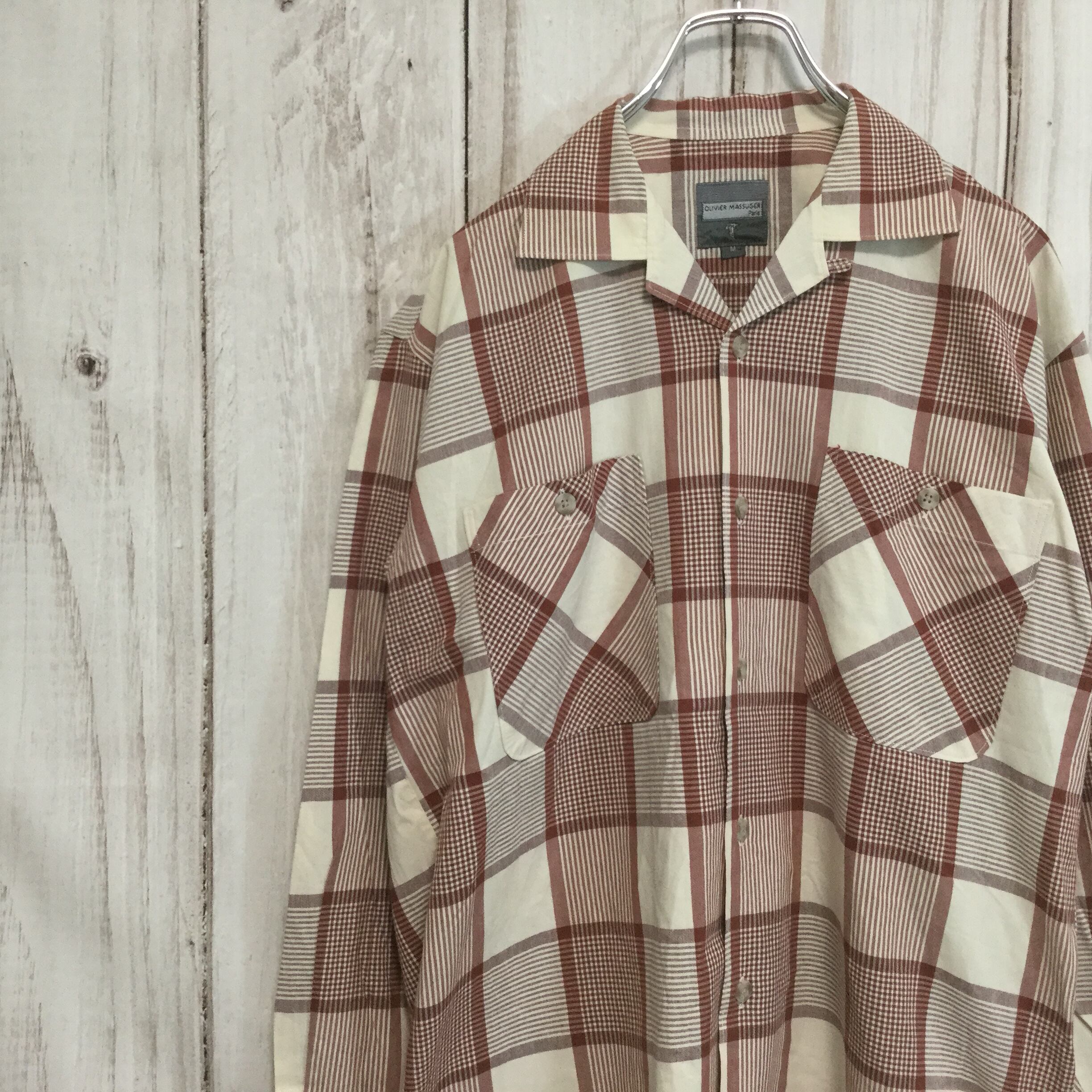 【長袖オープンカラーシャツ】オーバーサイズ 開襟 チェック M 古着 [240220-012]