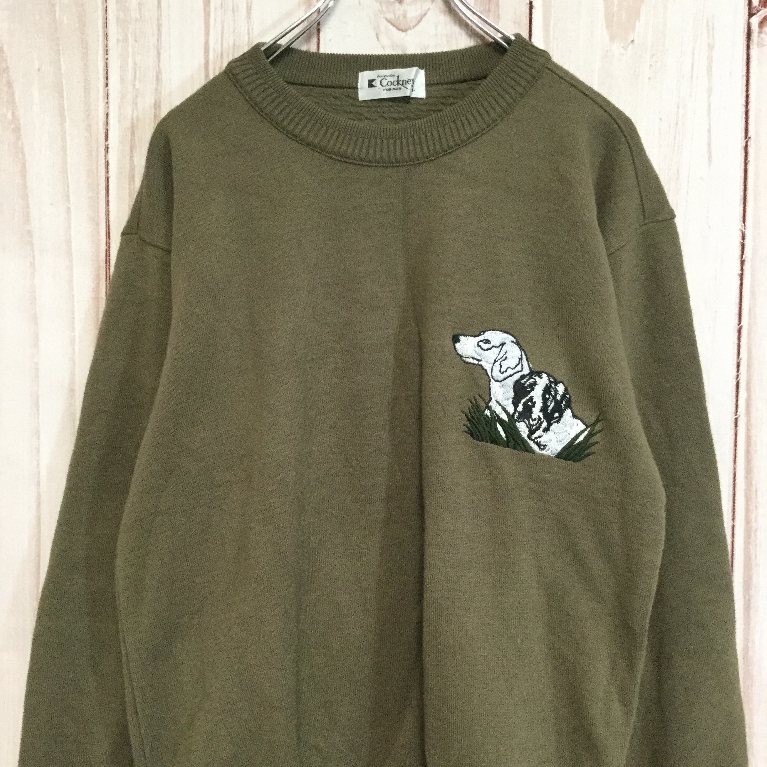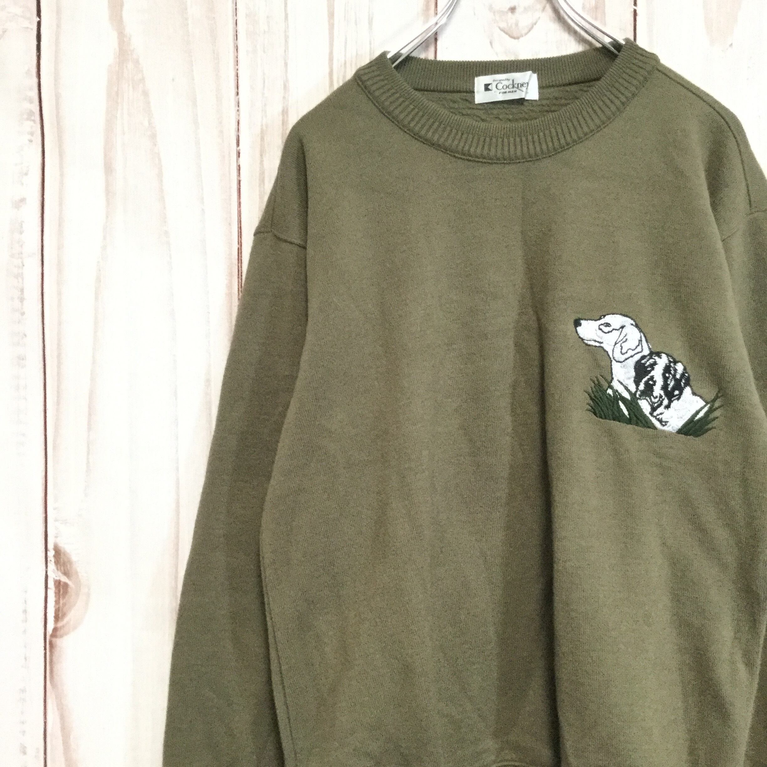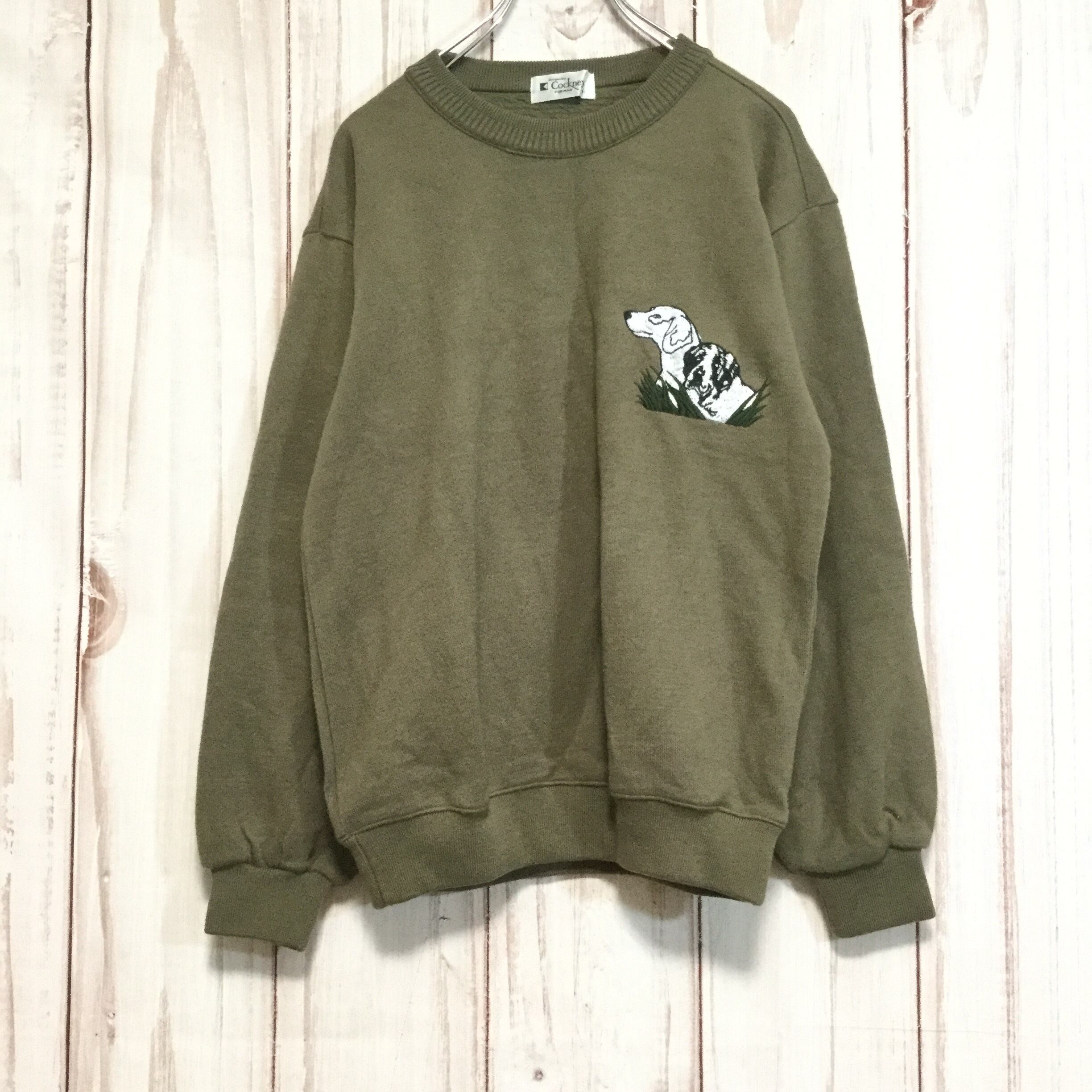 【スウェット】 アニマル刺繍 M ベージュ 古着