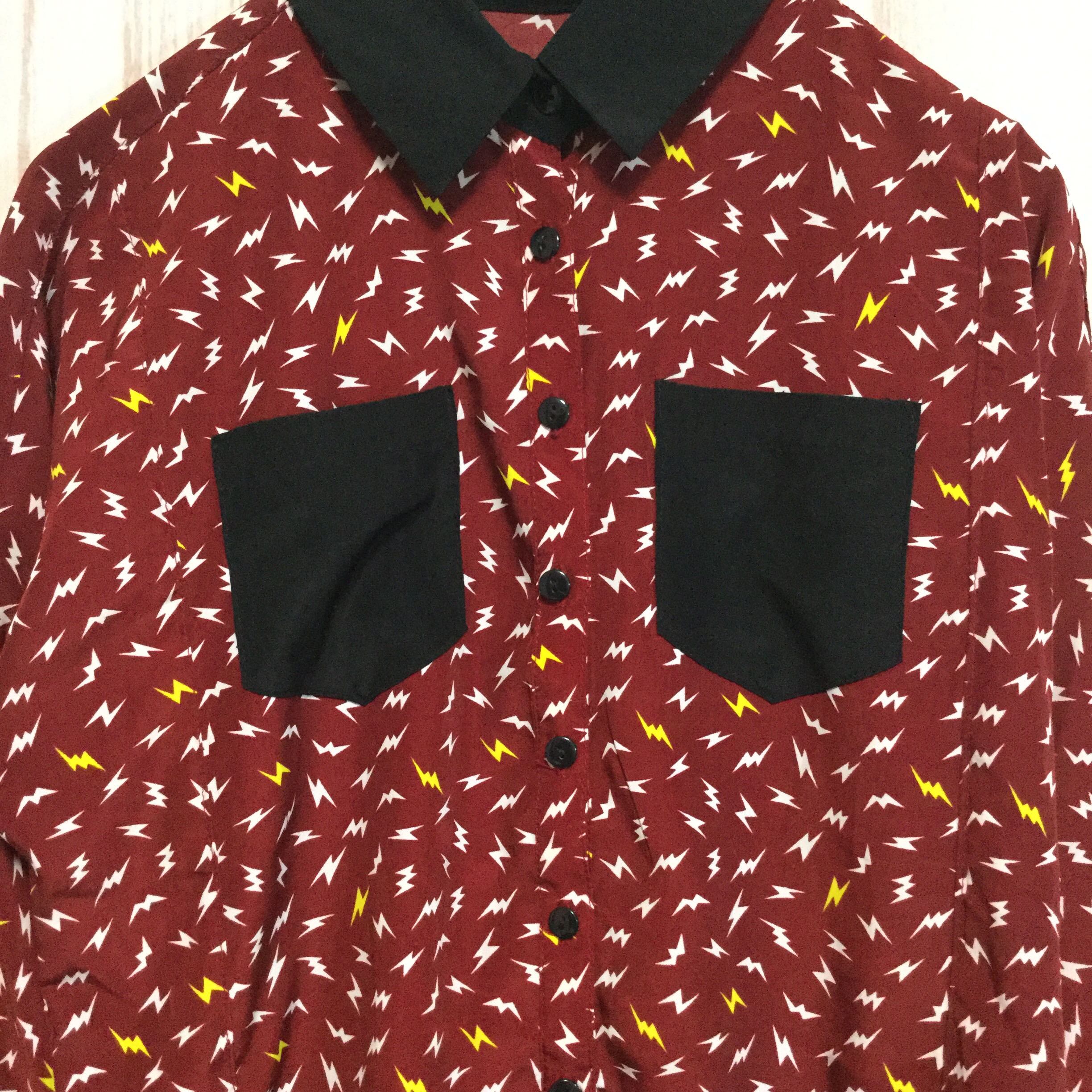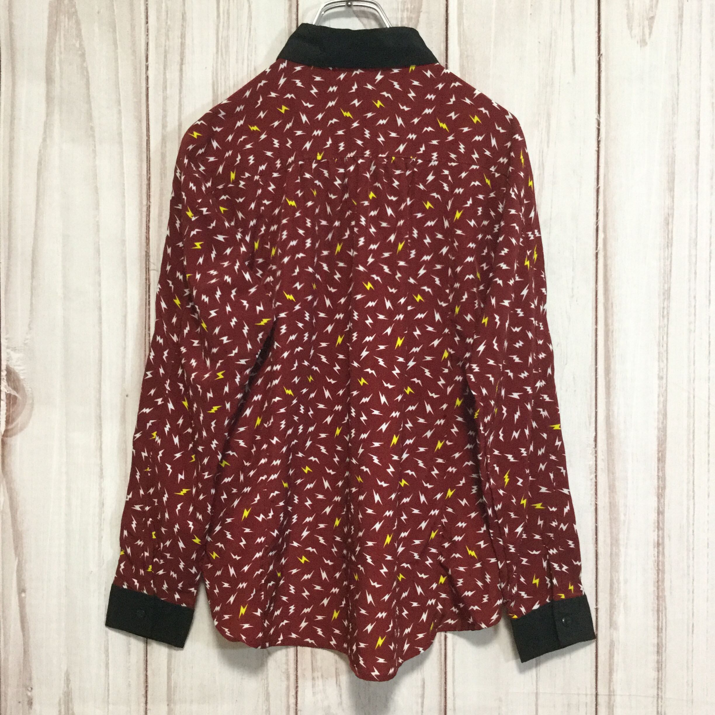 【長袖シャツ】 昭和レトロ ヴィンテージ 両ポケット M エンジ 古着 [231022-005]