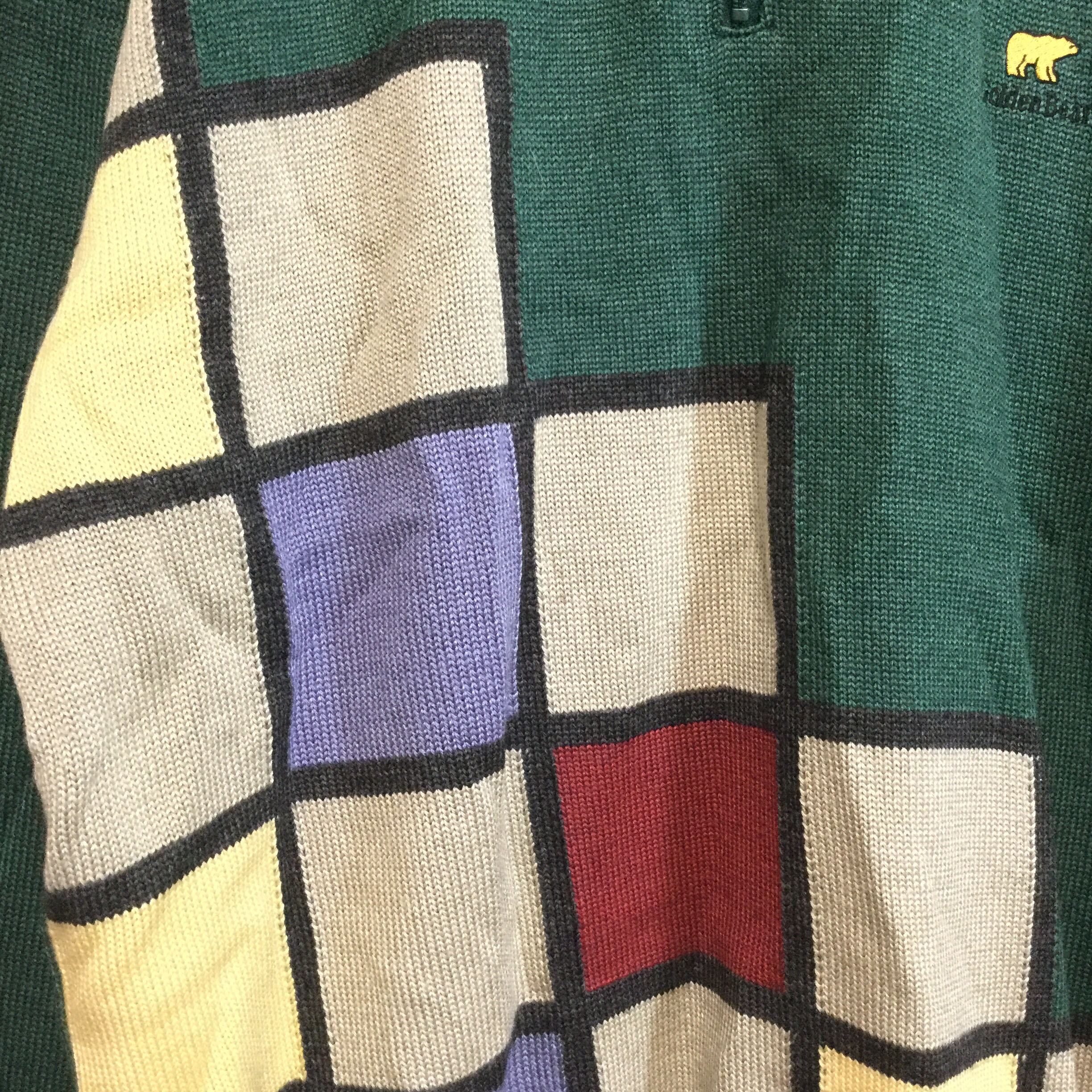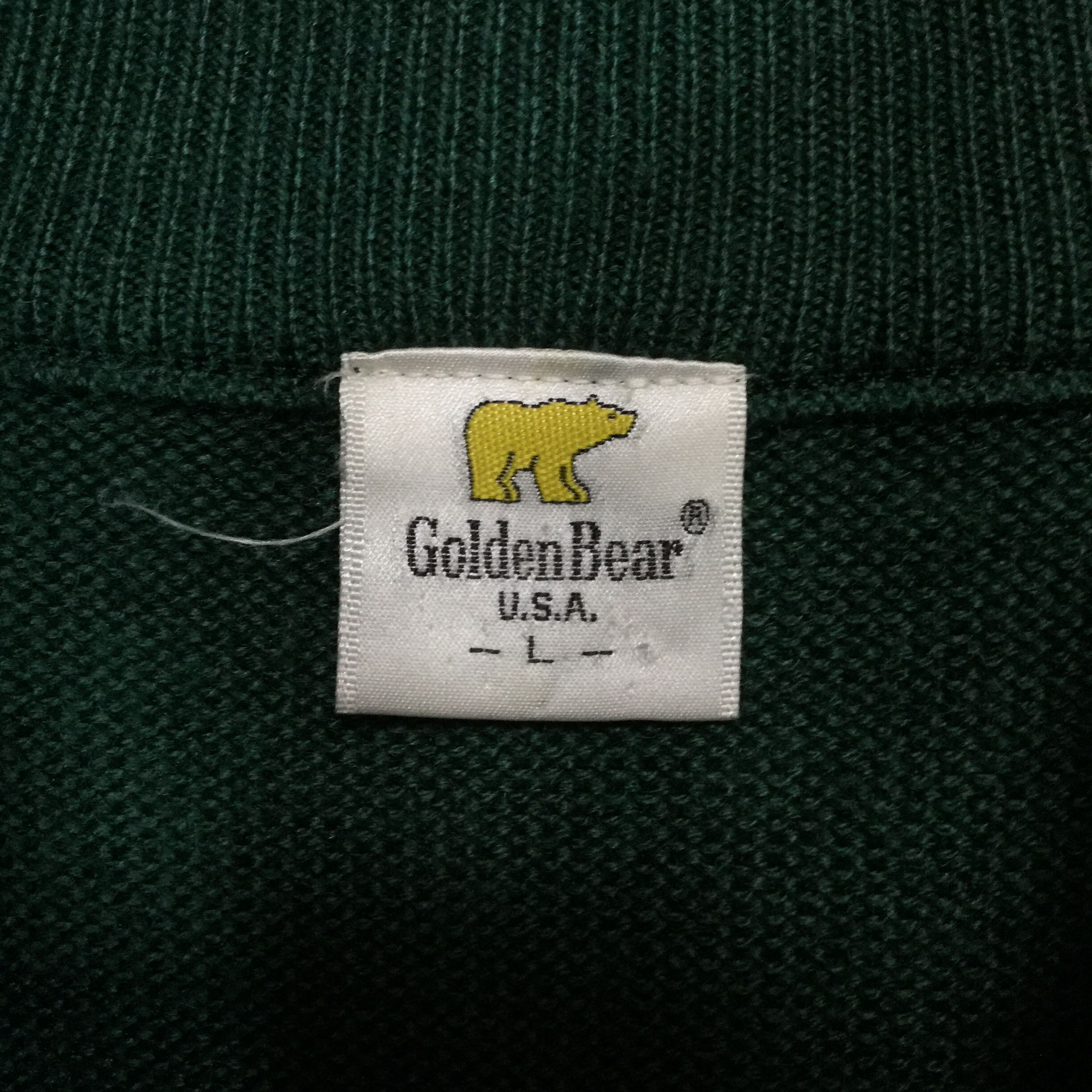 【ゴールデンベア ハーフジップニット】昭和レトロ ワンポイントロゴ刺繍 ジップチャーム L 緑 Golden Bear 古着 [231203-009]