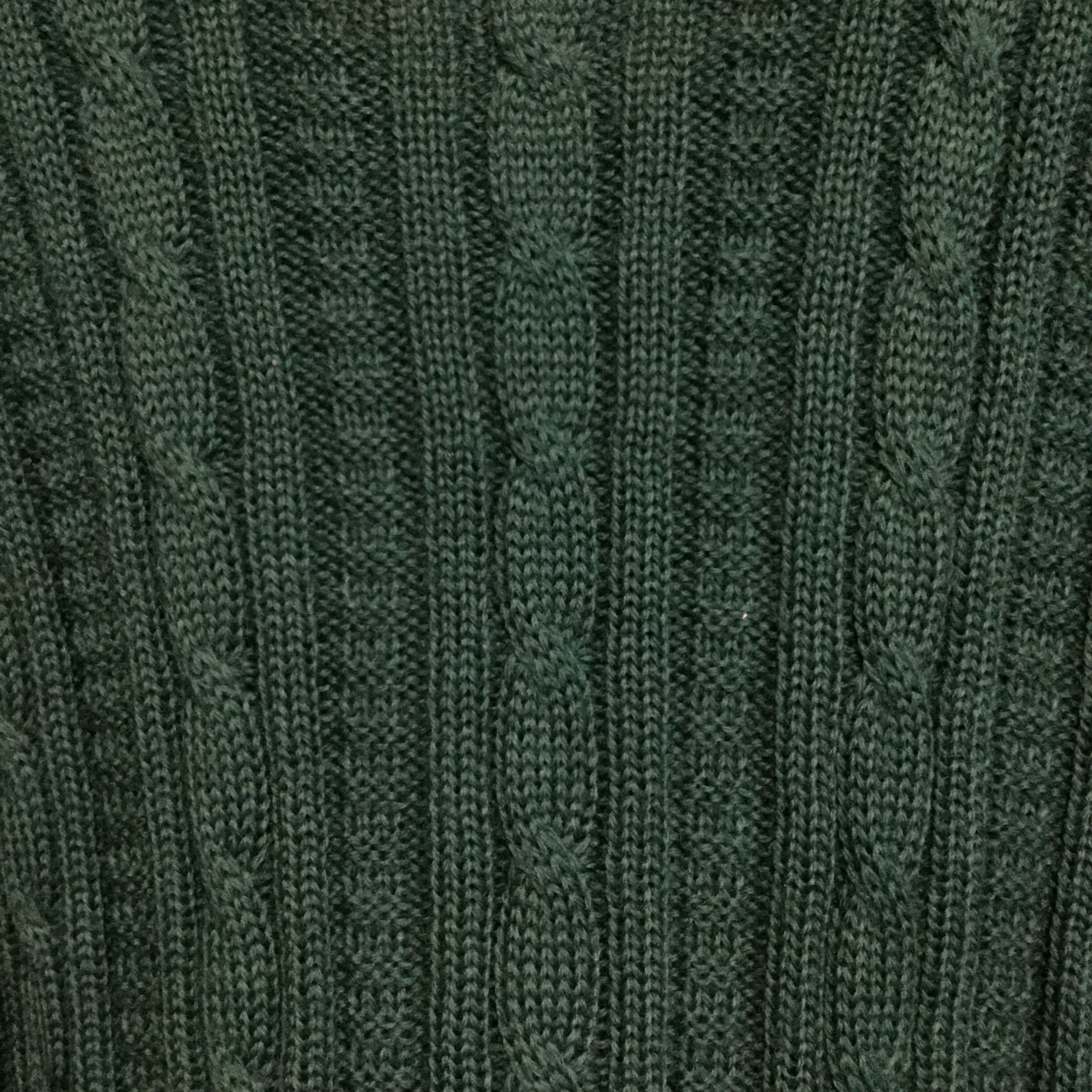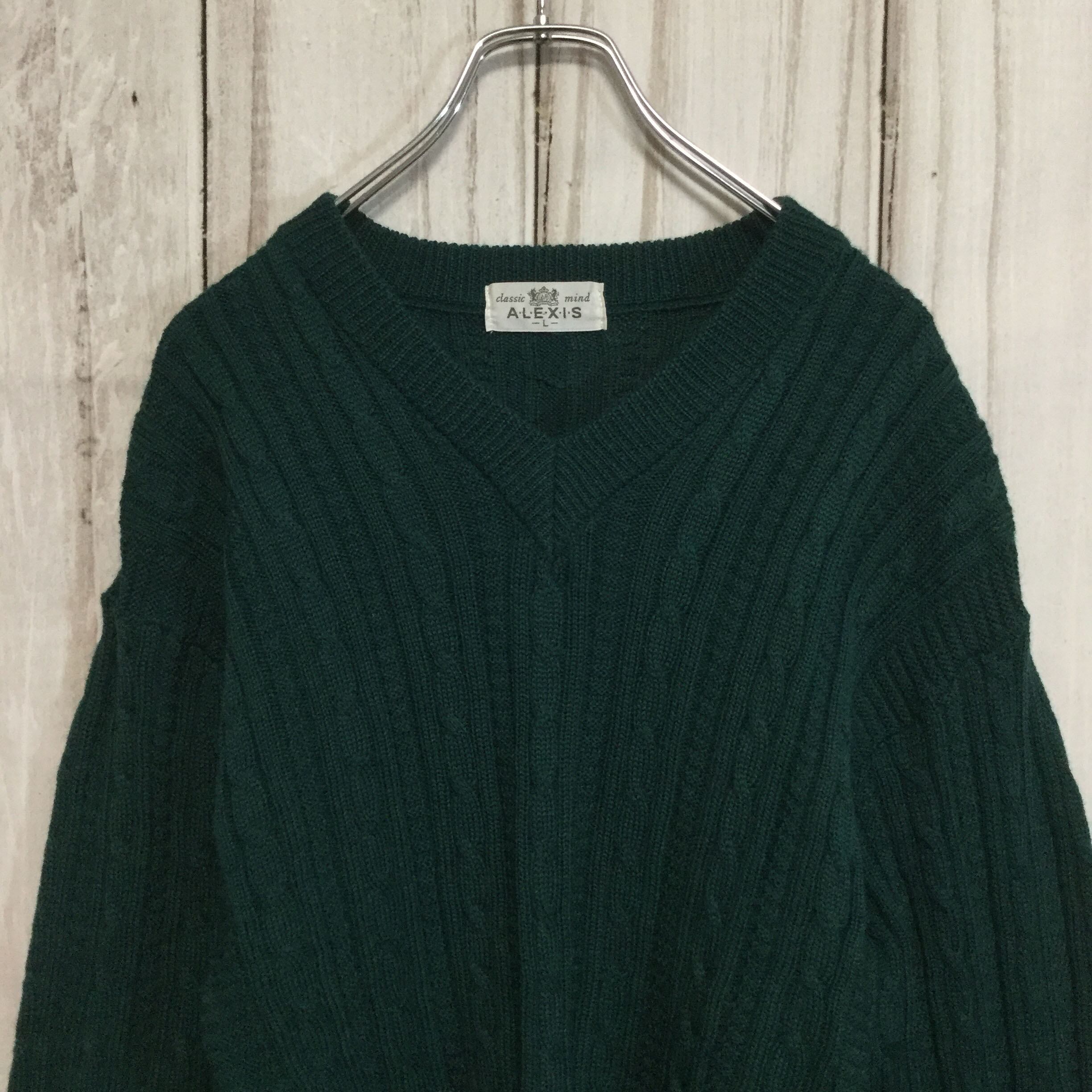 【Vネック ケーブル編み ウールニット】 美品 レトロ L 緑 古着 [231203-010]