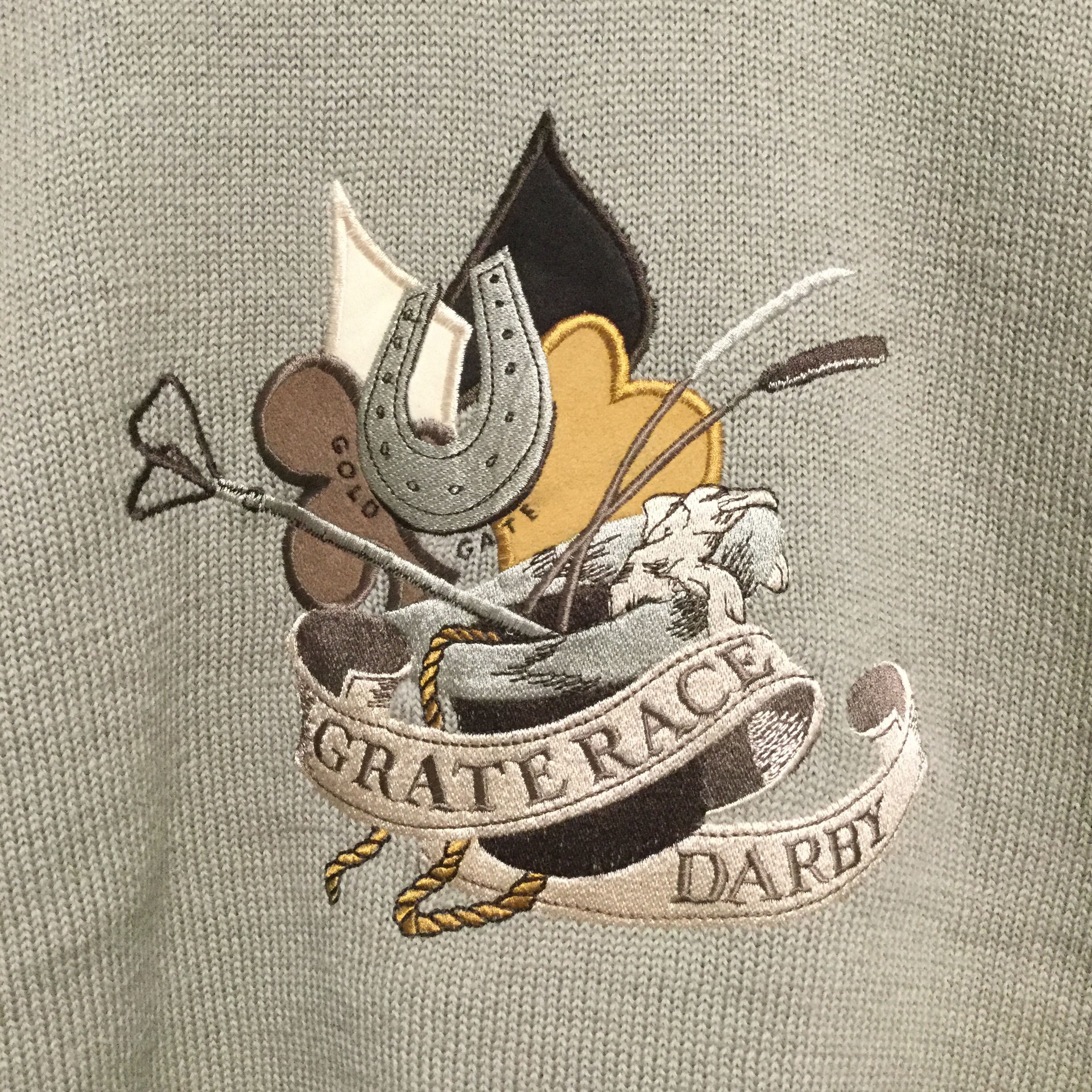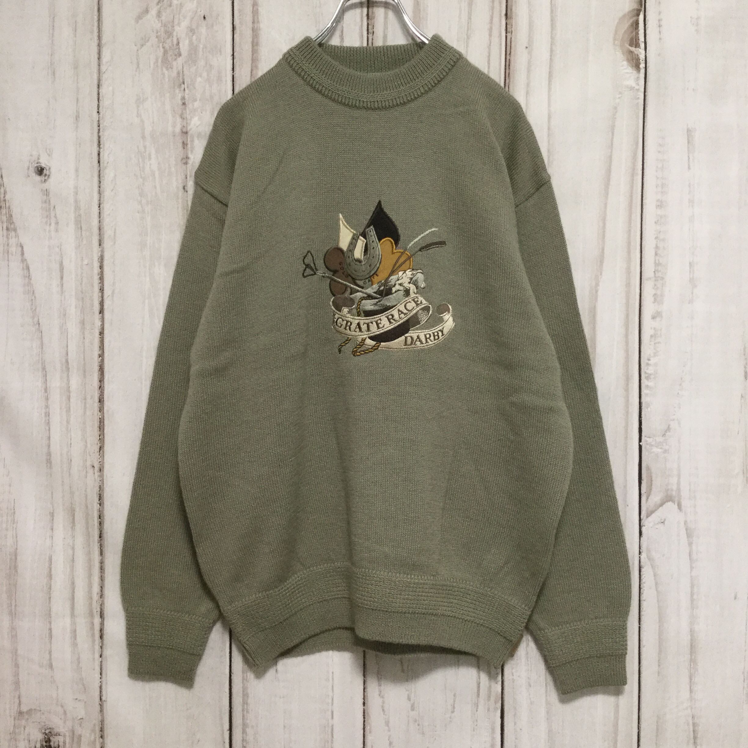 【刺繍入りニット】美品 デッドストック 毛100% セーター L ベージュ 古着 [240202-020]