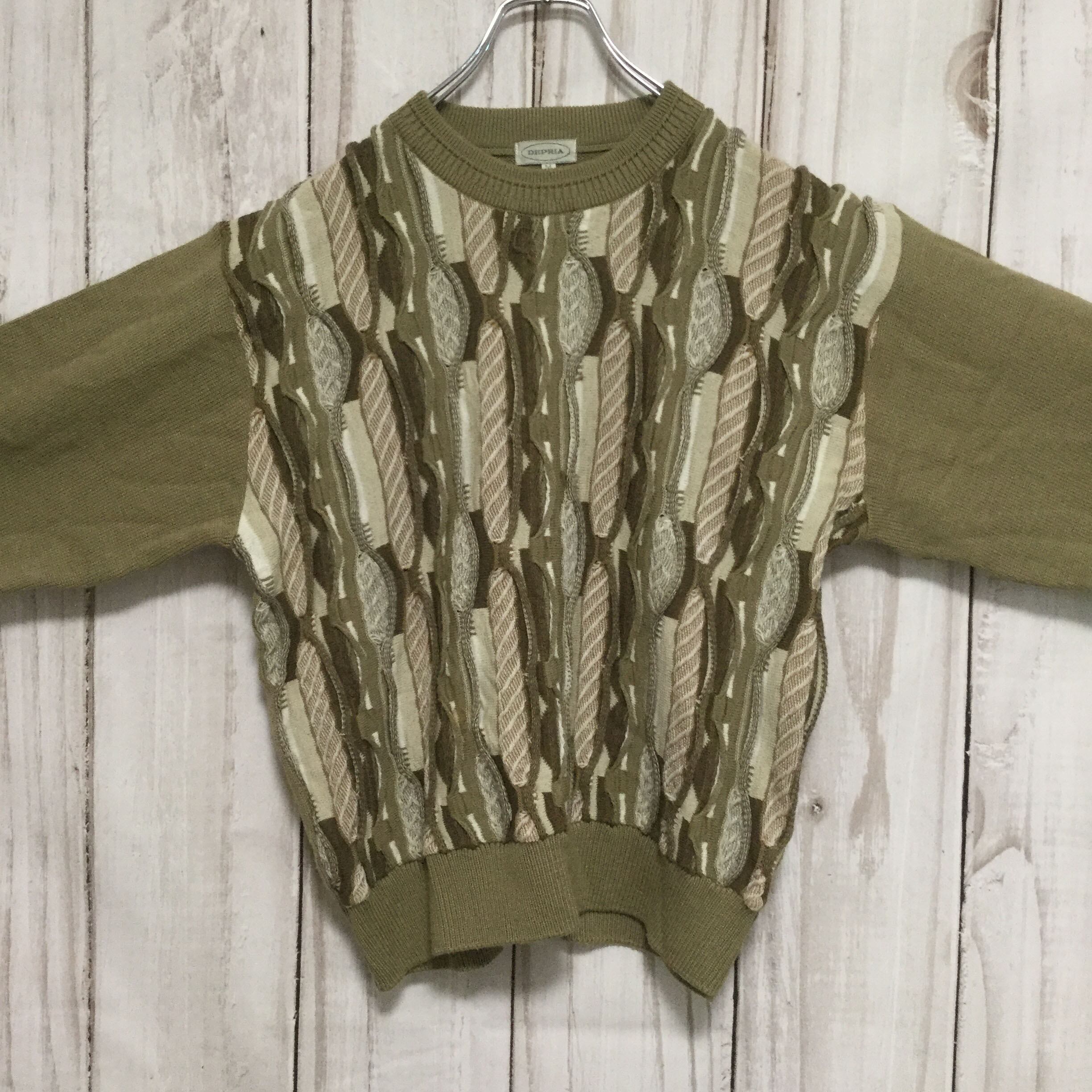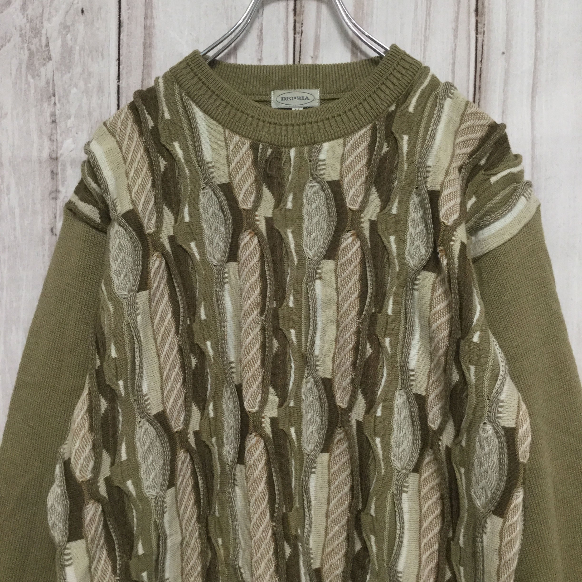 【3Dニット】セーター 日本製 M ベージュ系 古着 [240202-027]