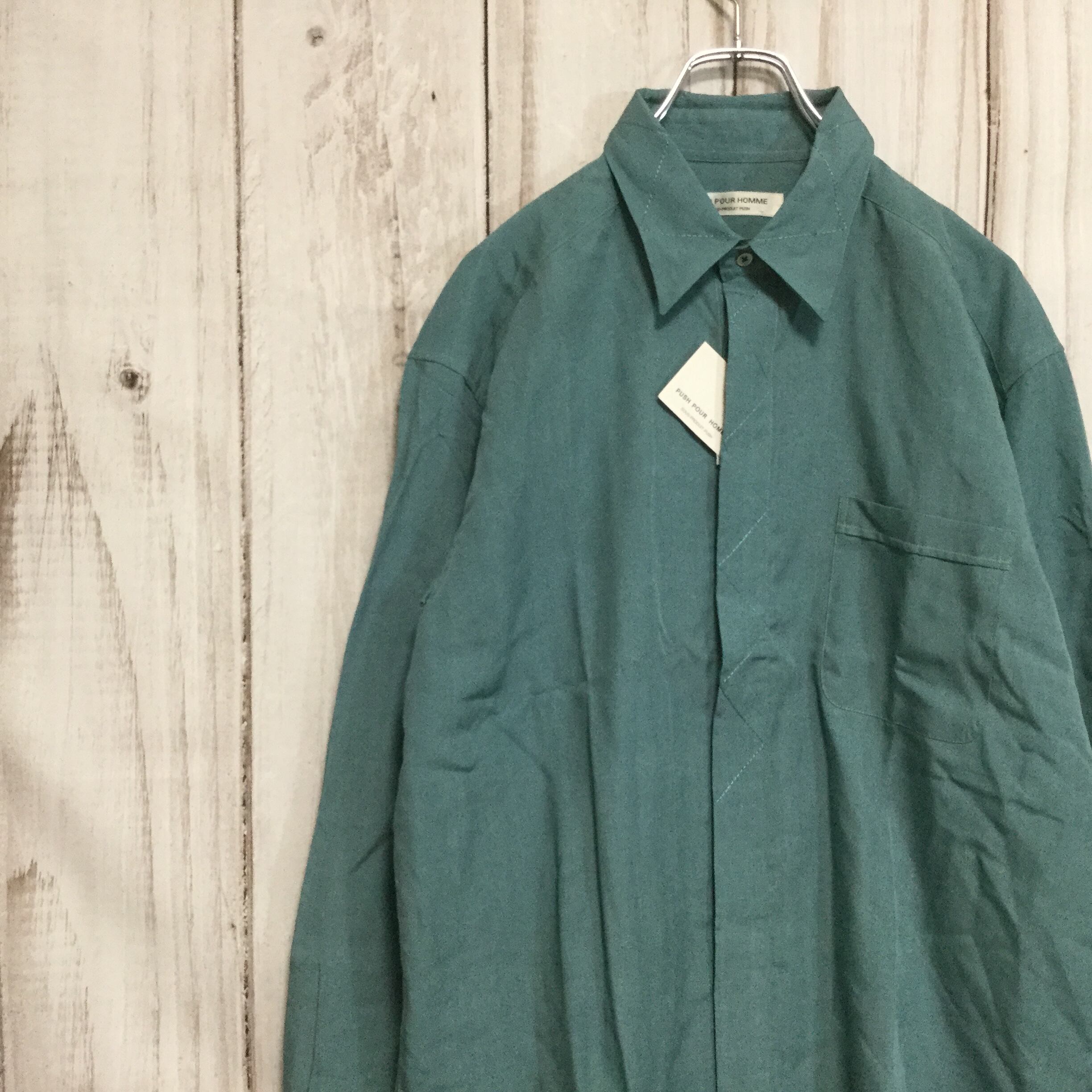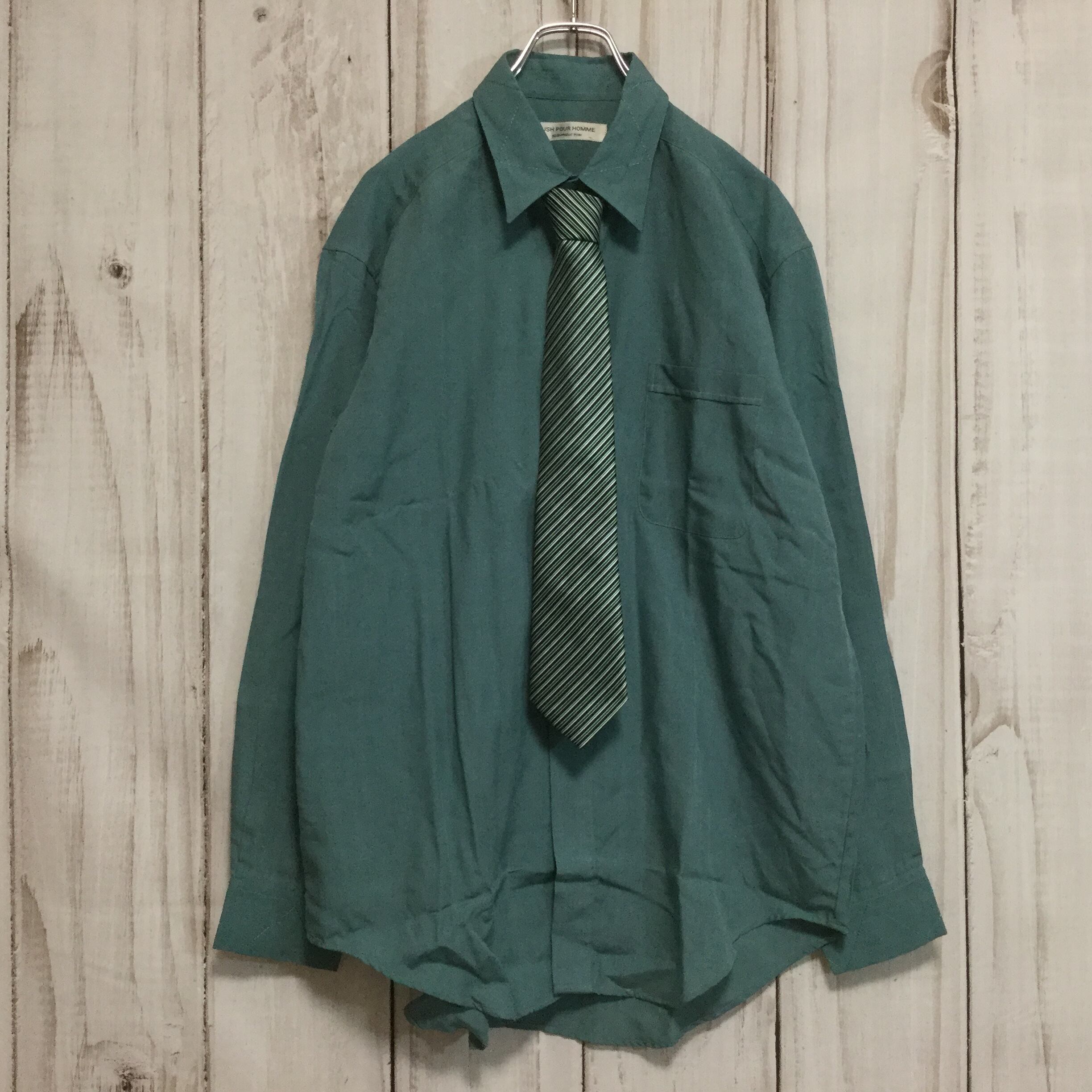 【同系色ネクタイ付 長袖シャツ】オーバーサイズ 未使用品 ネクタイシャツ L相当 緑 古着 [240301-026]