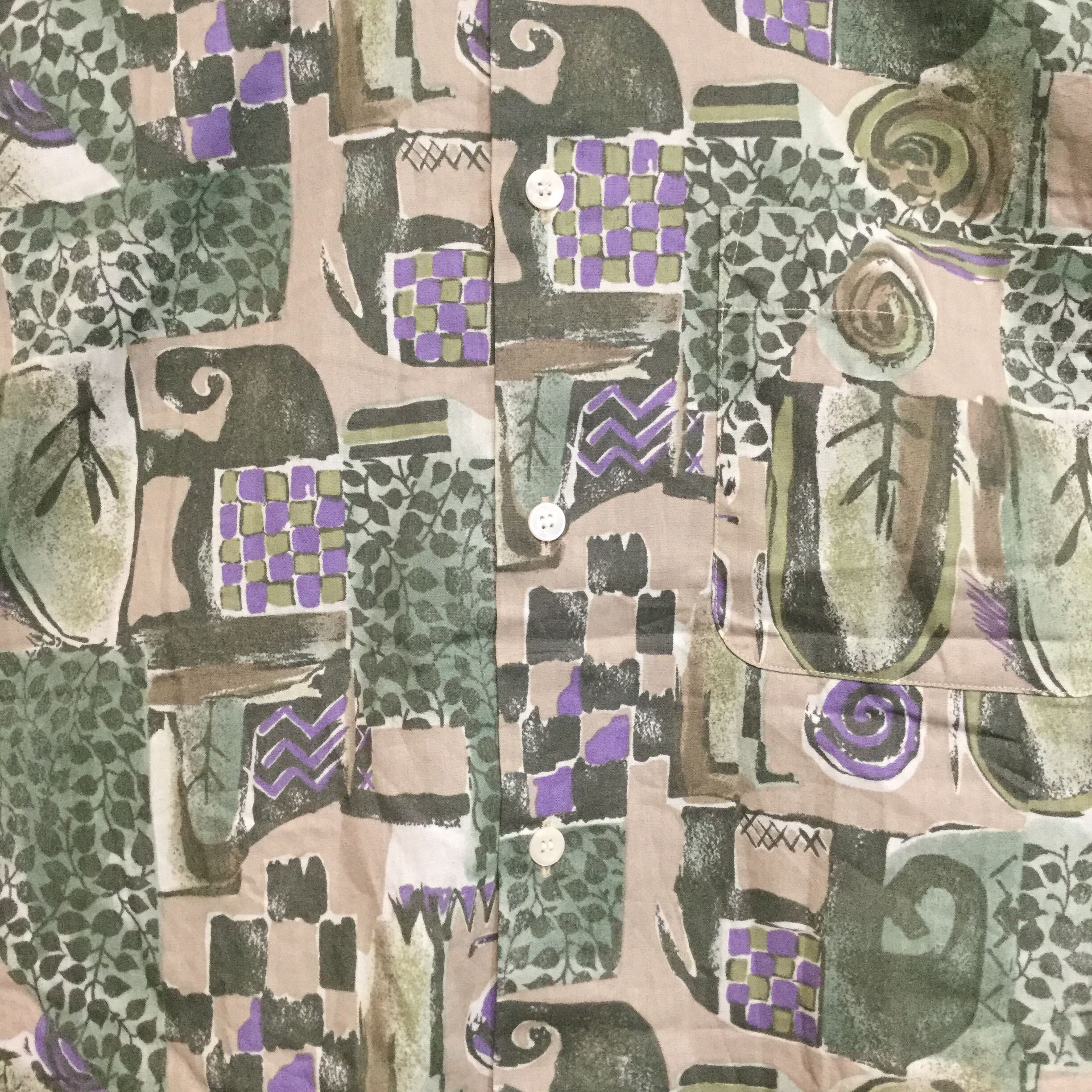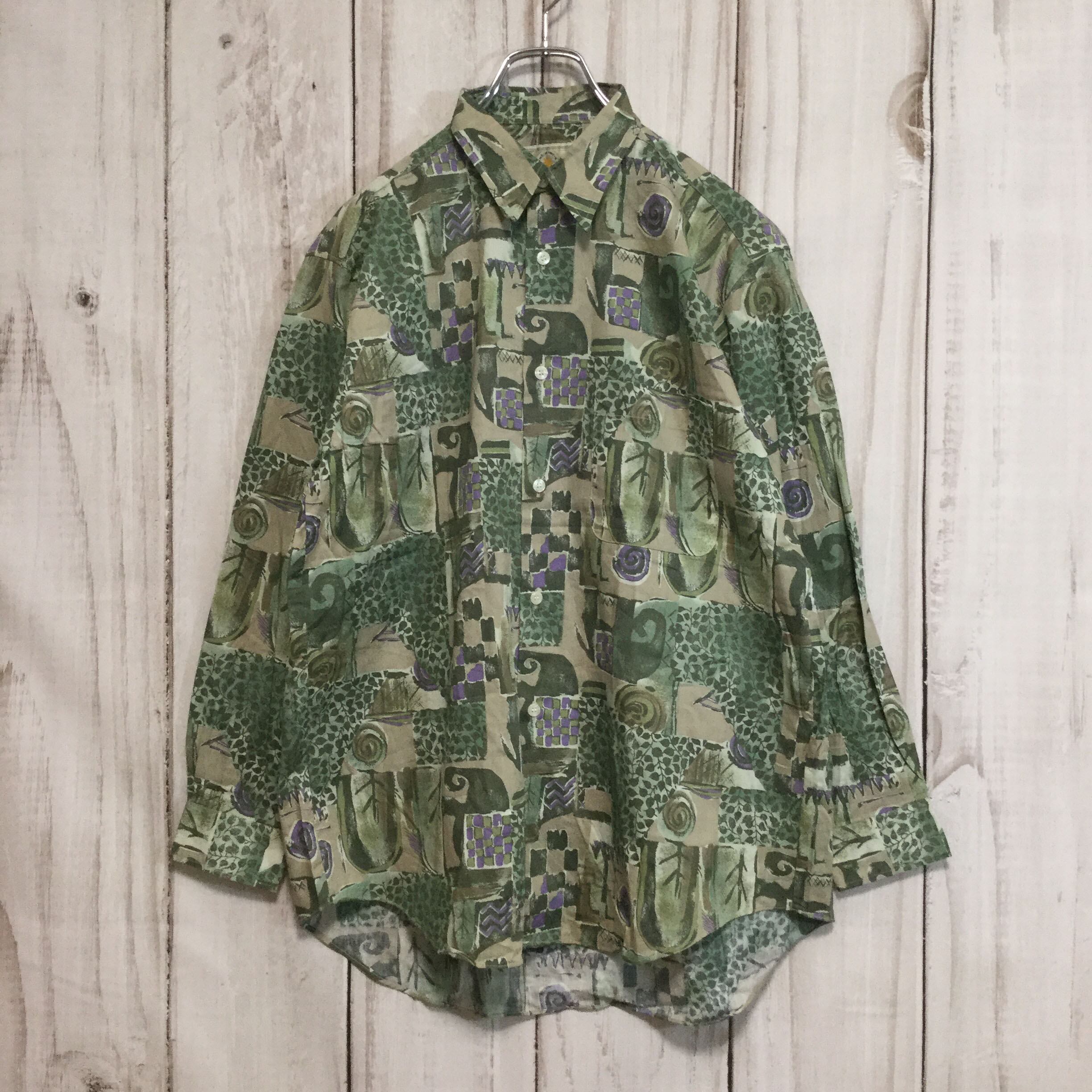 【総柄長袖シャツ】レトロ オーバーサイズ ヨーロピアン XL相当 古着 [240126-001]