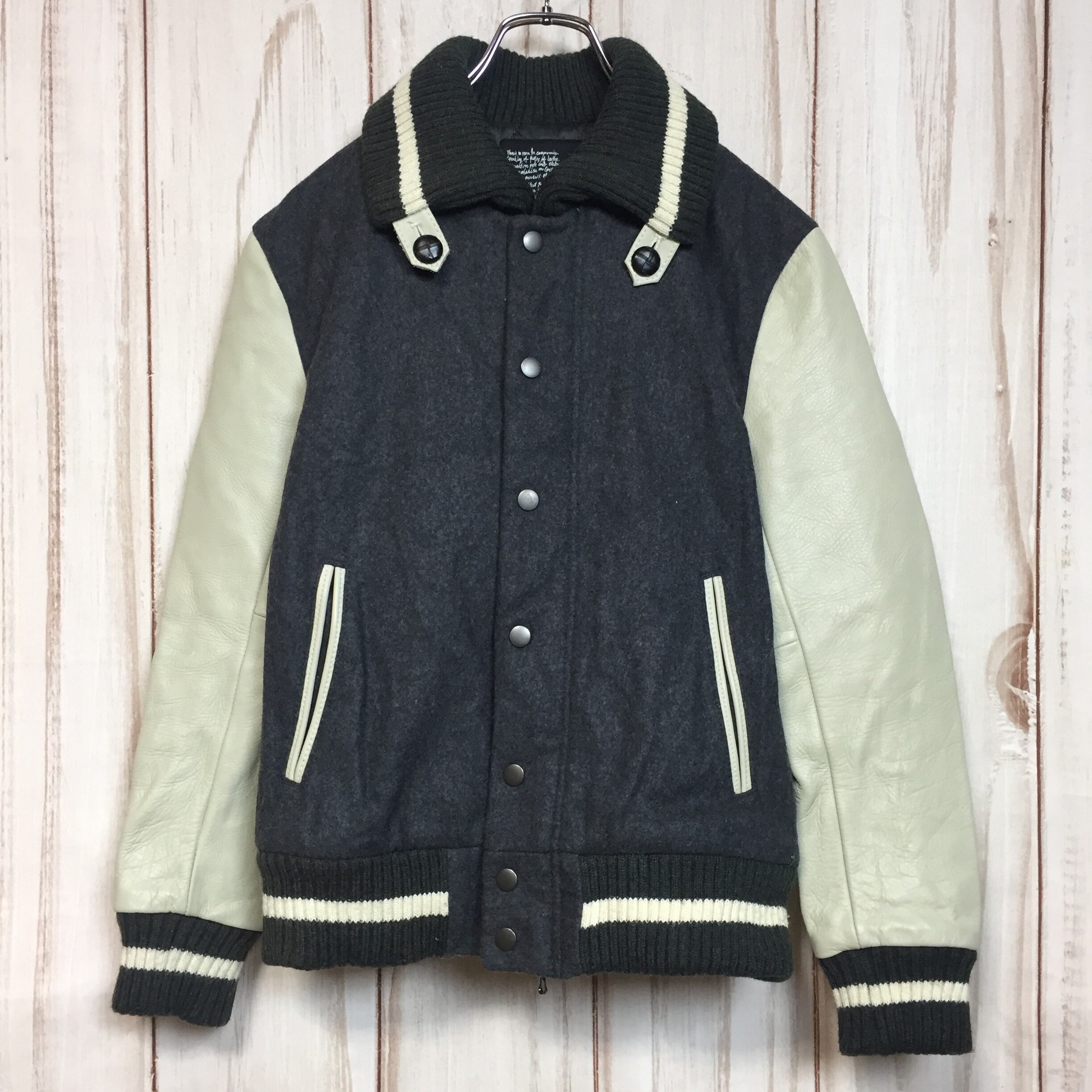 【スタジャン】 人気 定番 M相当 グレー/白 古着 [221213-001]