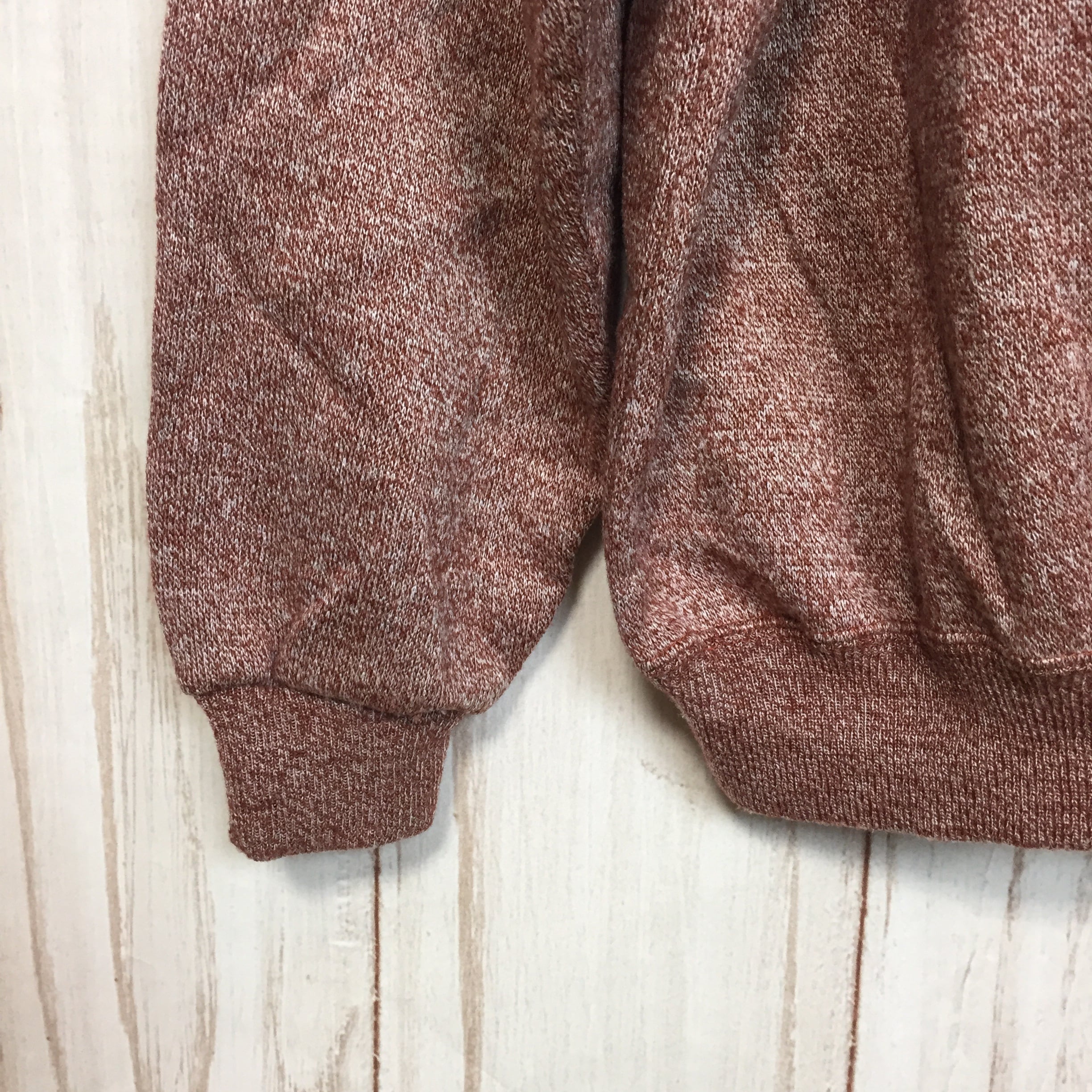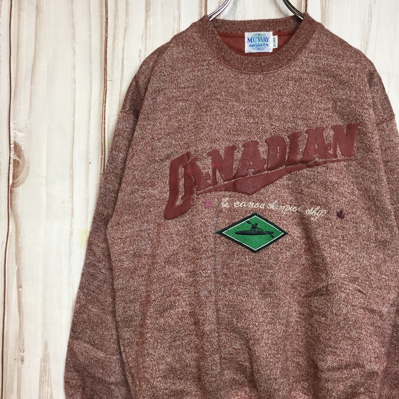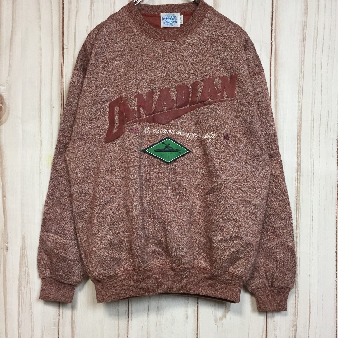 【刺繍デザイン スウェット】80-90年代シルエット 太アーム L 赤茶 トレーナー 古着 [221213-006]