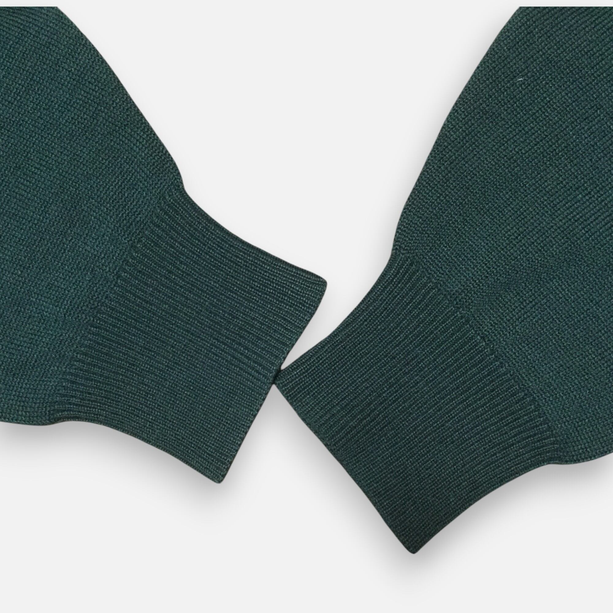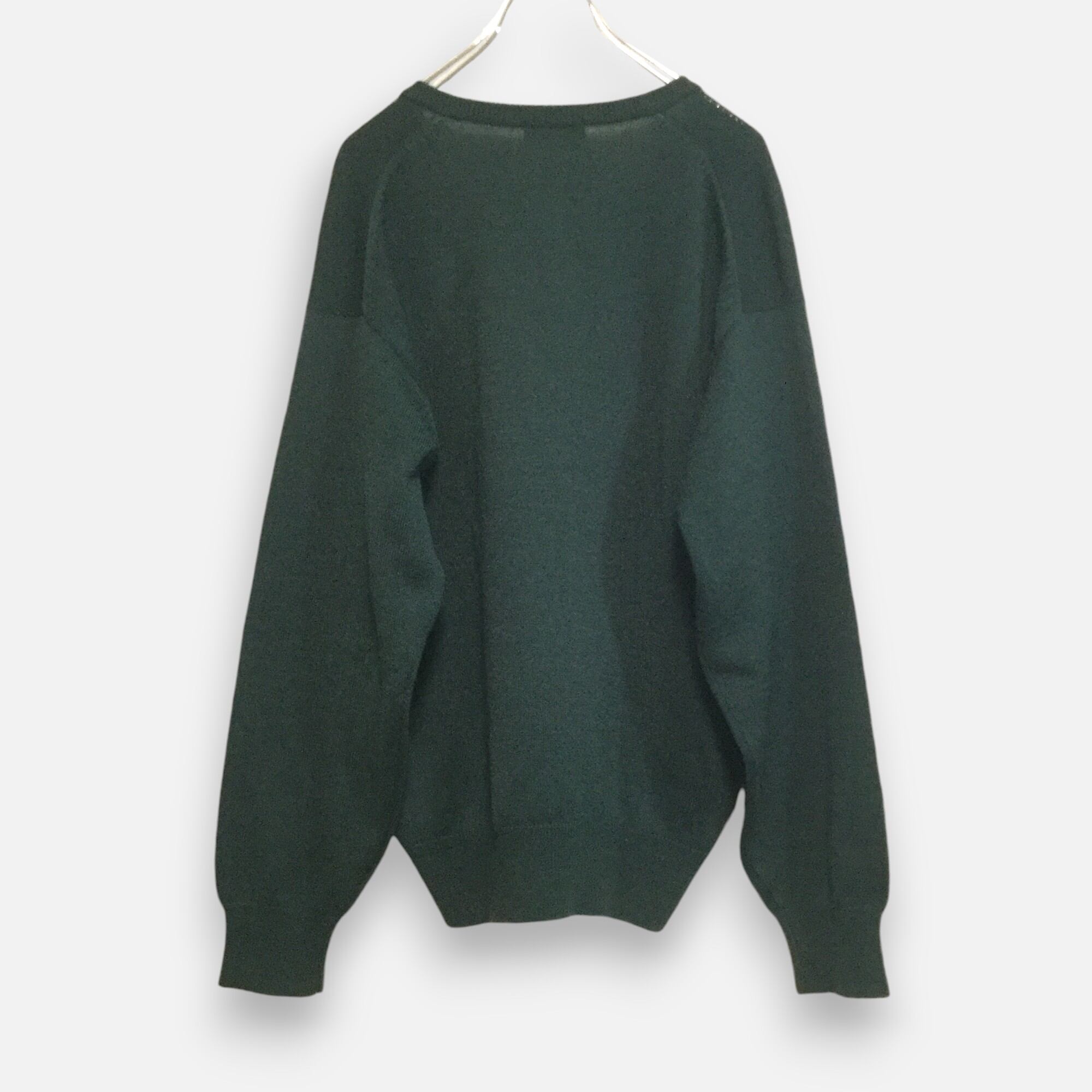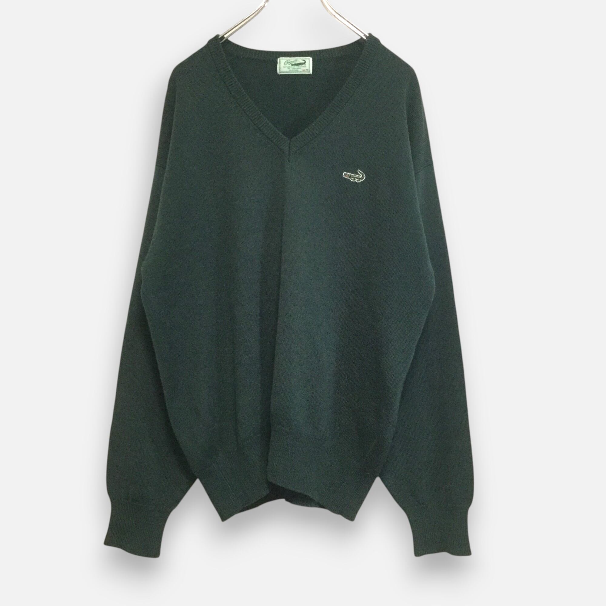 【クロコダイル 長袖Vネックニット】昭和レトロ ロゴ刺繍 定番 セーター XL 緑 Crocodile 古着 [241215-016]