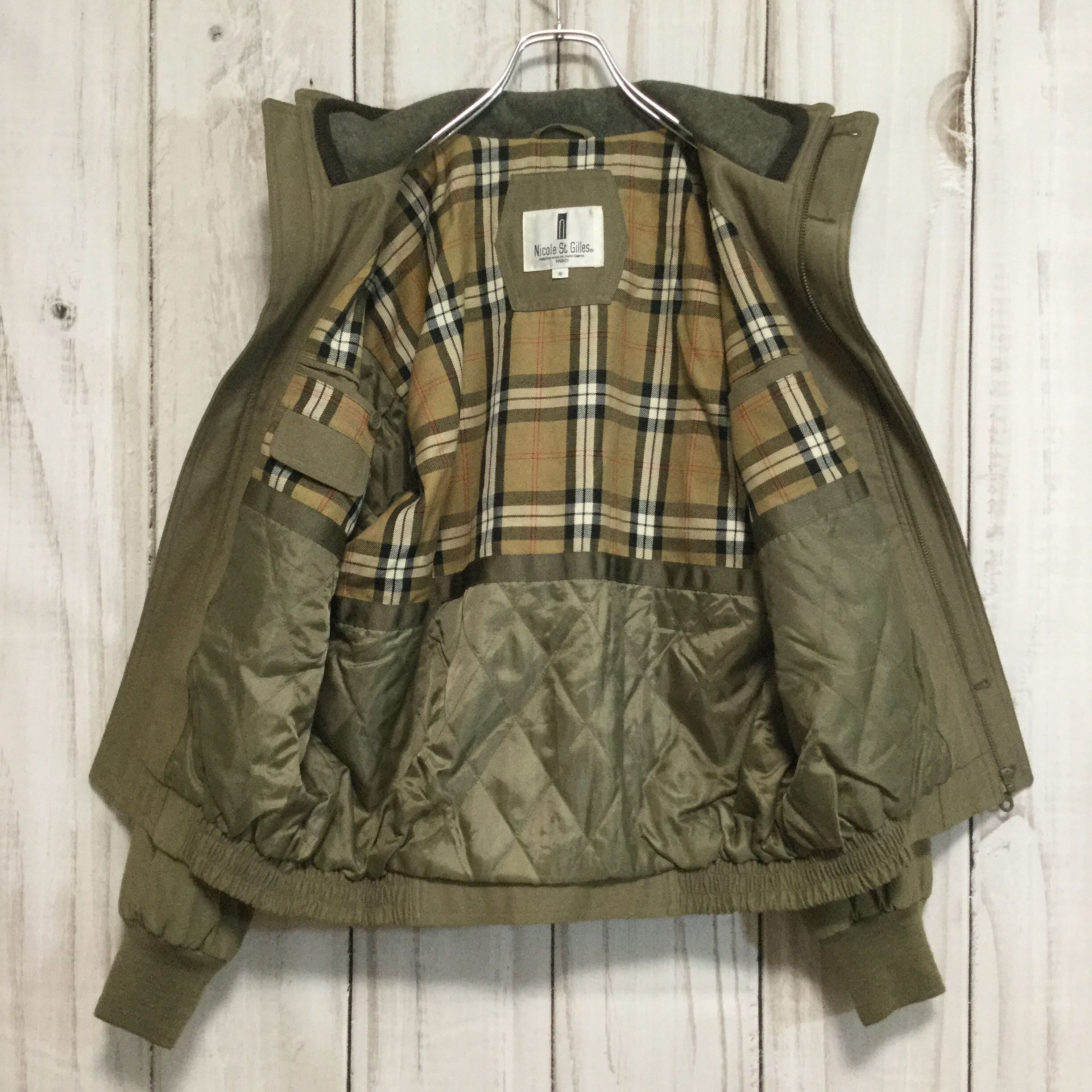 【ニコルサンジル キルティングブルゾン】 美品 裏地チェック S カーキ 古着 [231128-031]