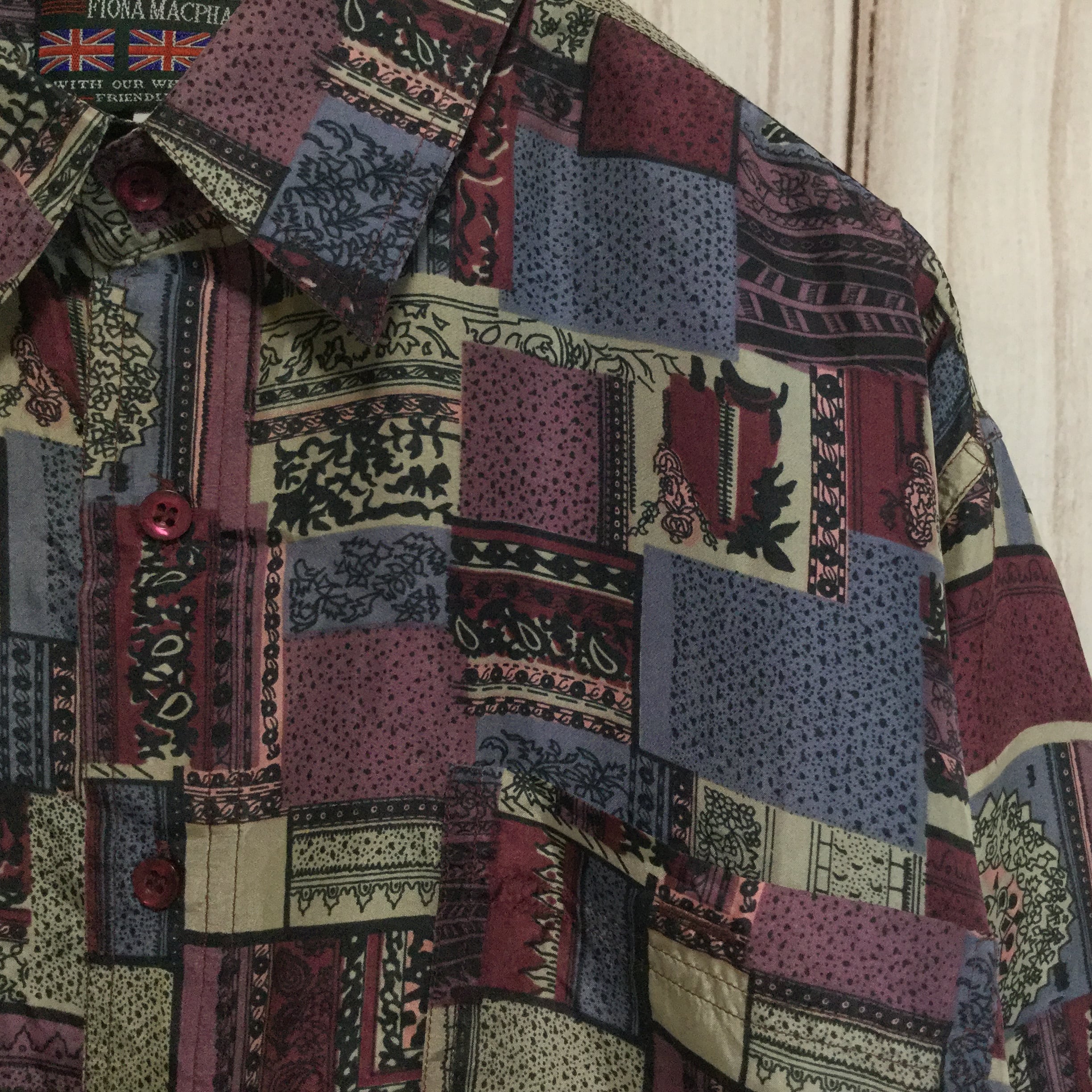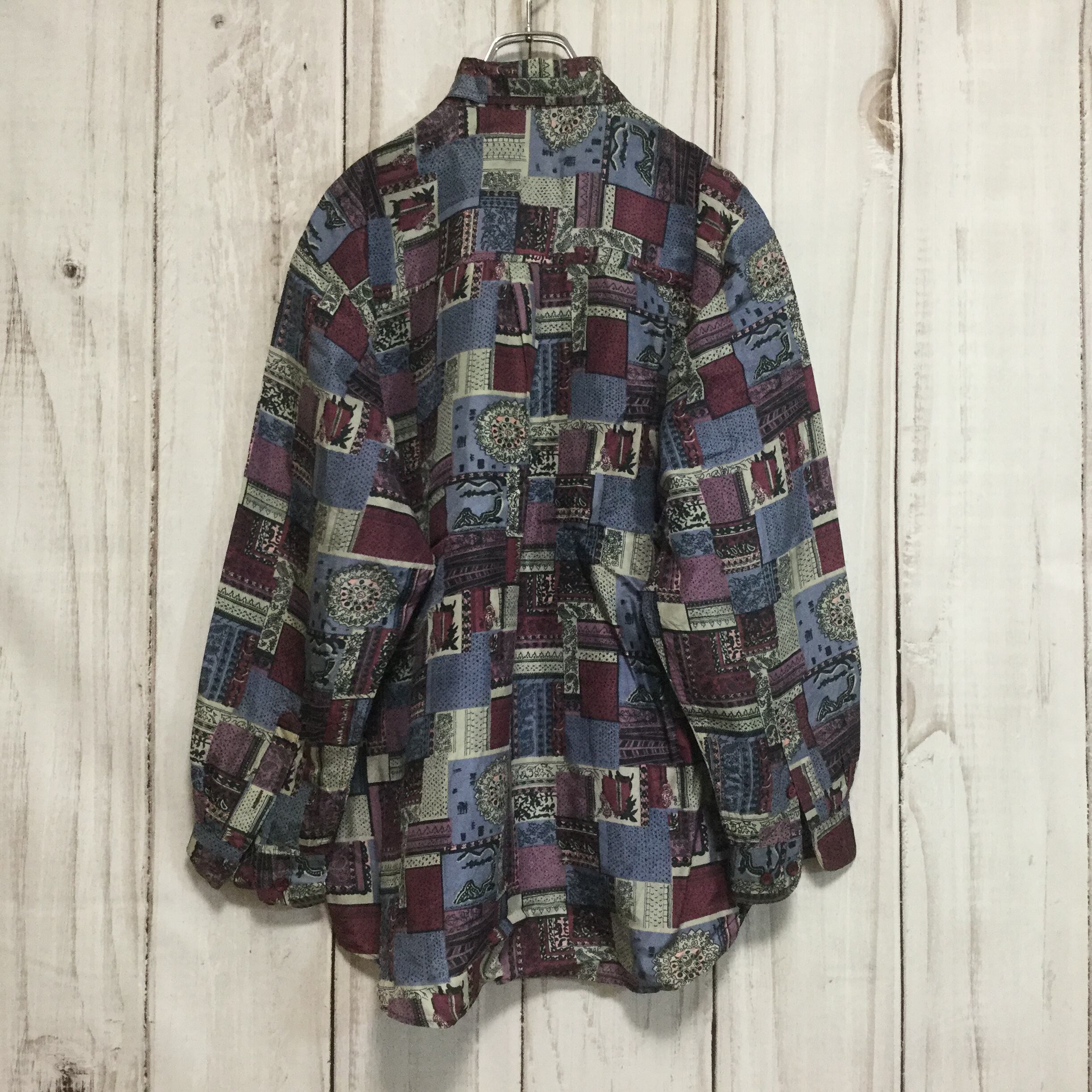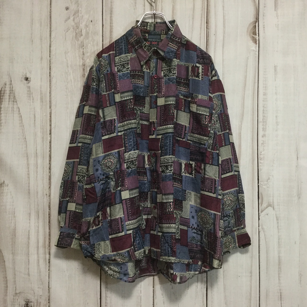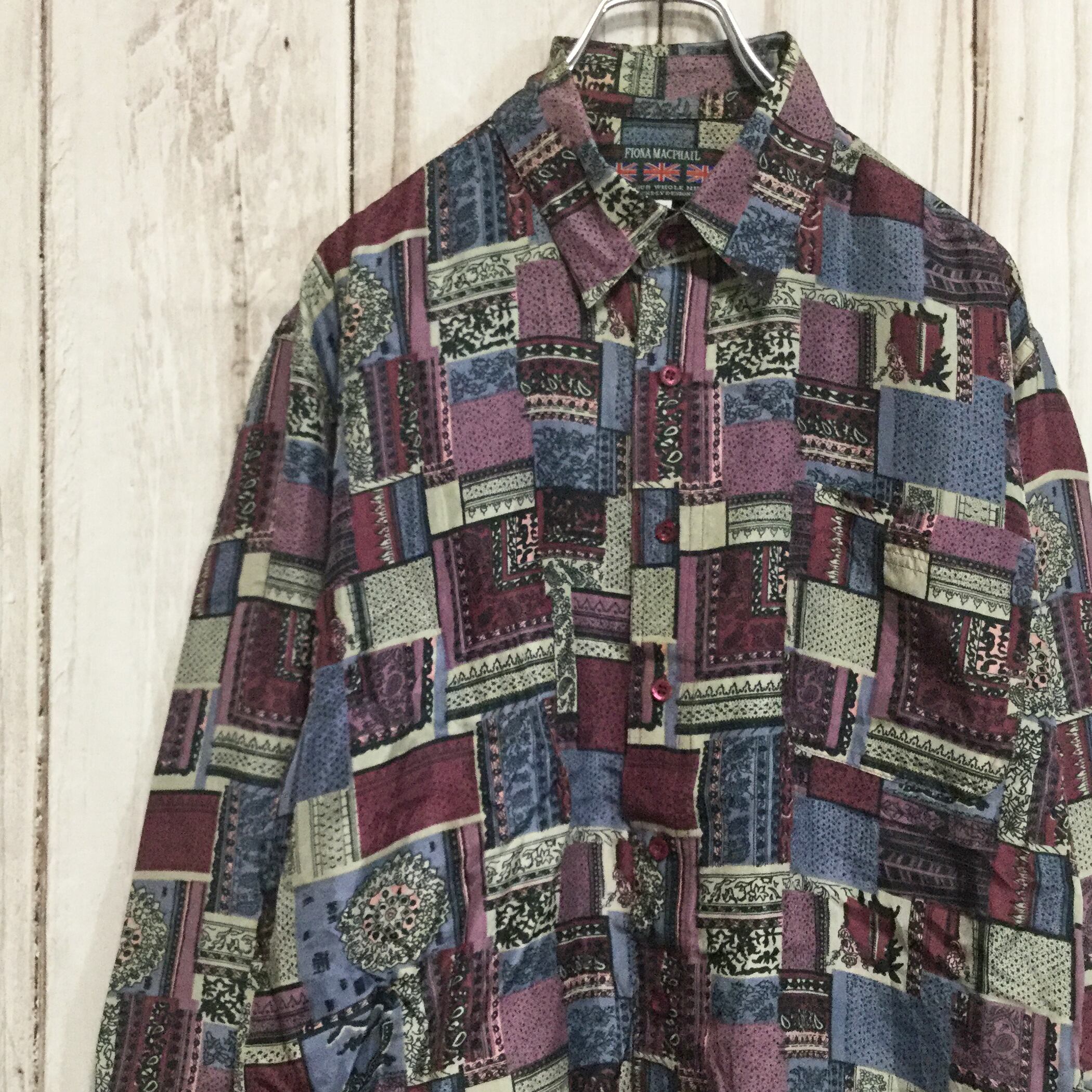 【シルク100% 総柄 長袖シャツ】デザイナーズブランド フィオナマックファイル L 古着 FIONA MACPHAIL [240301-017]