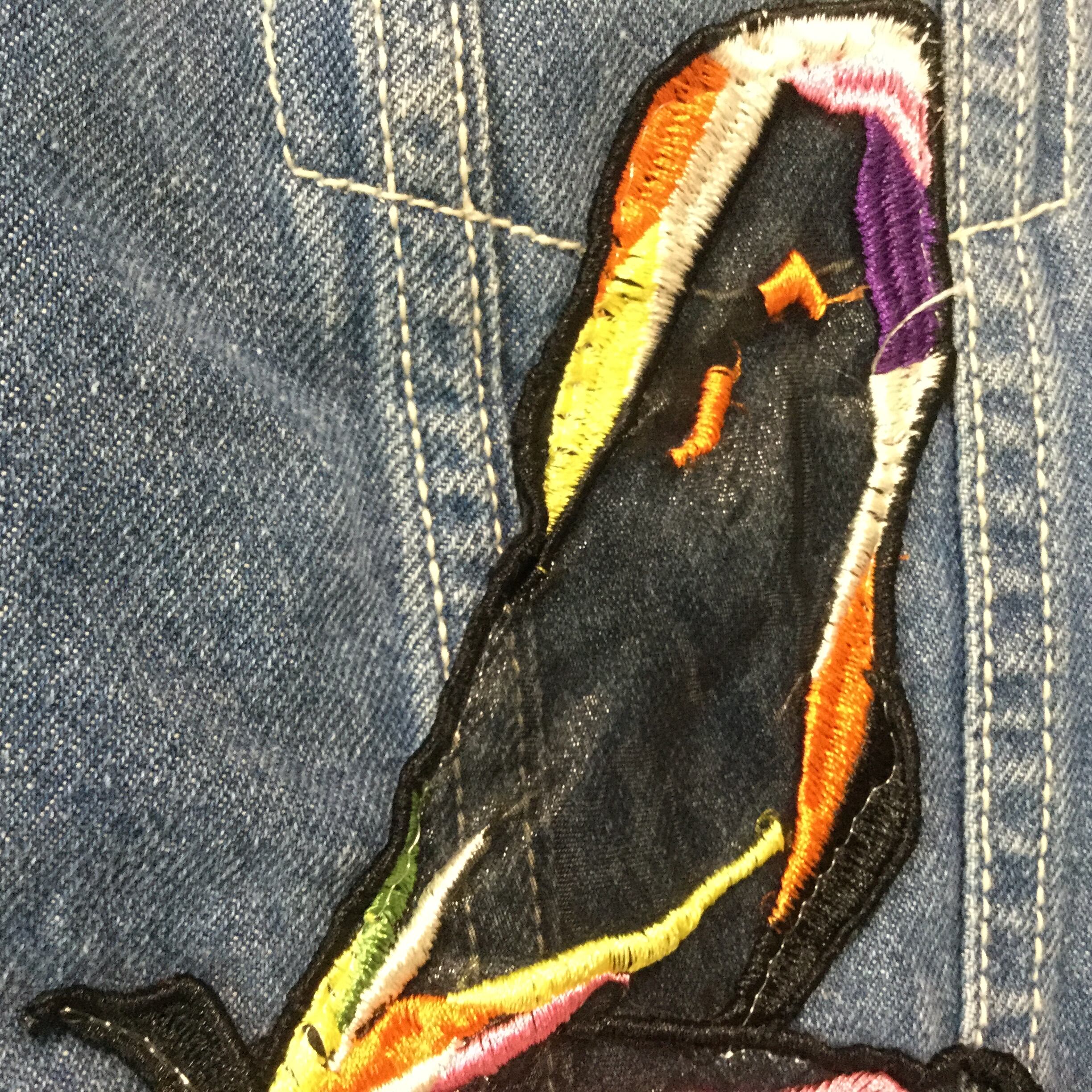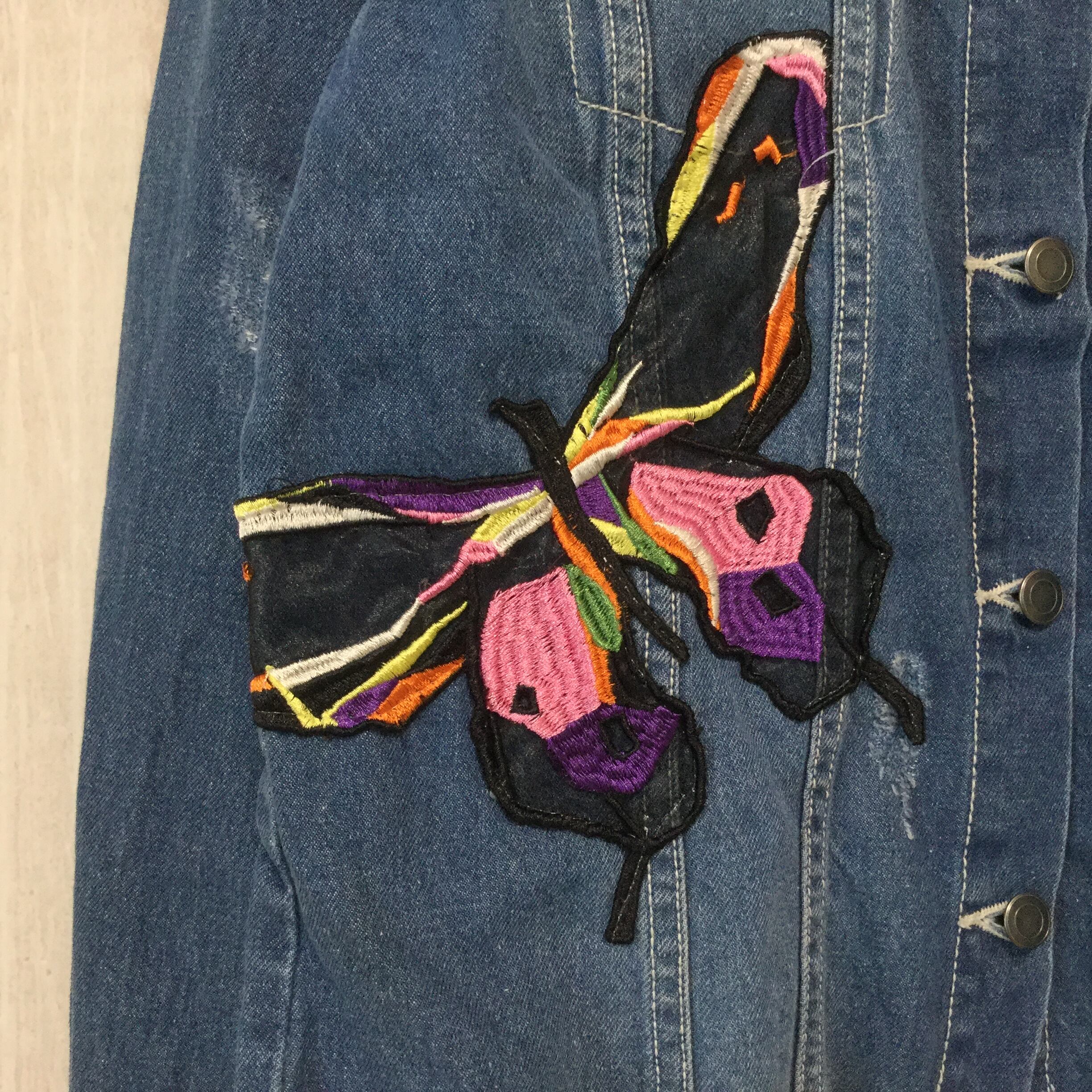 蝶の刺繍装飾が施された華やかなデニムジャケットです。