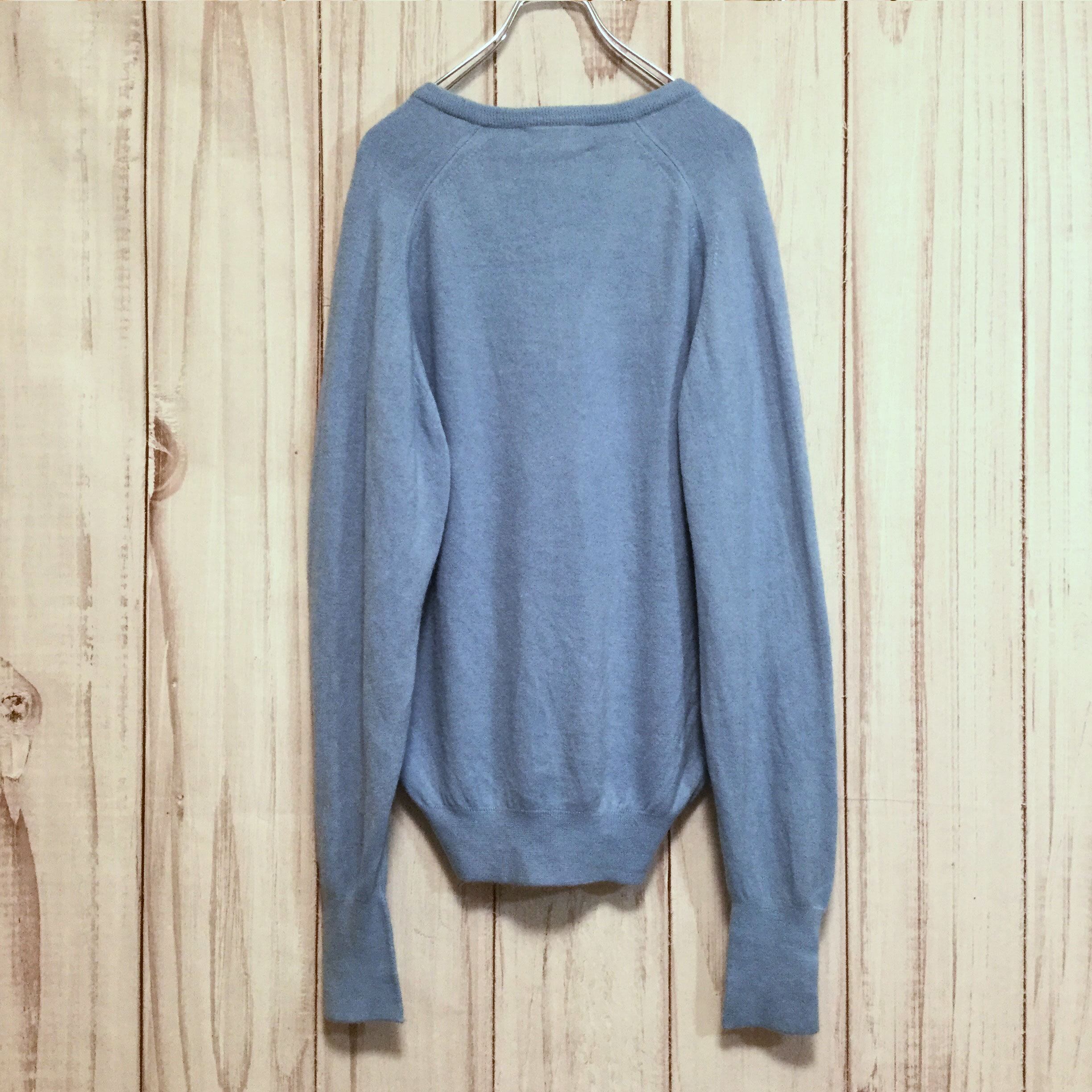 【ニット】 USA製 ヴィンテージ アクリルニット 刺繍 L 水色 古着 [230114-019]