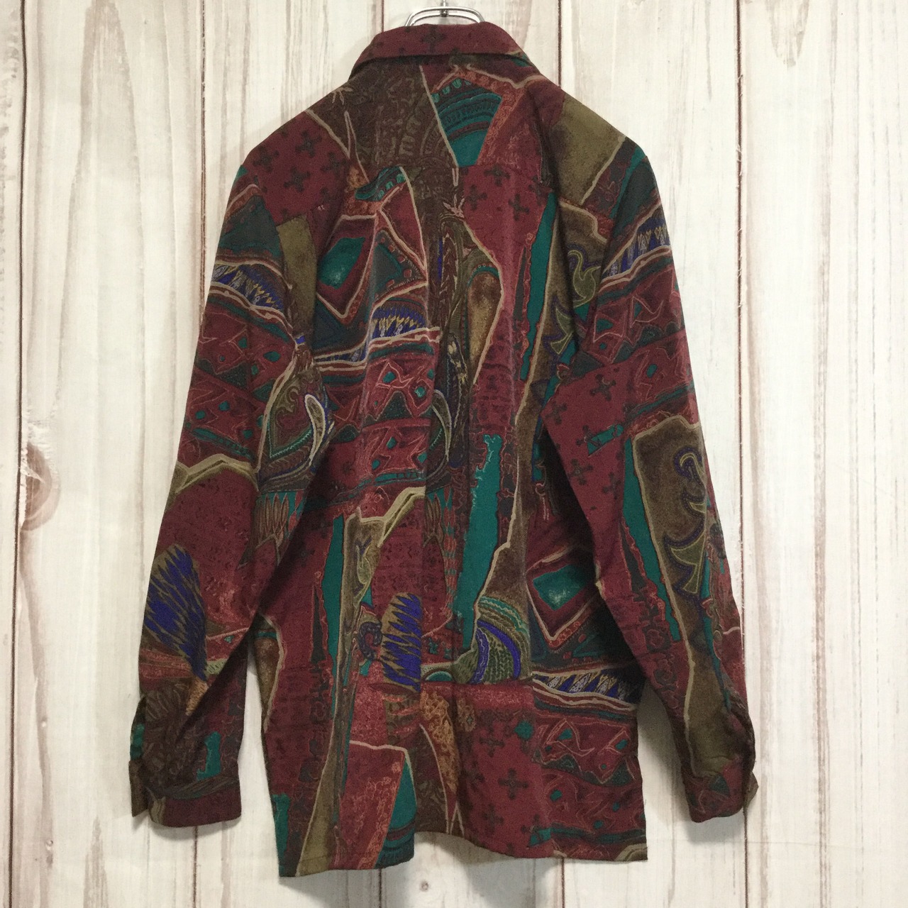 【長袖シャツ】 昭和レトロ ヴィンテージ ペイズリー ダークカラー ヨーロピアン L相当 エンジ 古着 [231022-003]