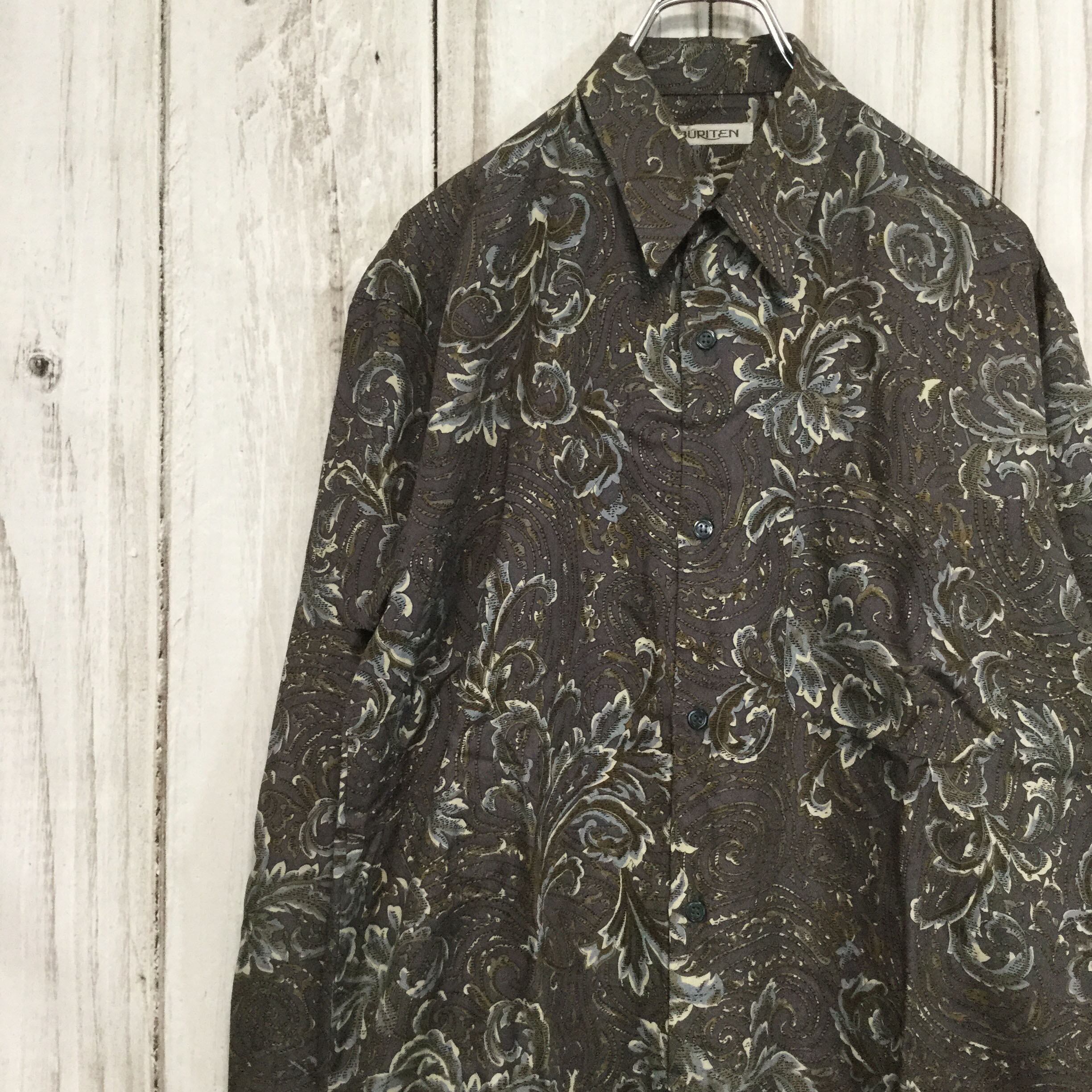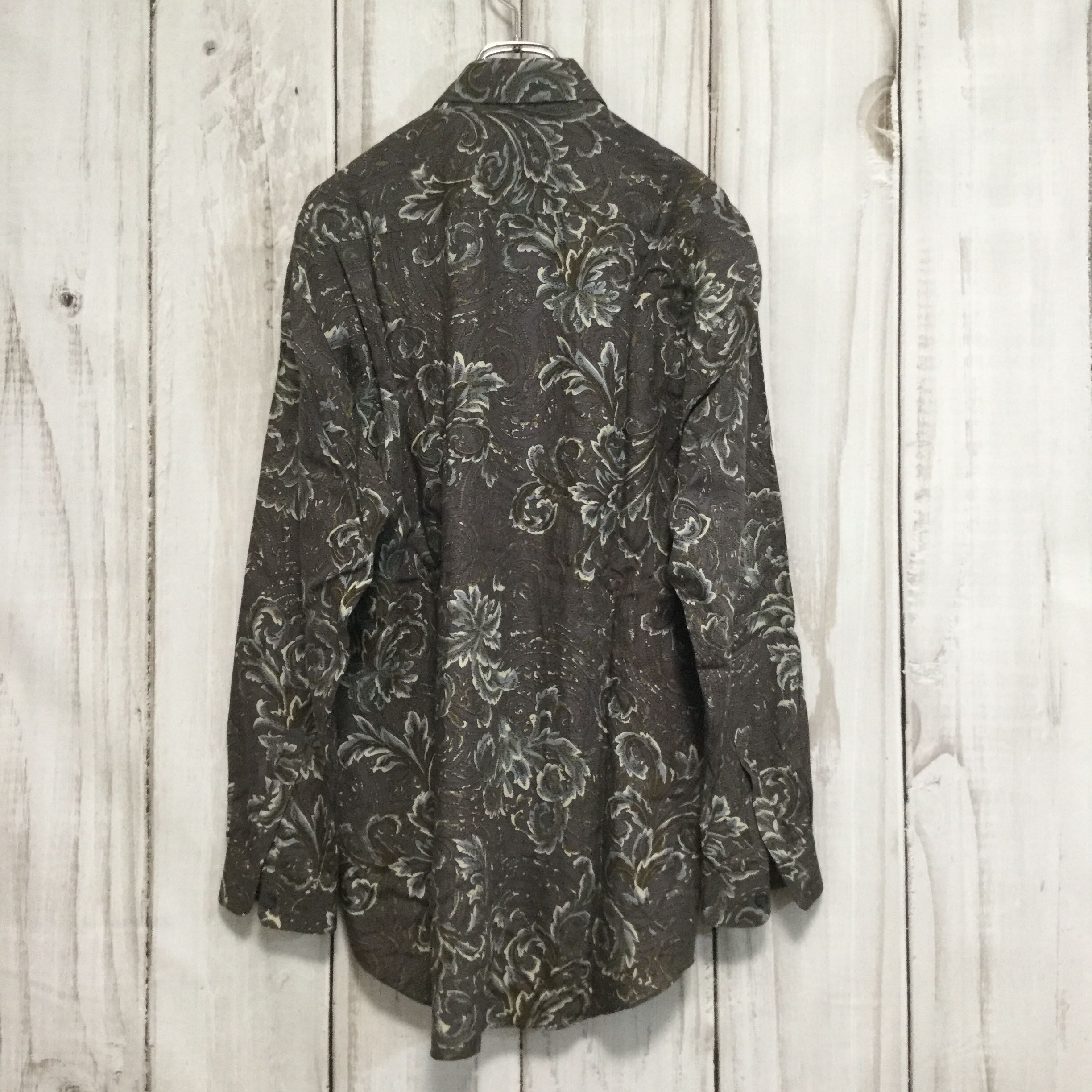 【総柄 長袖シャツ】ボタニカル ダークカラー M 茶 古着 [231128-010]