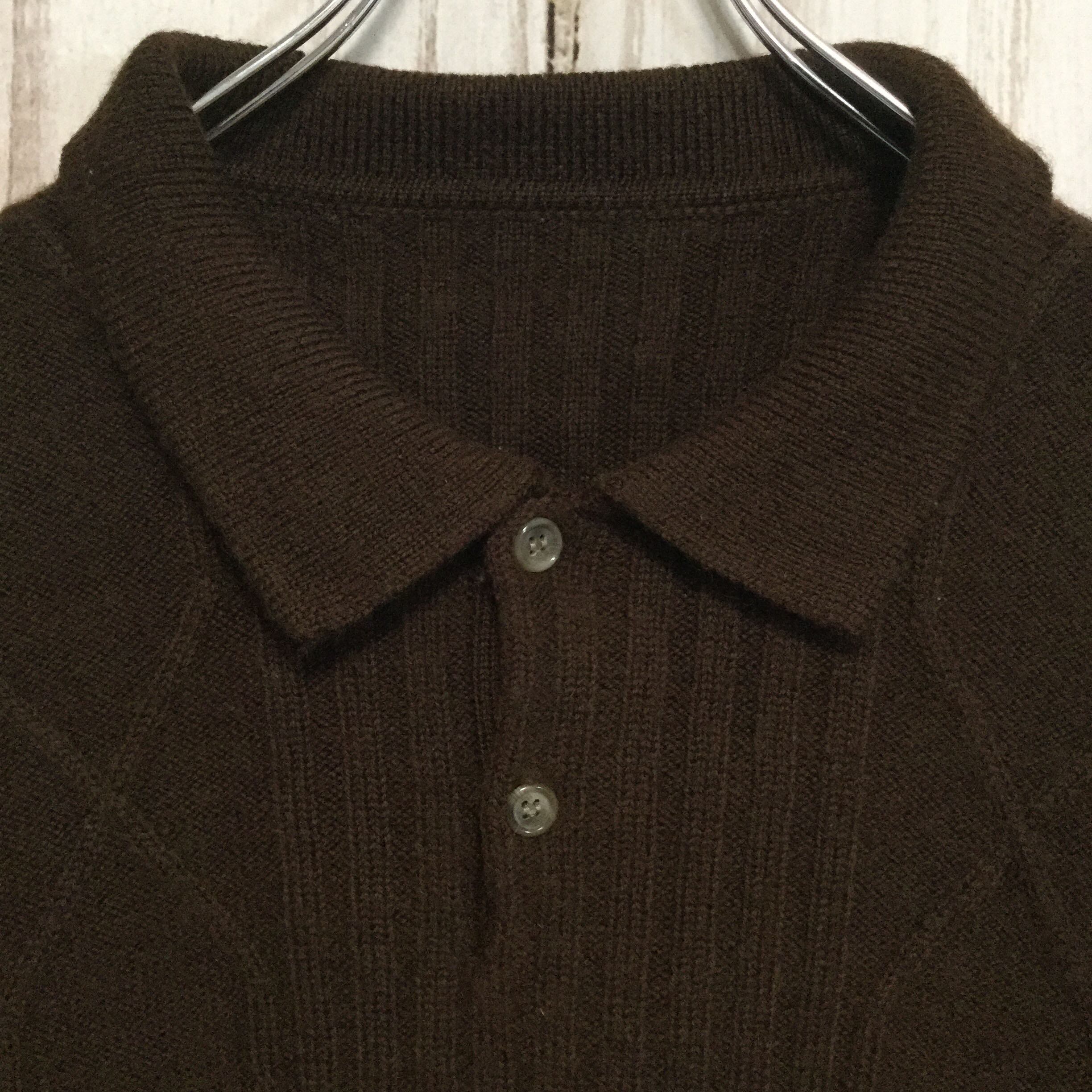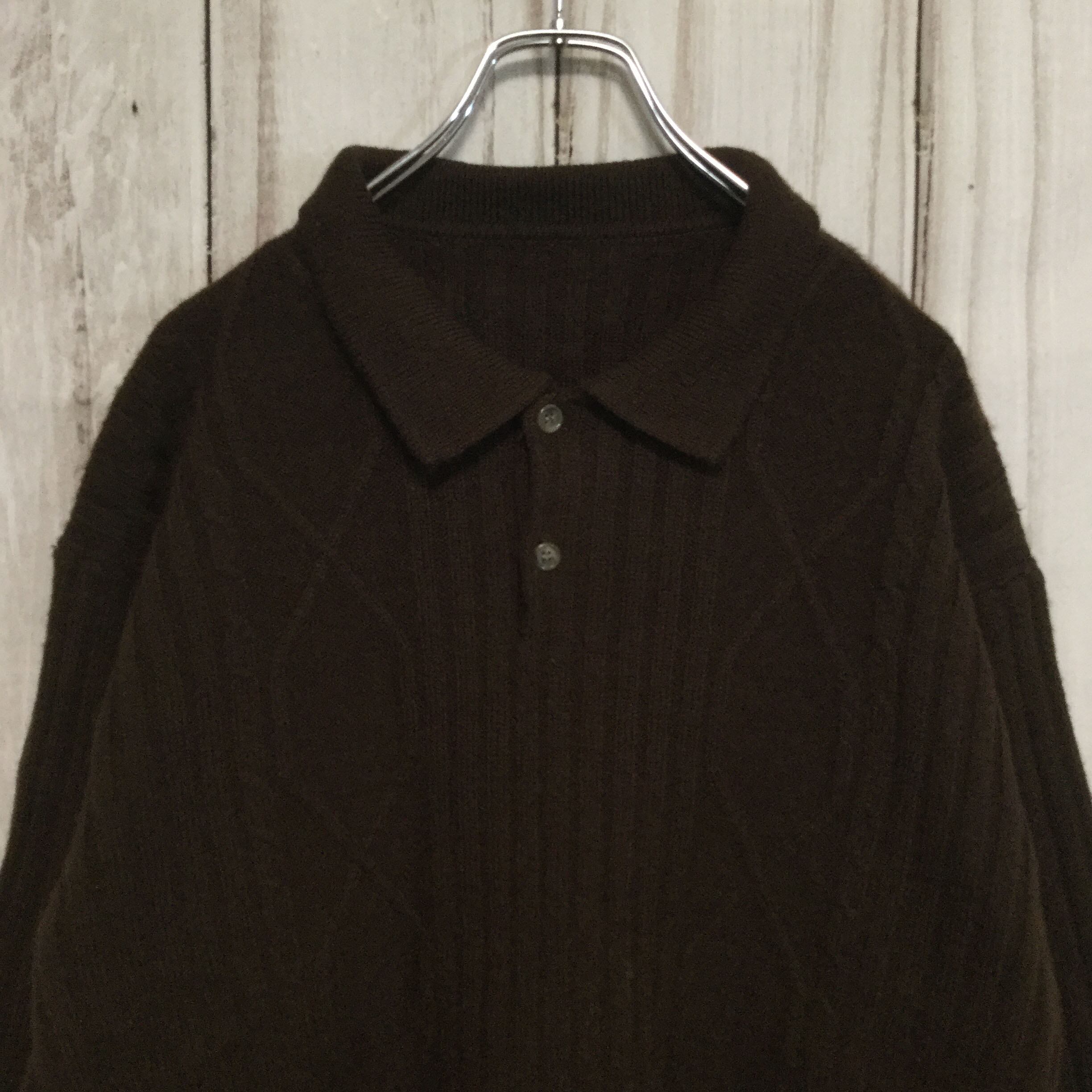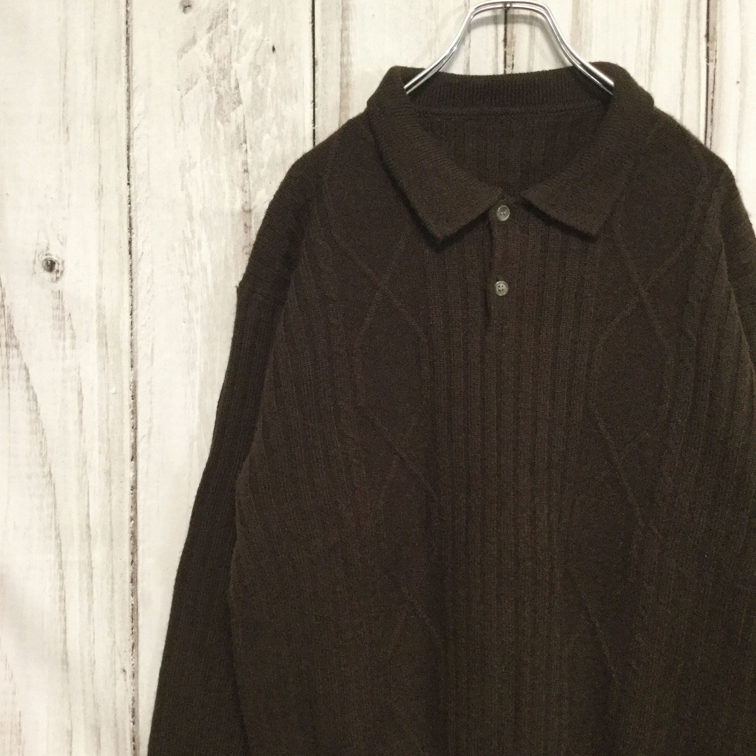 【昭和レトロ 襟付きニット】3D ビッグサイズ セーター L相当 茶 古着 [231203-014]