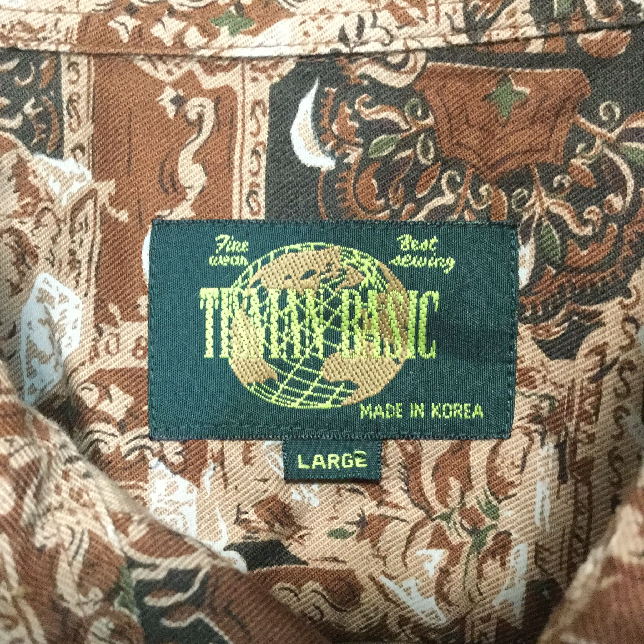 【総柄長袖シャツ】レトロ ダークカラー オーバーサイズ L 古着 [240126-003]