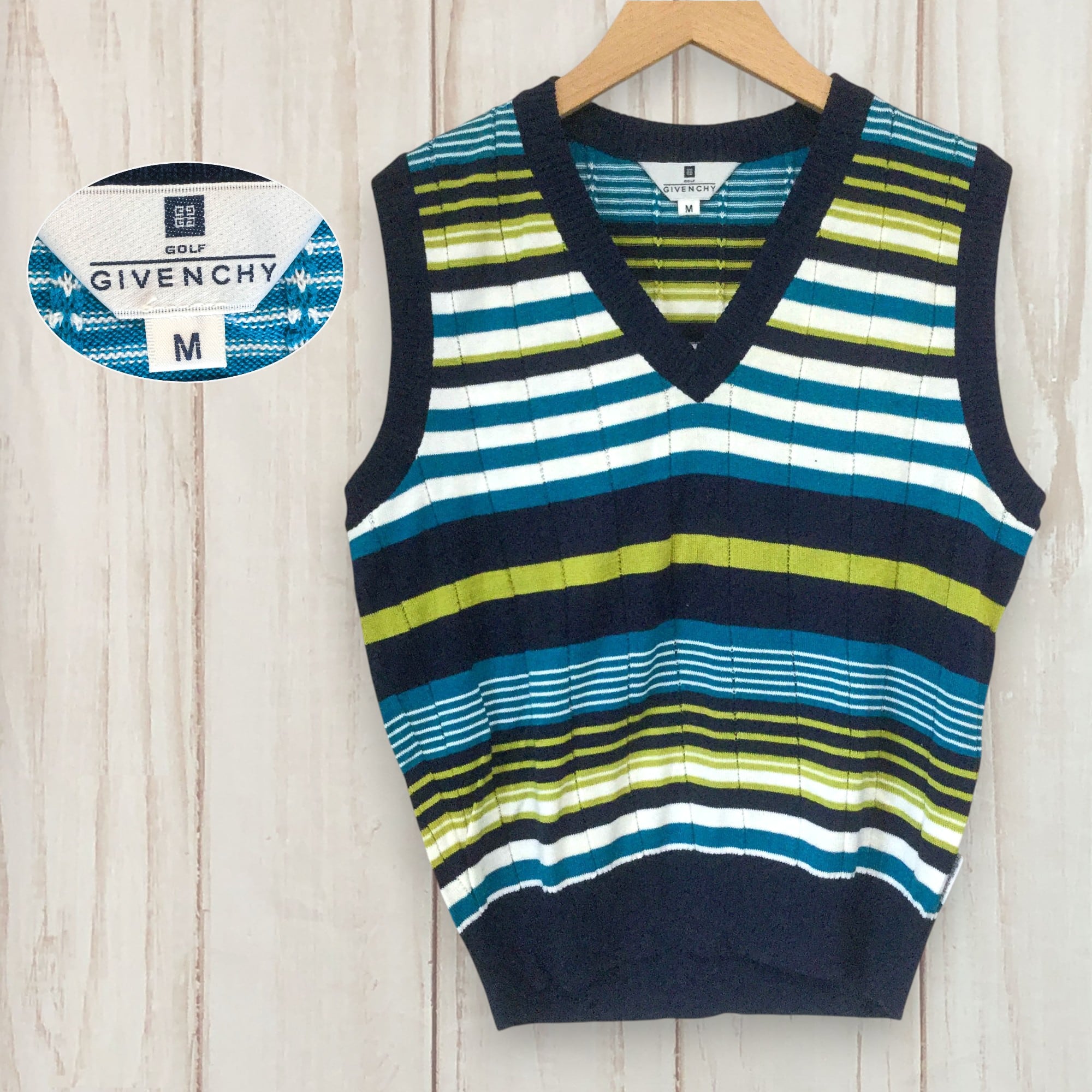 【ジバンシィ ニットベスト】 薄手サマーニット レア 日本製 ゴルフ ボーダー 日本製 M 古着 レディース [250627-026]