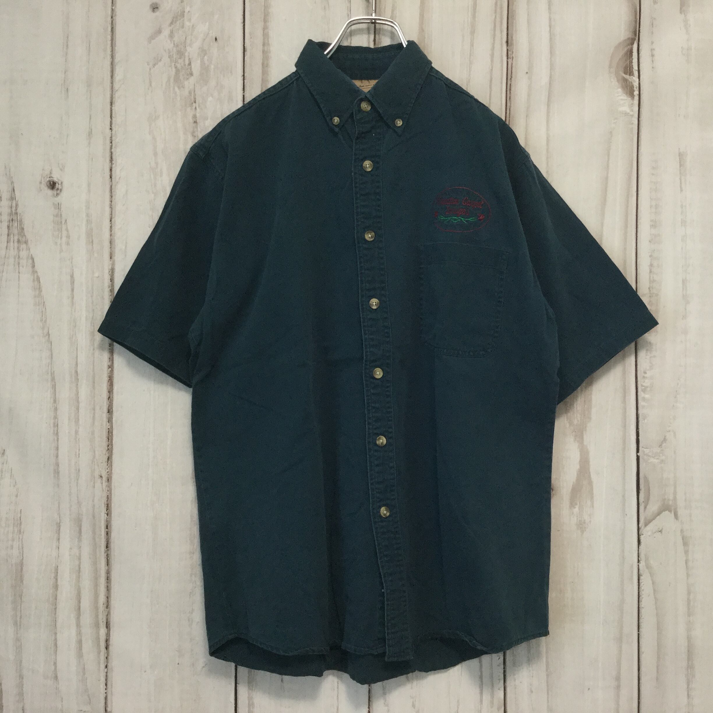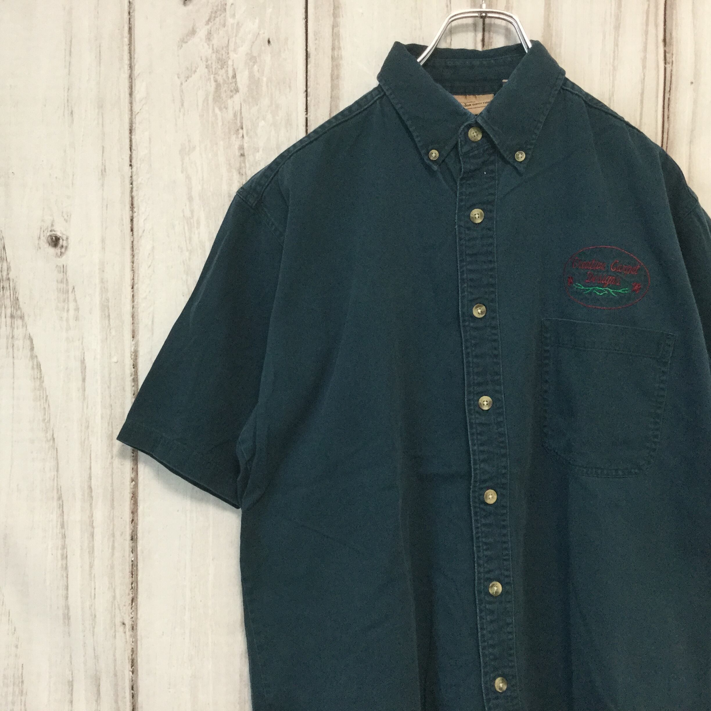 【USA古着 ヴィンテージ 半袖シャツ】刺繍 厚手コットン XL相当 緑 古着 [240512-002]