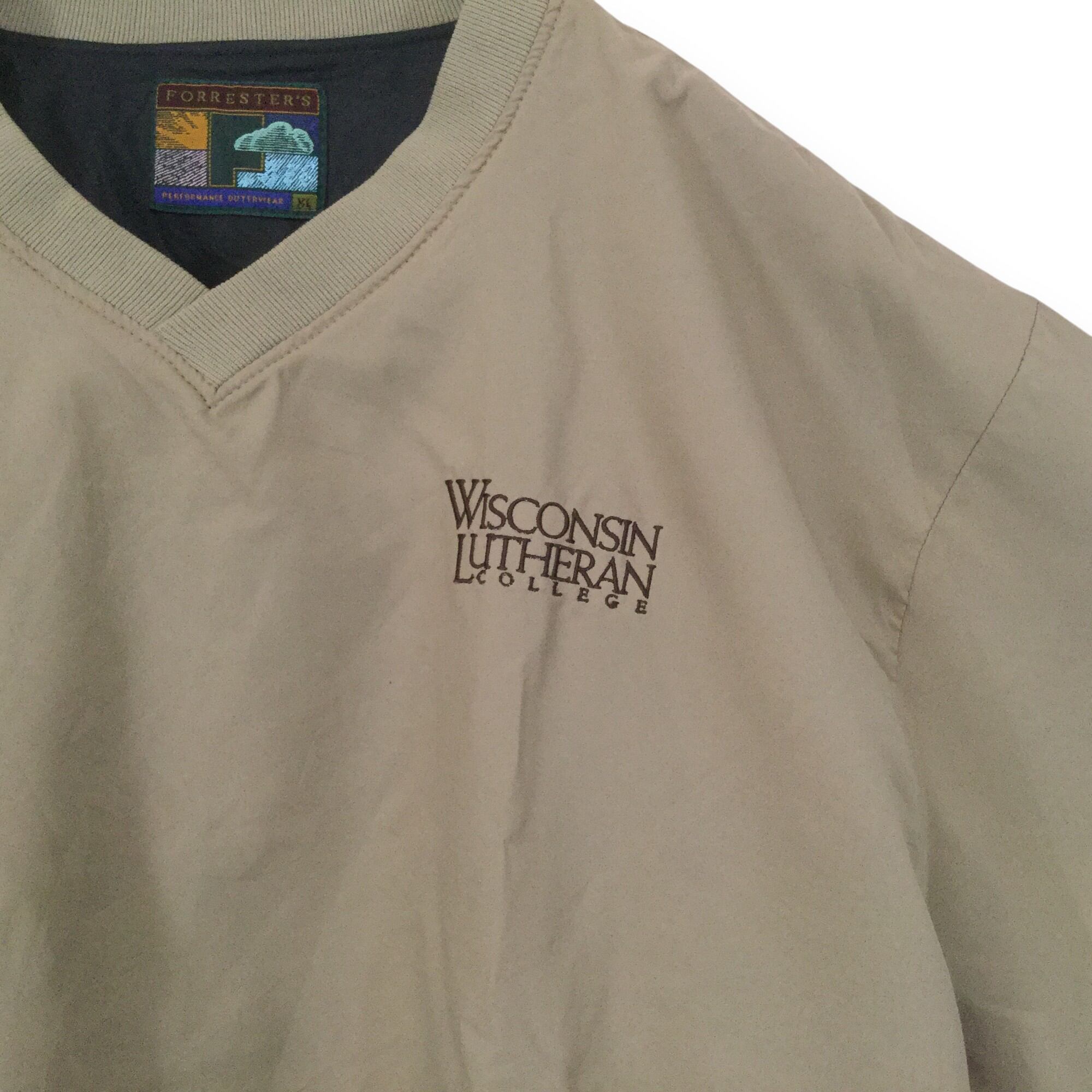 ウィスコンシン・ルーザラン大学 (Wisconsin Lutheran College)の文字が刺繍されたナイロンプルオーバーです。