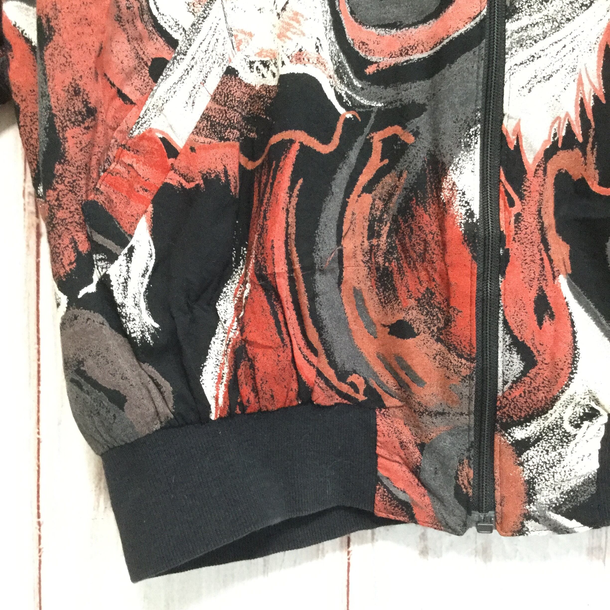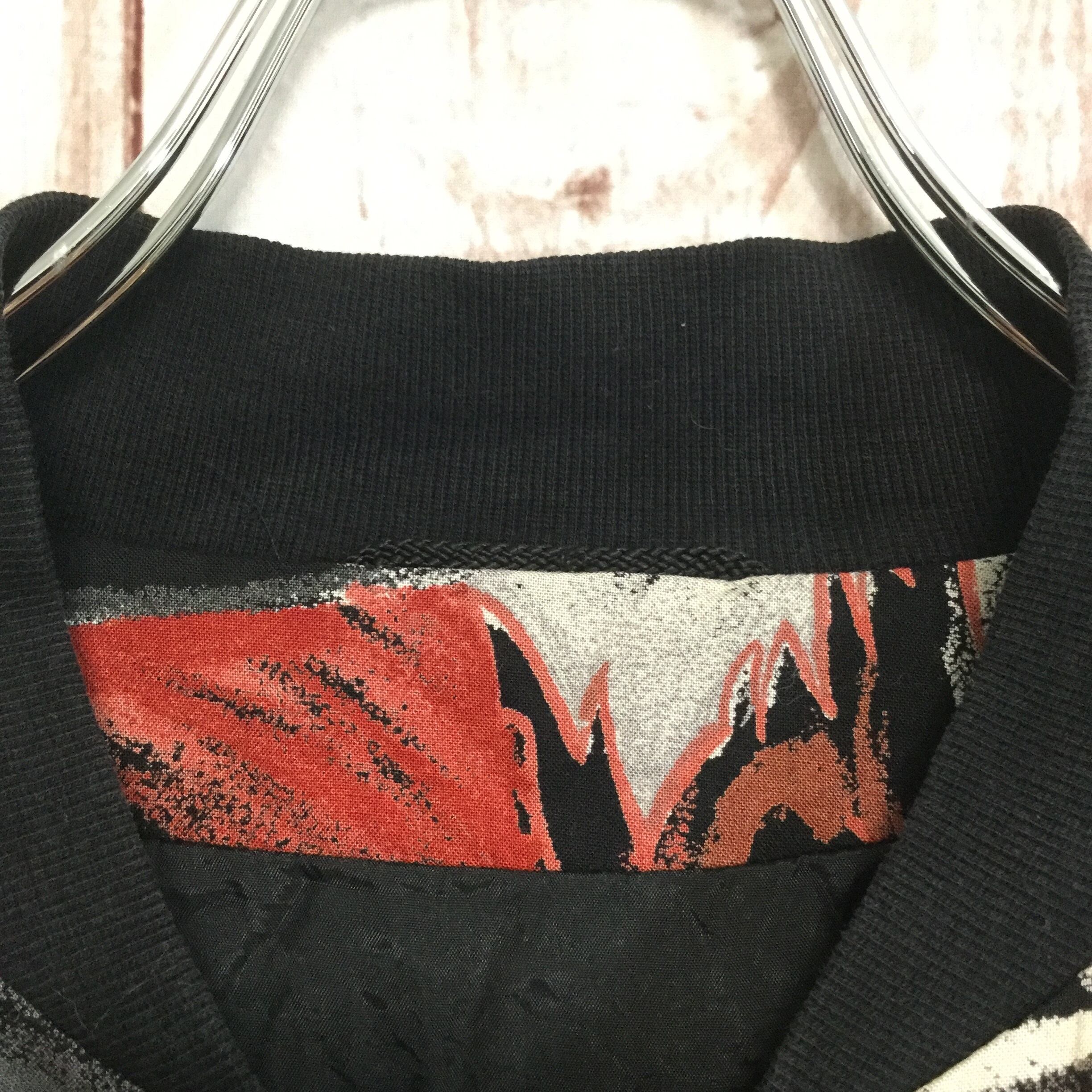 ヴィンテージ 古着 西ドイツ製 ブルゾン ジャケット 総柄 レディース M ビスコース レーヨン 肩パッド 個性派 アート柄 モード系 80s 90s