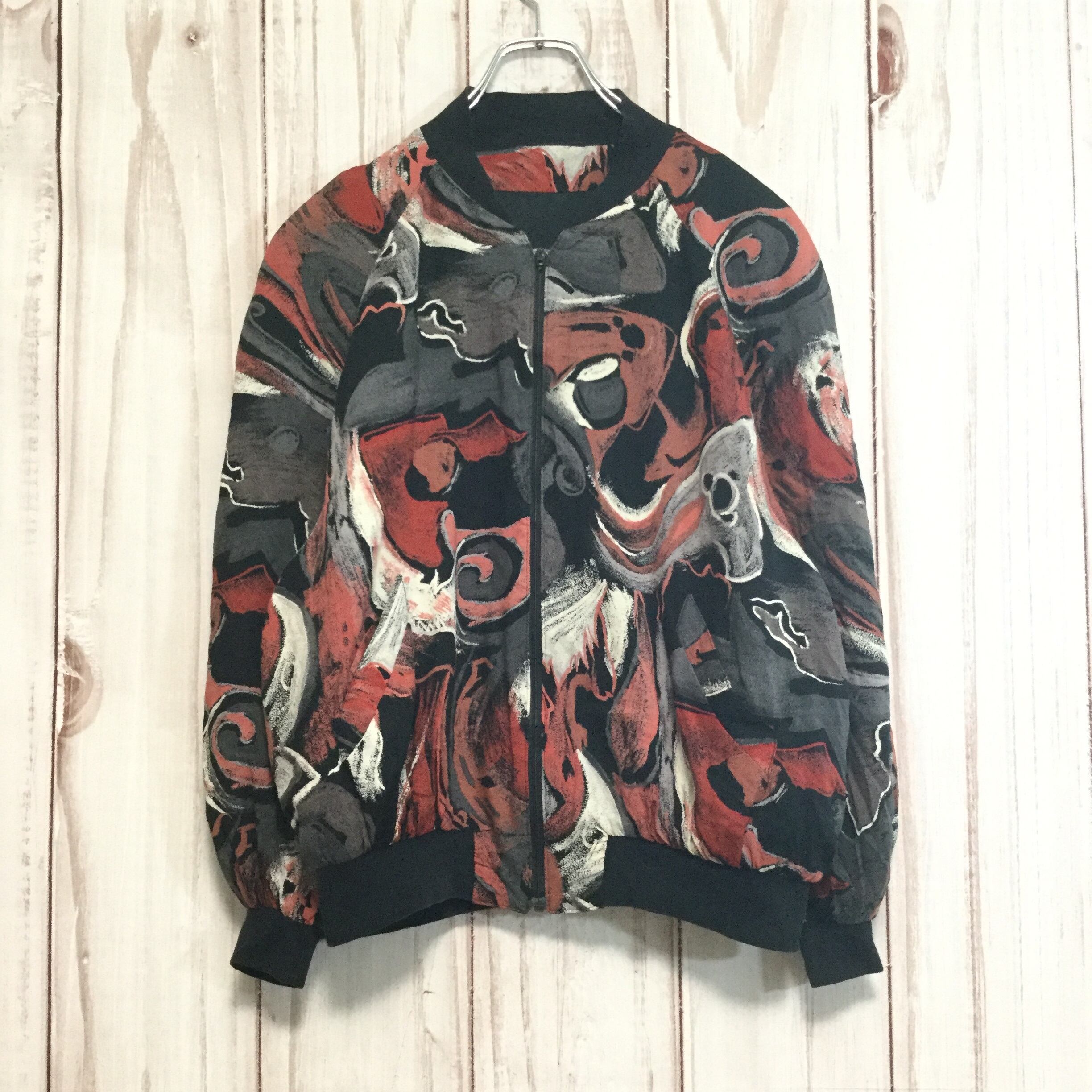 西ドイツ製の希少なヴィンテージブルゾンです。抽象的な総柄デザインが印象的で、古着好きや個性的なファッションをお探しの方におすすめです。肩パッド入りでシルエットも綺麗に決まります。一点物感のあるデザインで、モード系コーデにも相性抜群です。