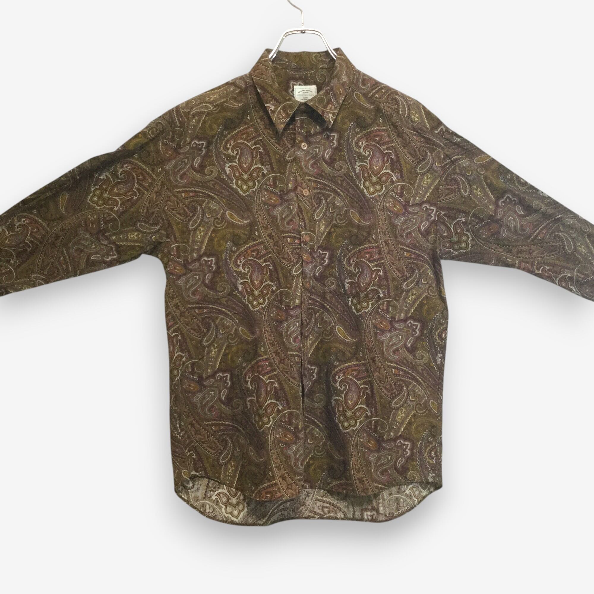 【レトロ ペイズリー 長袖総柄シャツ】ヴィンテージ 80-90年代 L相当 茶 古着 [240929-005]