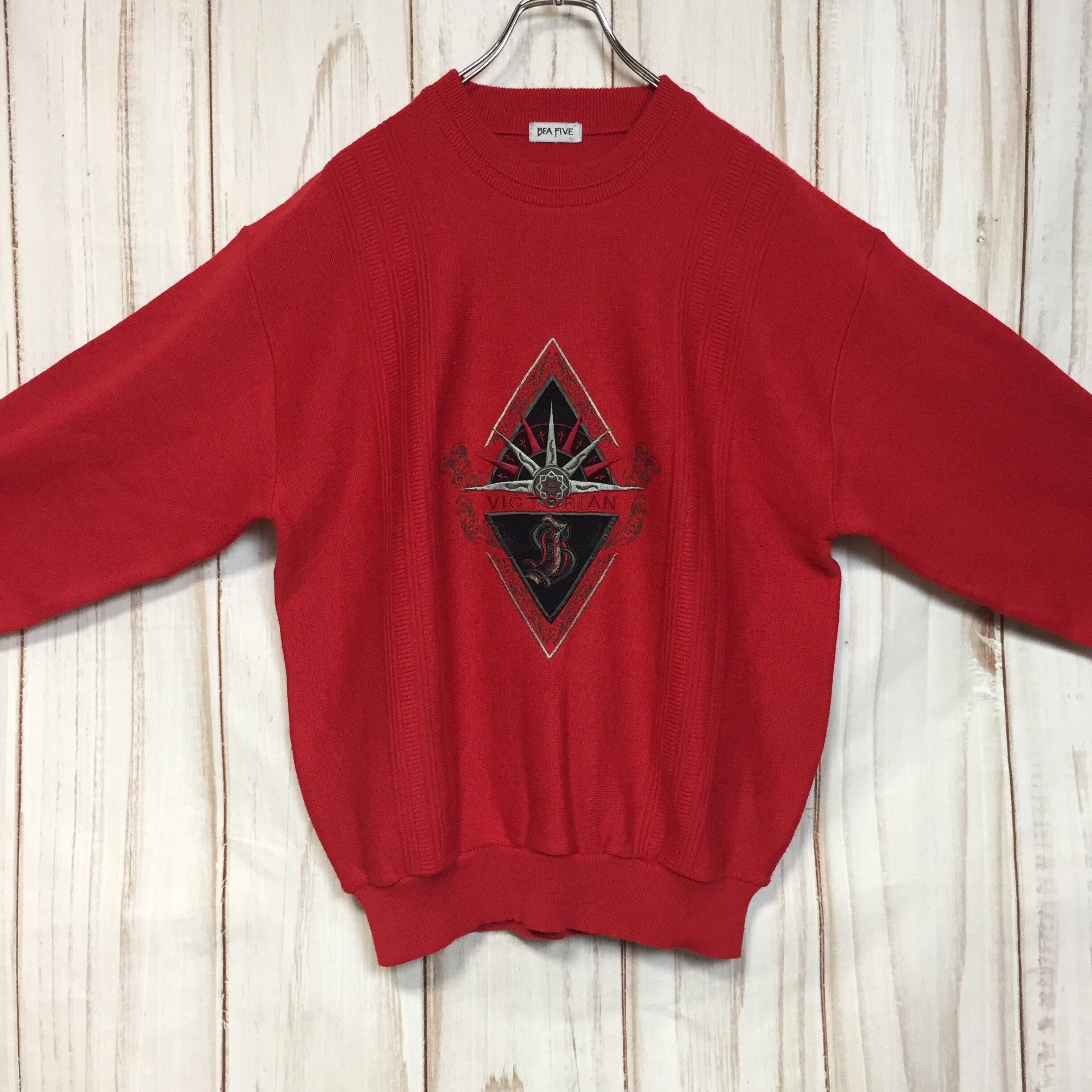 ヴィンテージ 昭和レトロ 刺繍デザイン 太アーム 美品 セーター 赤