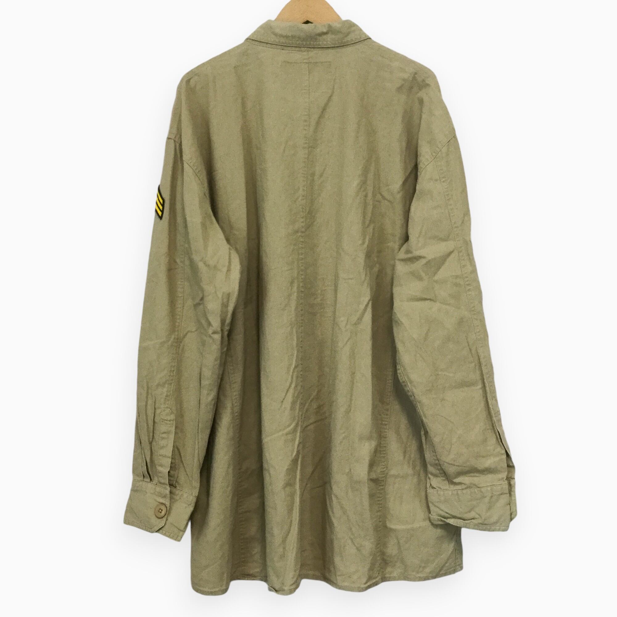 古着 長袖シャツ RIMASTER リネン ワッペン 大きいサイズ 4XL ビッグサイズ ミリタリー 4XL相当 ベージュ