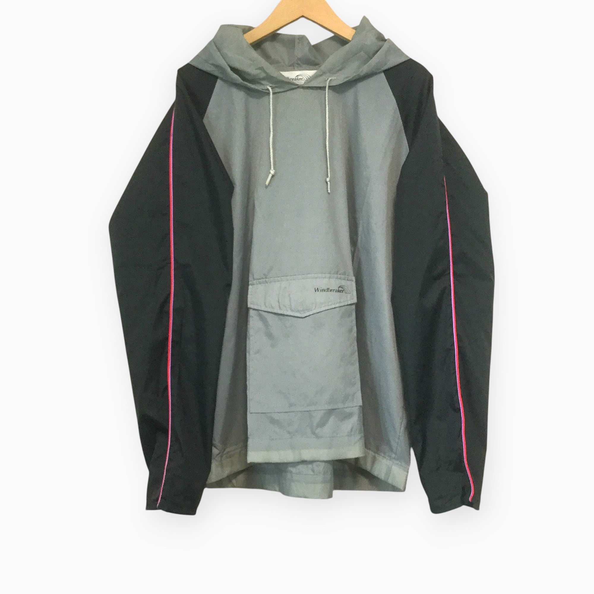 Winddreaker グレー ナイロンプルオーバー ハーフジップ L メンズ アノラック フード ナイロン100% ラグラン
