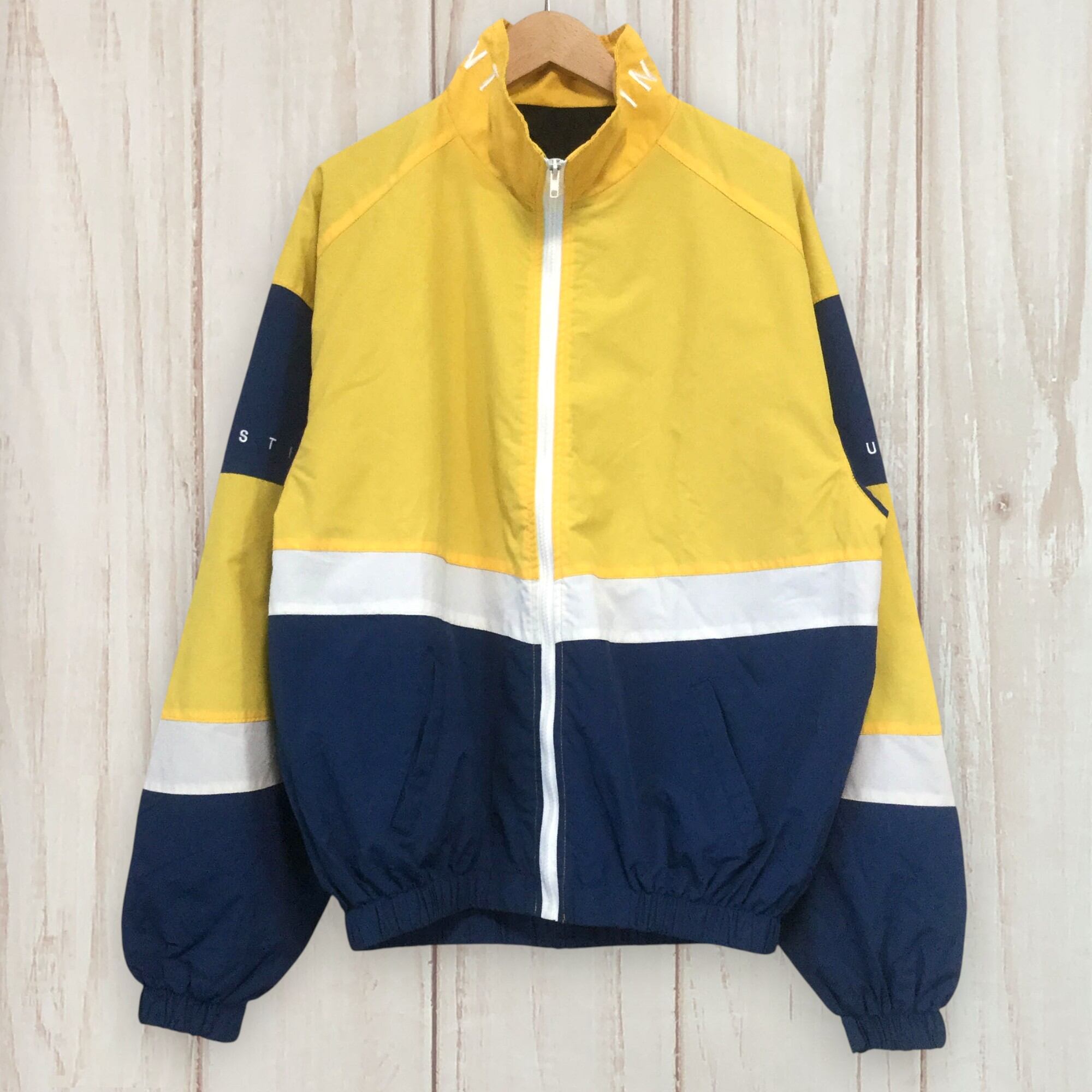 古着 ポリジャケット 刺繍 切替 マウンテン イエロー 90s 韓国製 L相当 黄/ネイビー/白