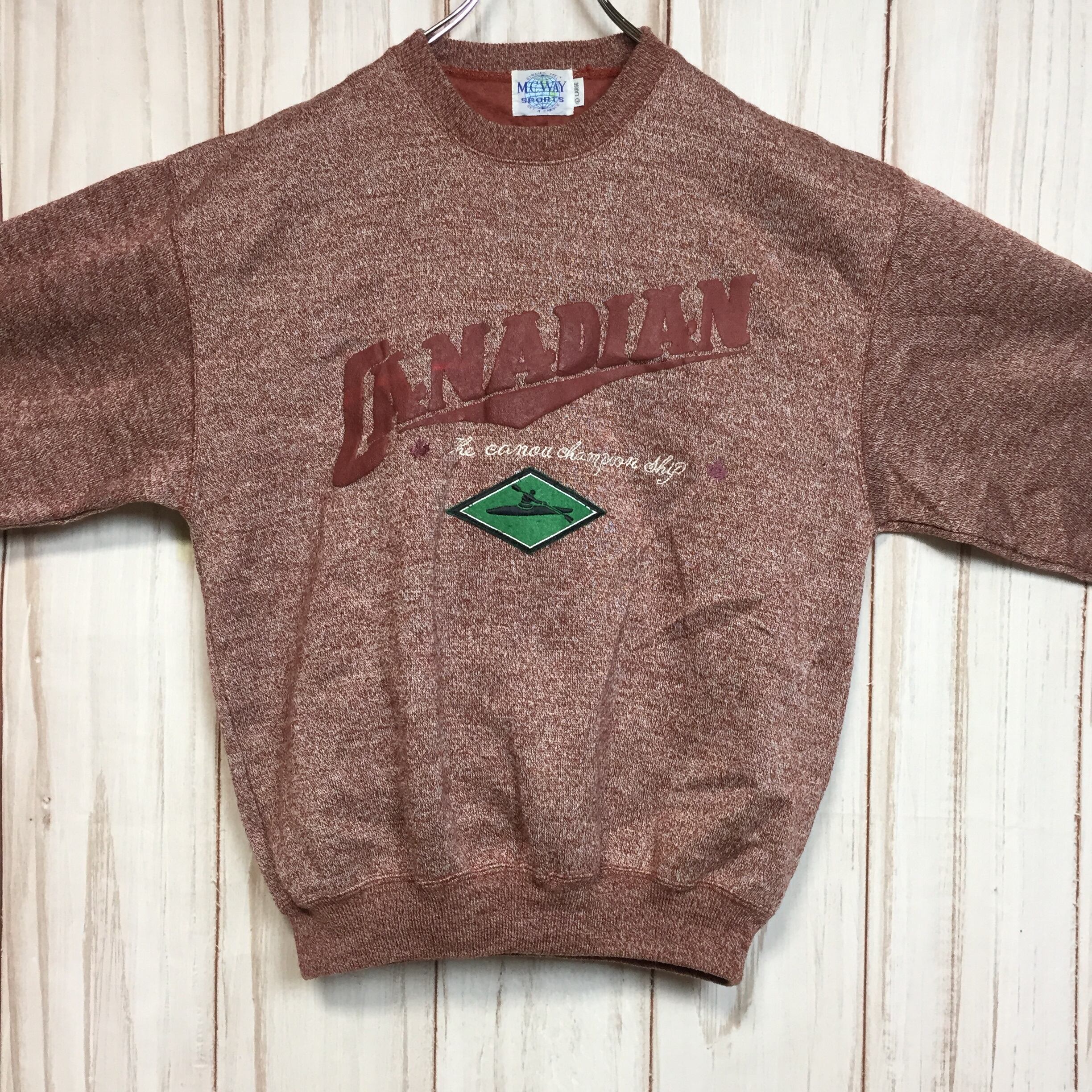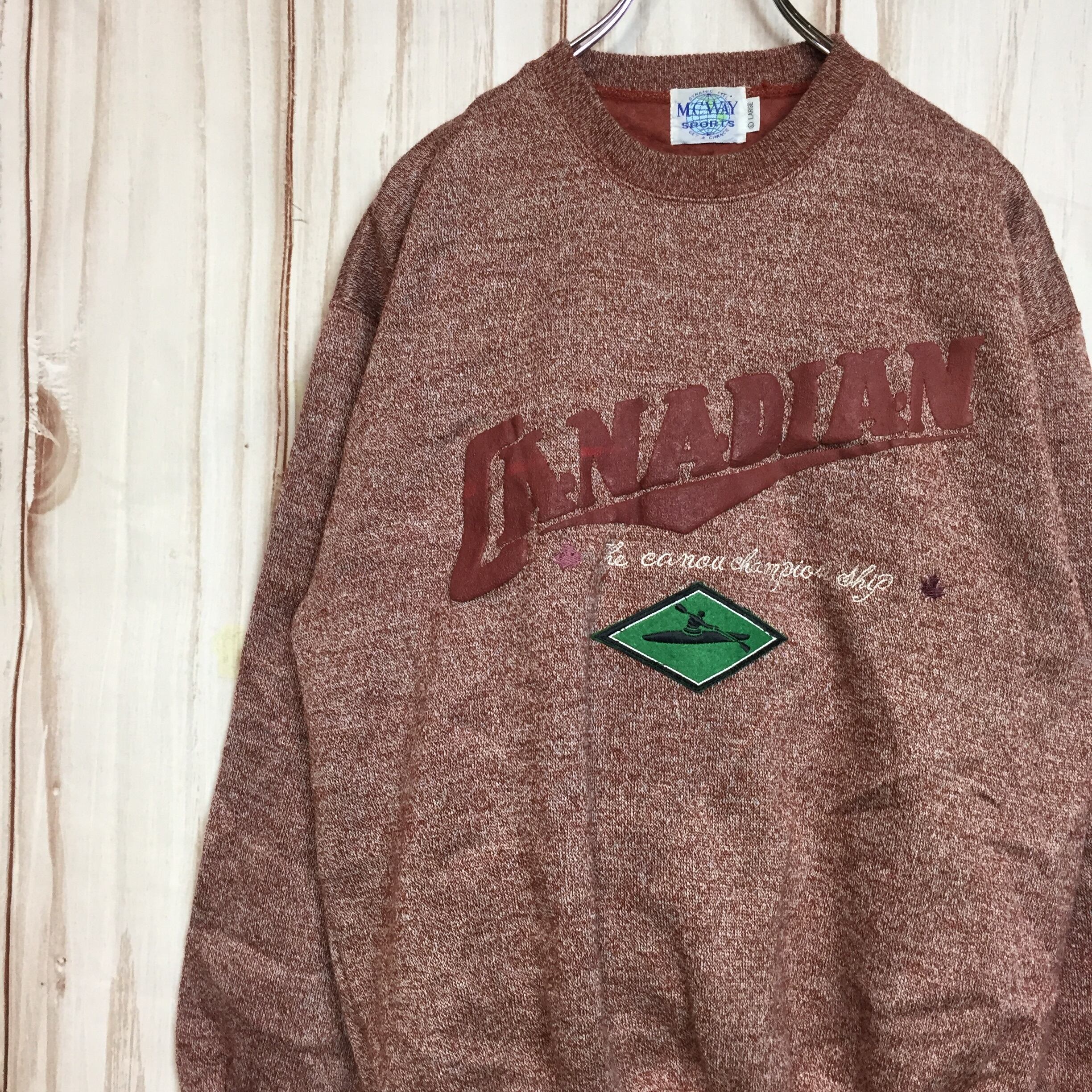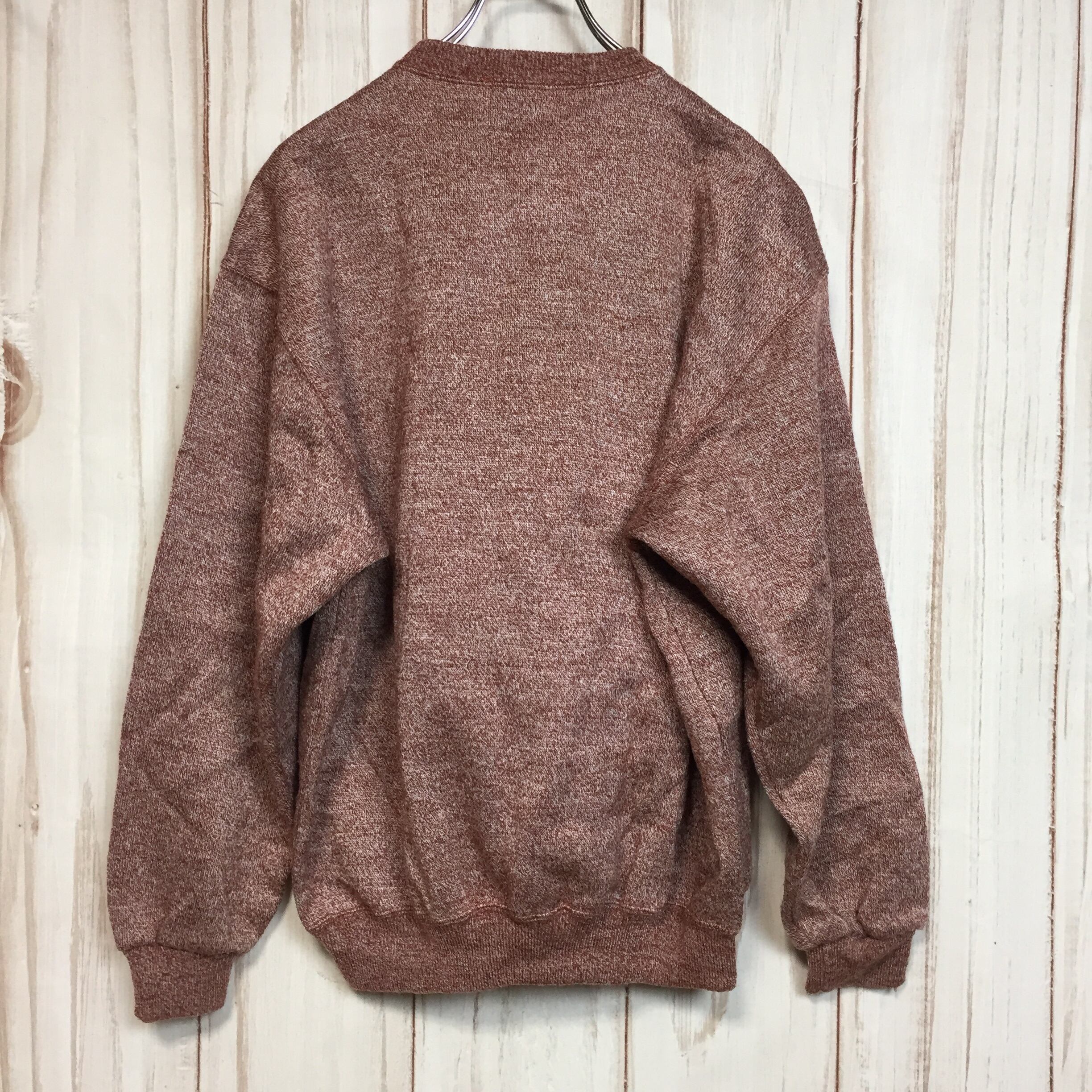 【刺繍デザイン スウェット】80-90年代シルエット 太アーム L 赤茶 トレーナー 長袖 古着[221213-006]