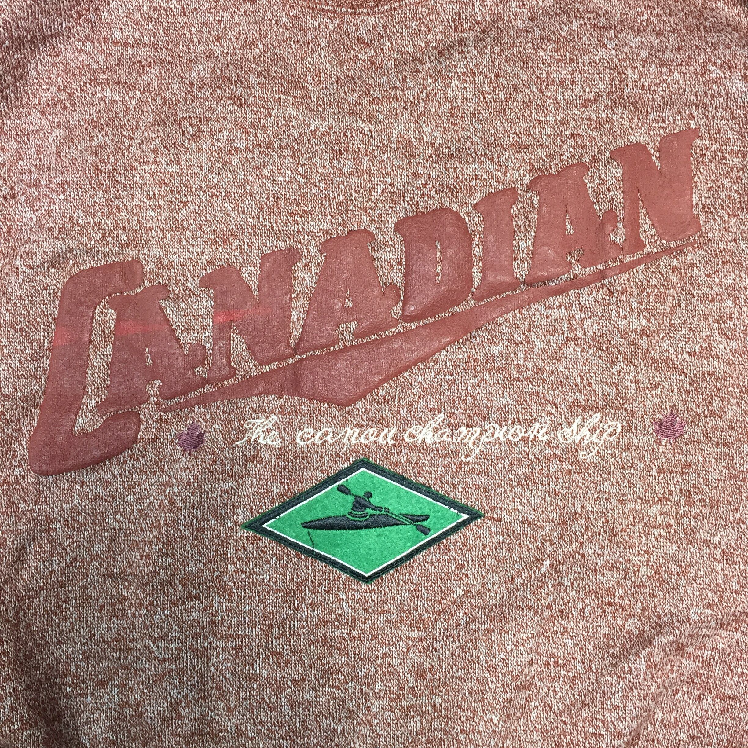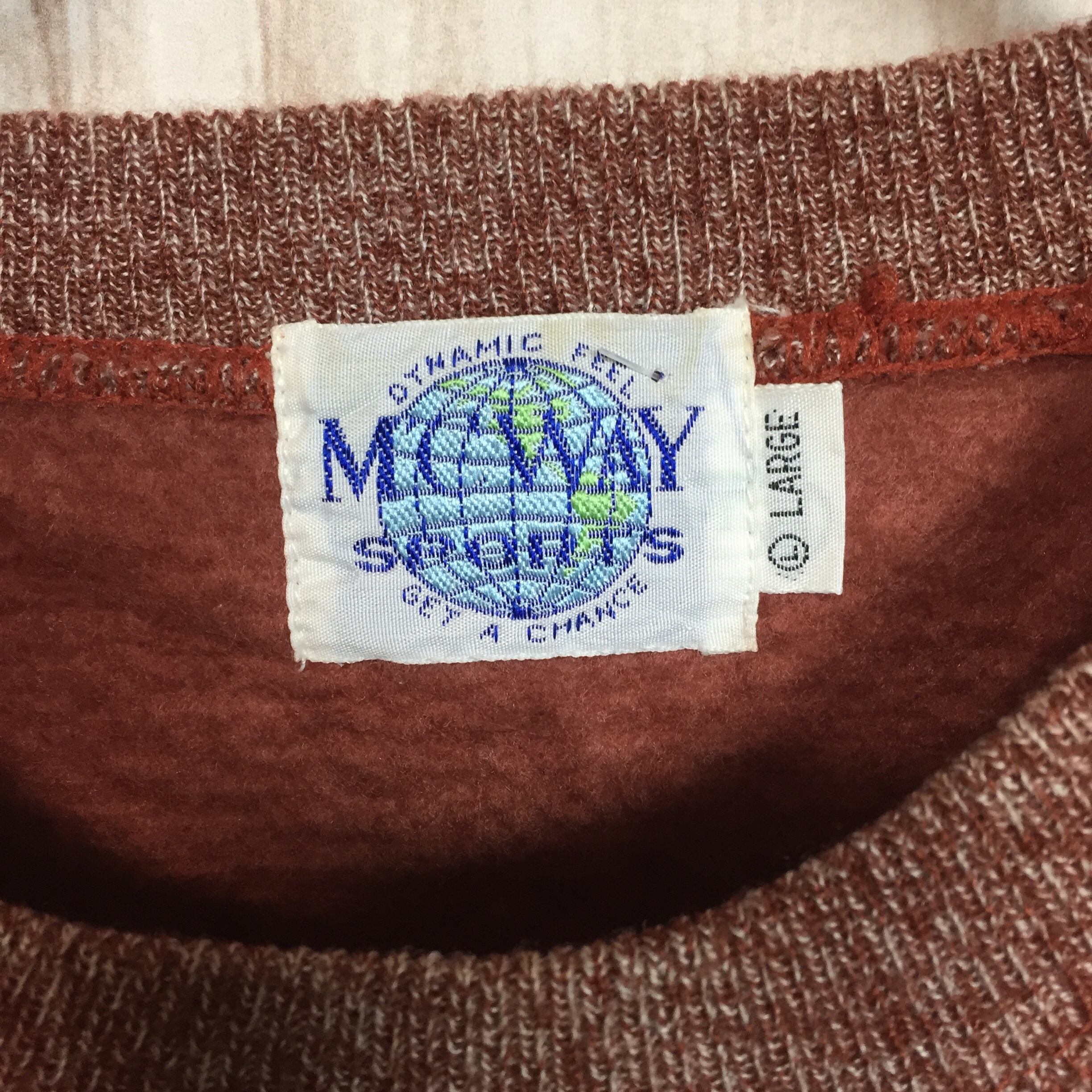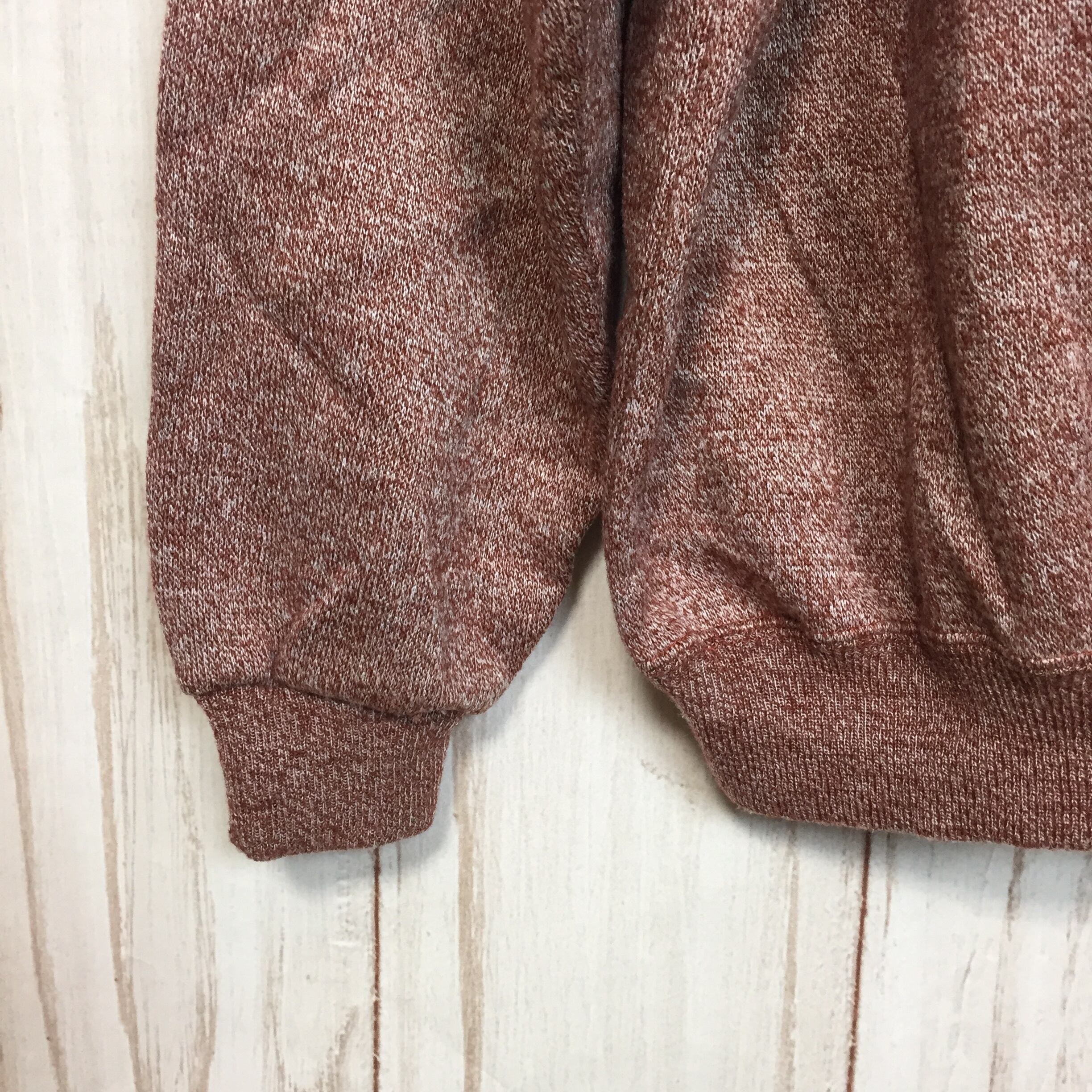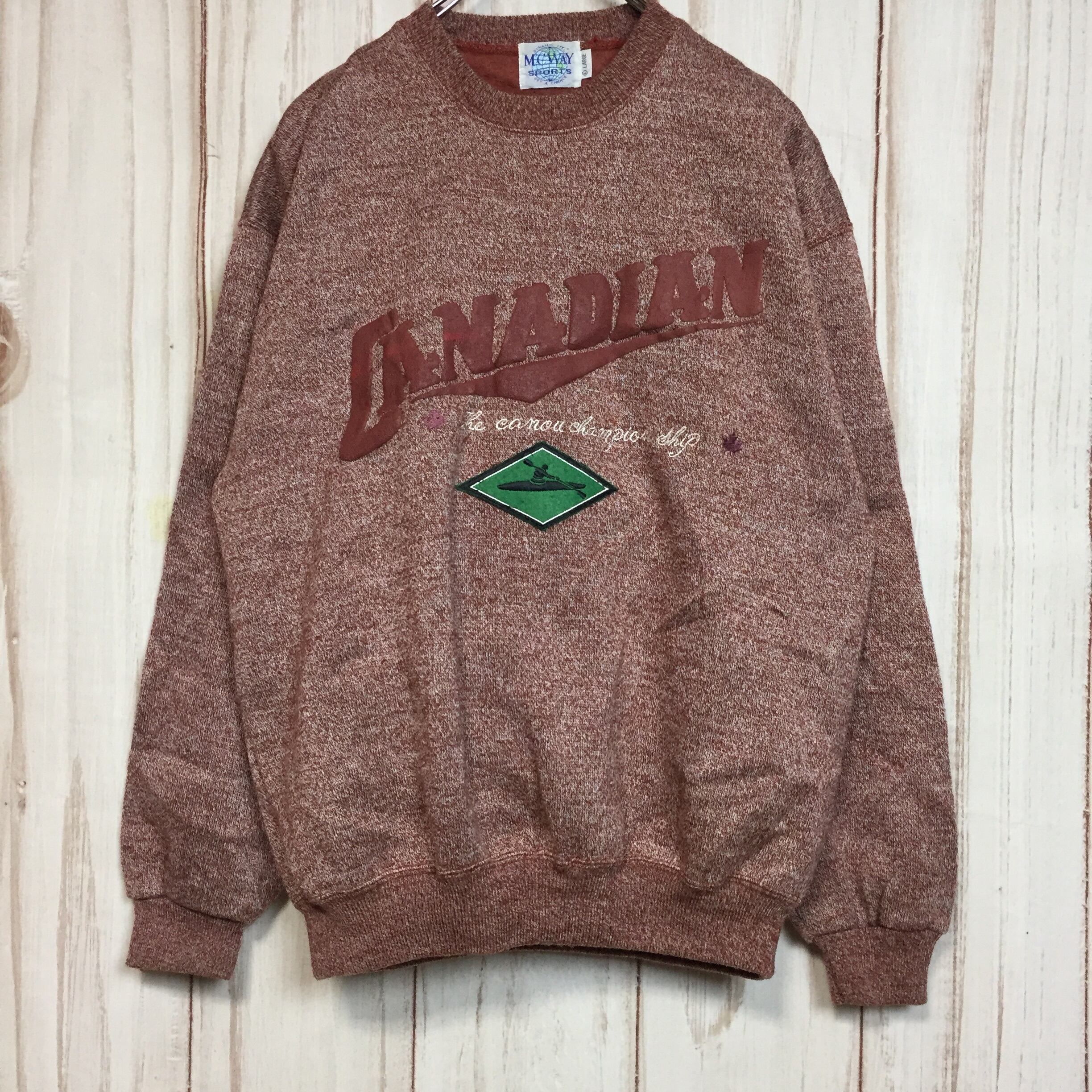 【刺繍デザイン スウェット】80-90年代シルエット 太アーム L 赤茶 トレーナー 長袖 古着[221213-006]