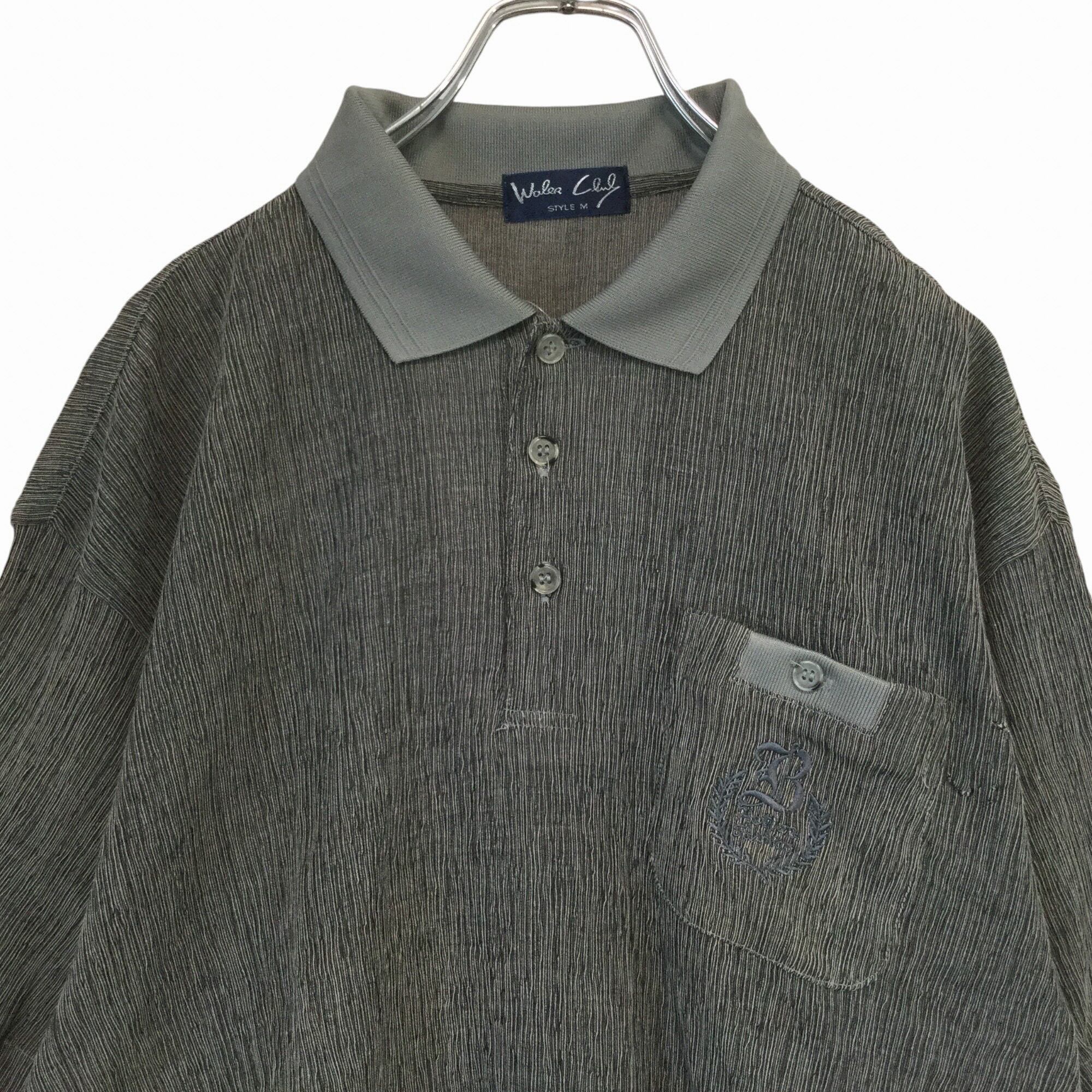 WalesClub ポロシャツ 半袖 しじら織 昭和レトロ ヴィンテージ風 切り替え襟 刺繍ロゴ 胸ポケット ゆったりシルエット グレー系 メンズ Mサイズ コットン混 古着 美品 夏物 未使用品