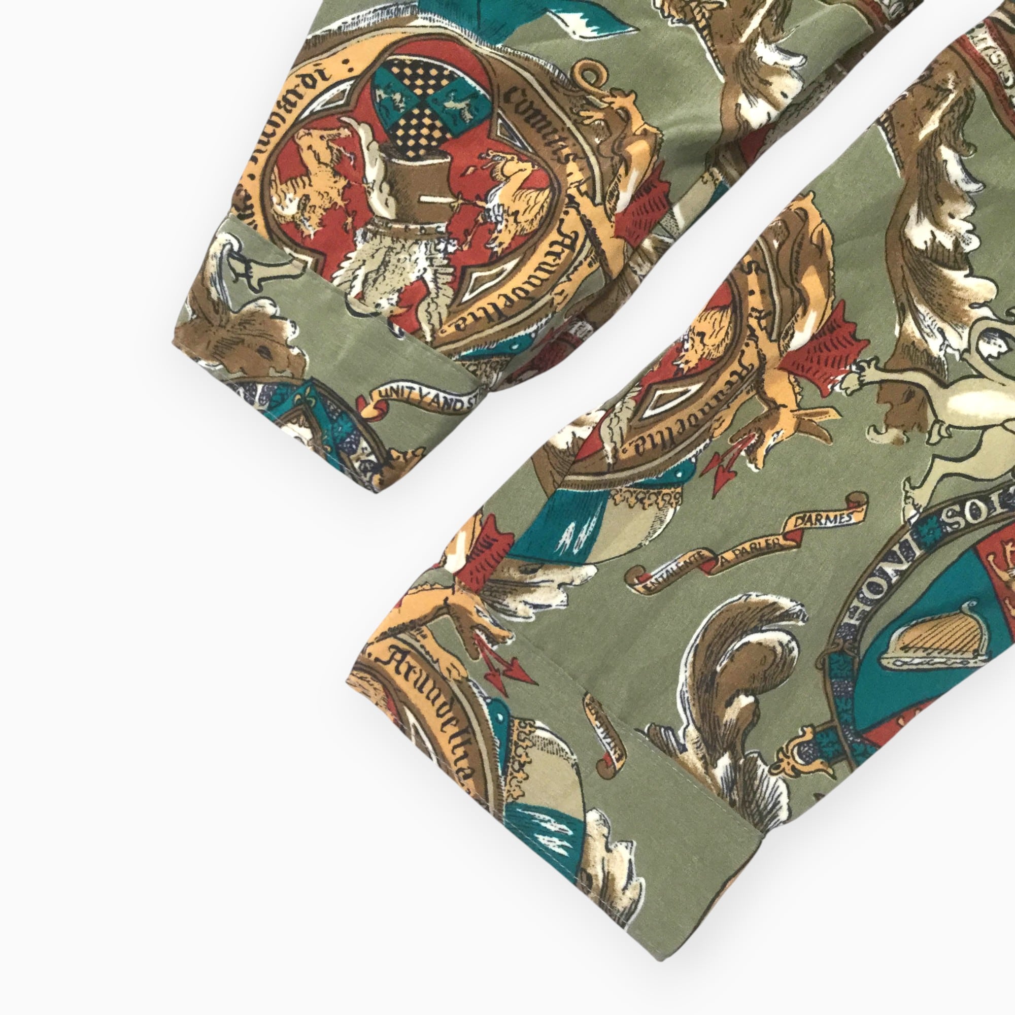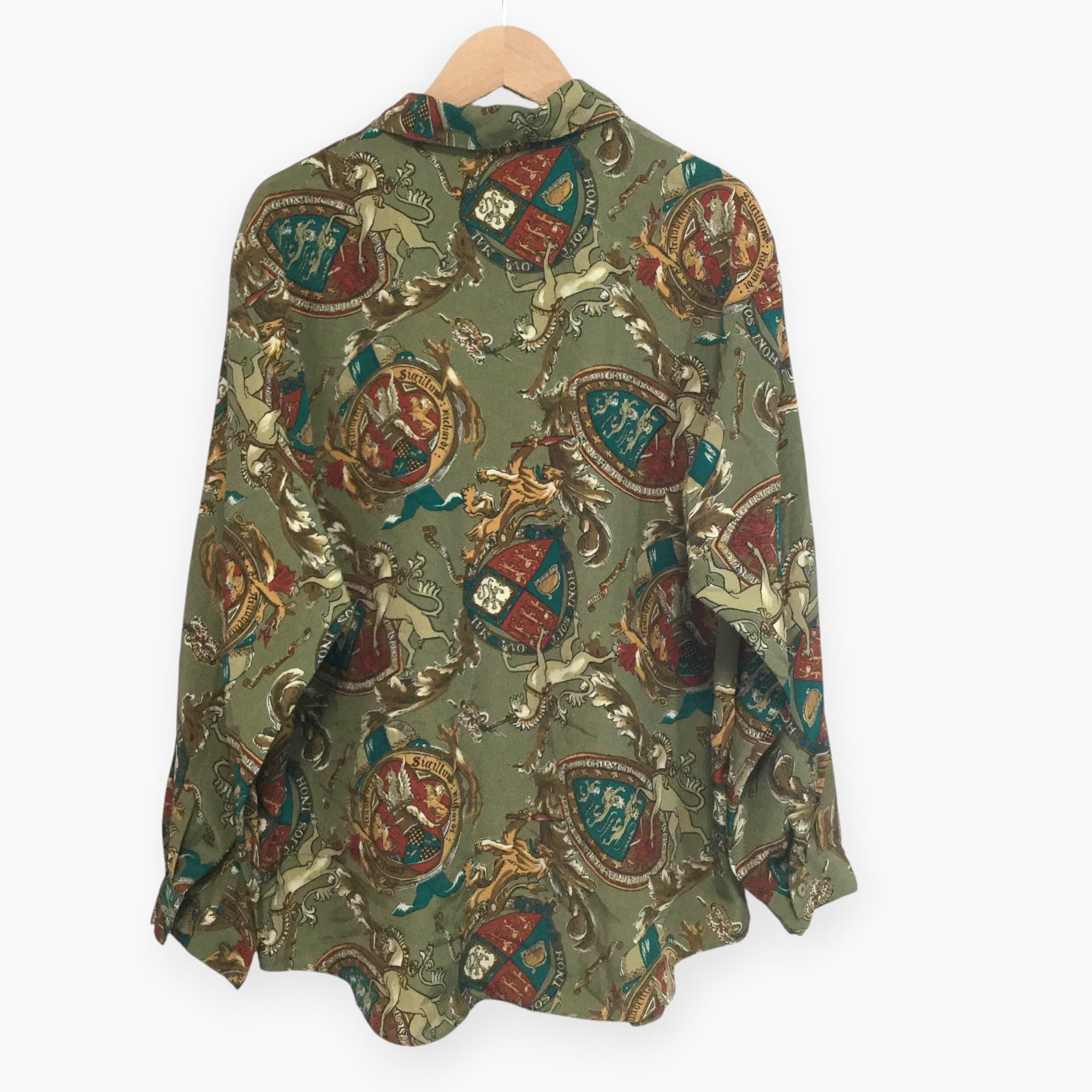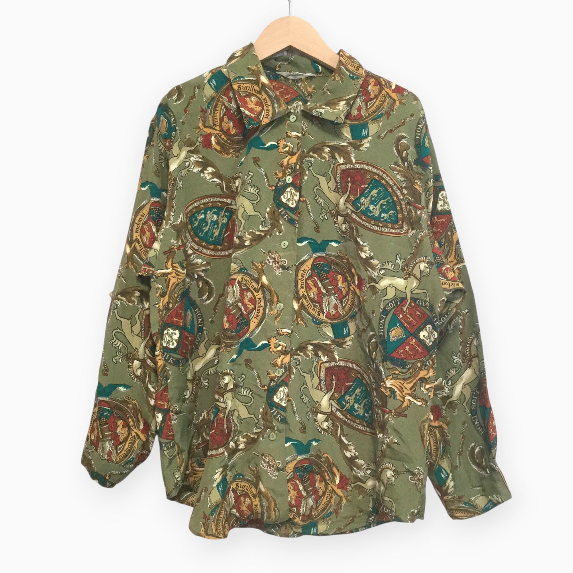 古着 ヨーロピアン 長袖総柄シャツ レトロ 日本製 ポリエステル100% レトロデザイン 柄シャツ 上品 L相当 レディース