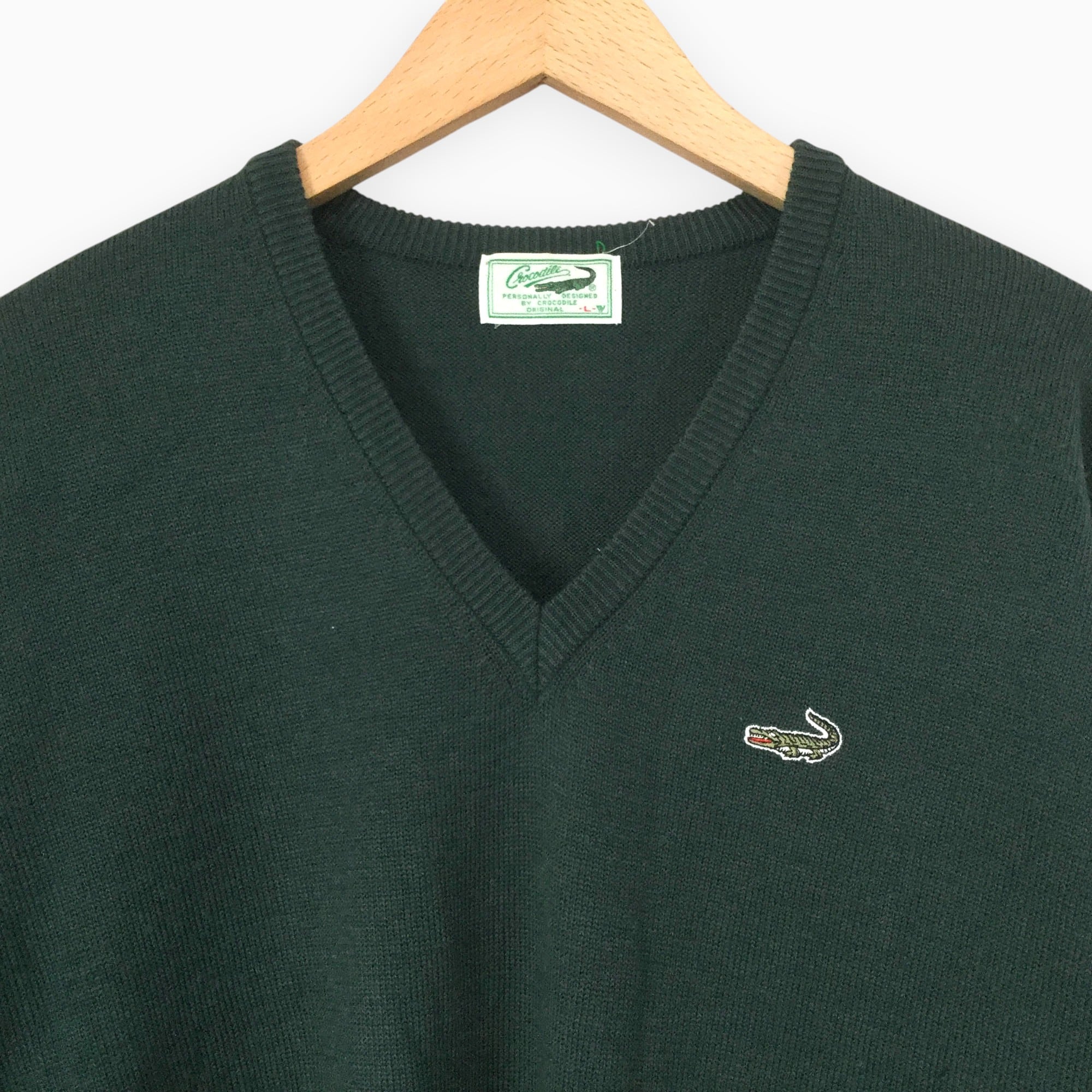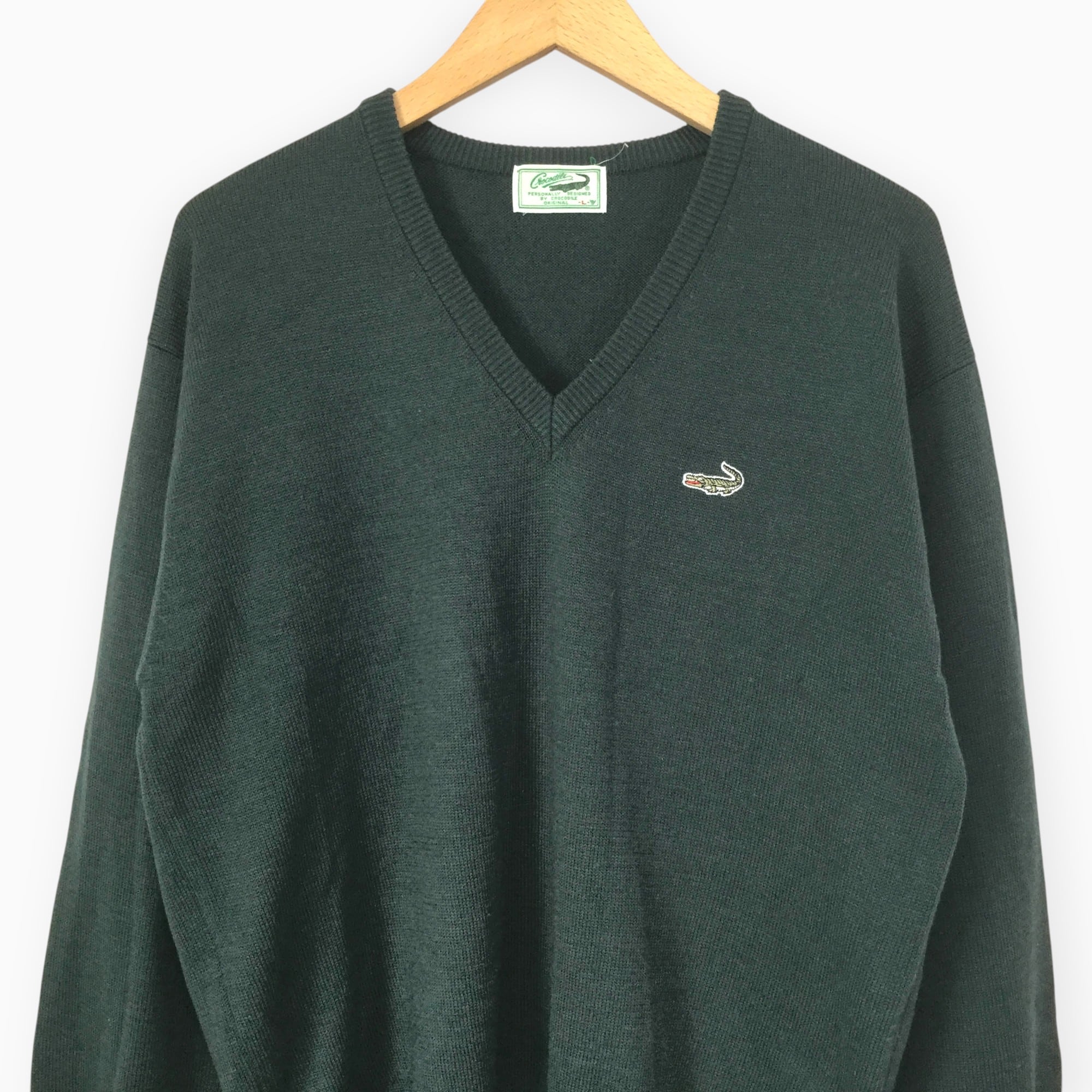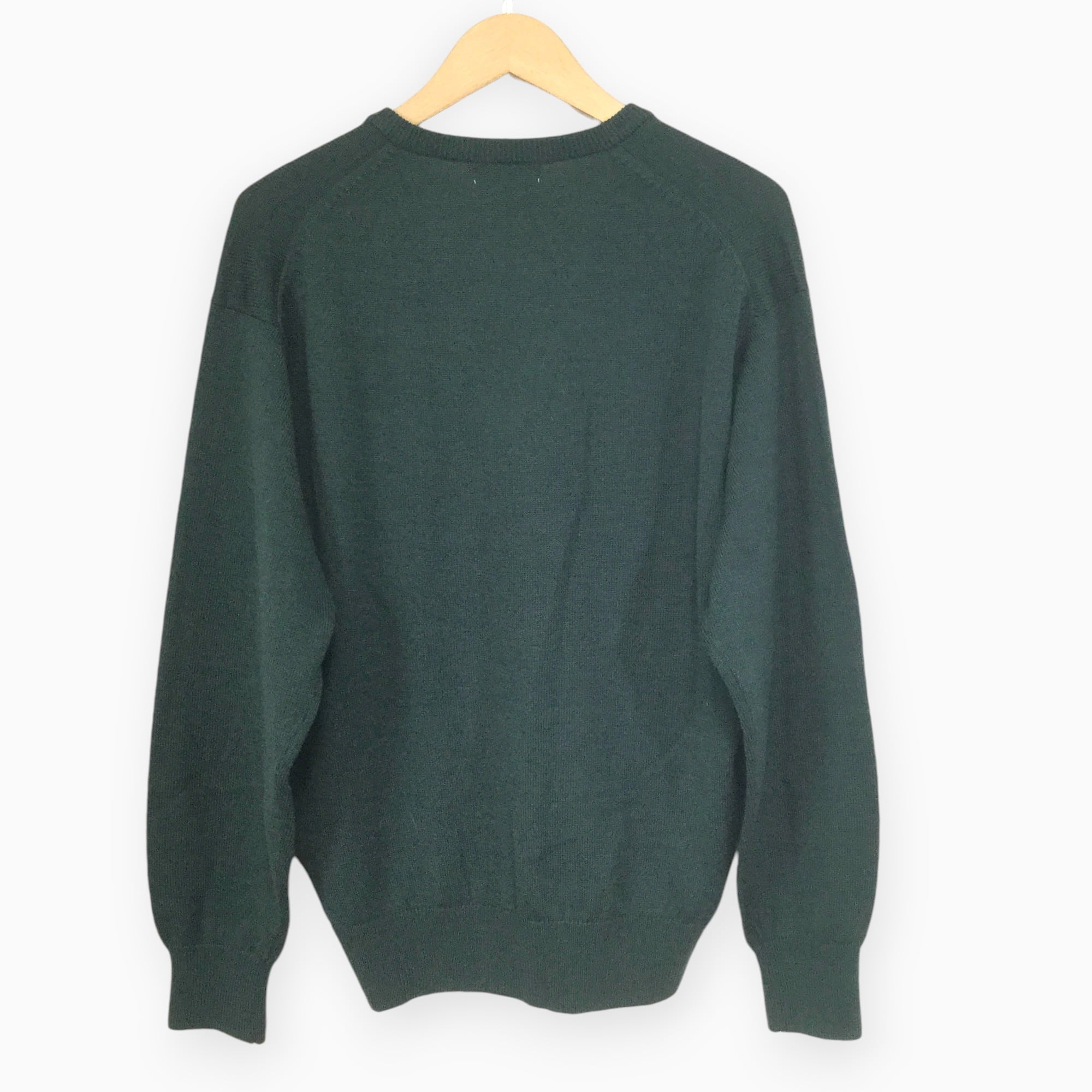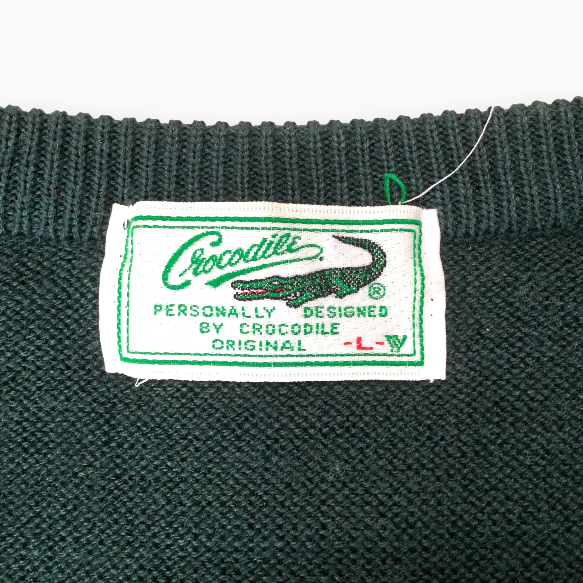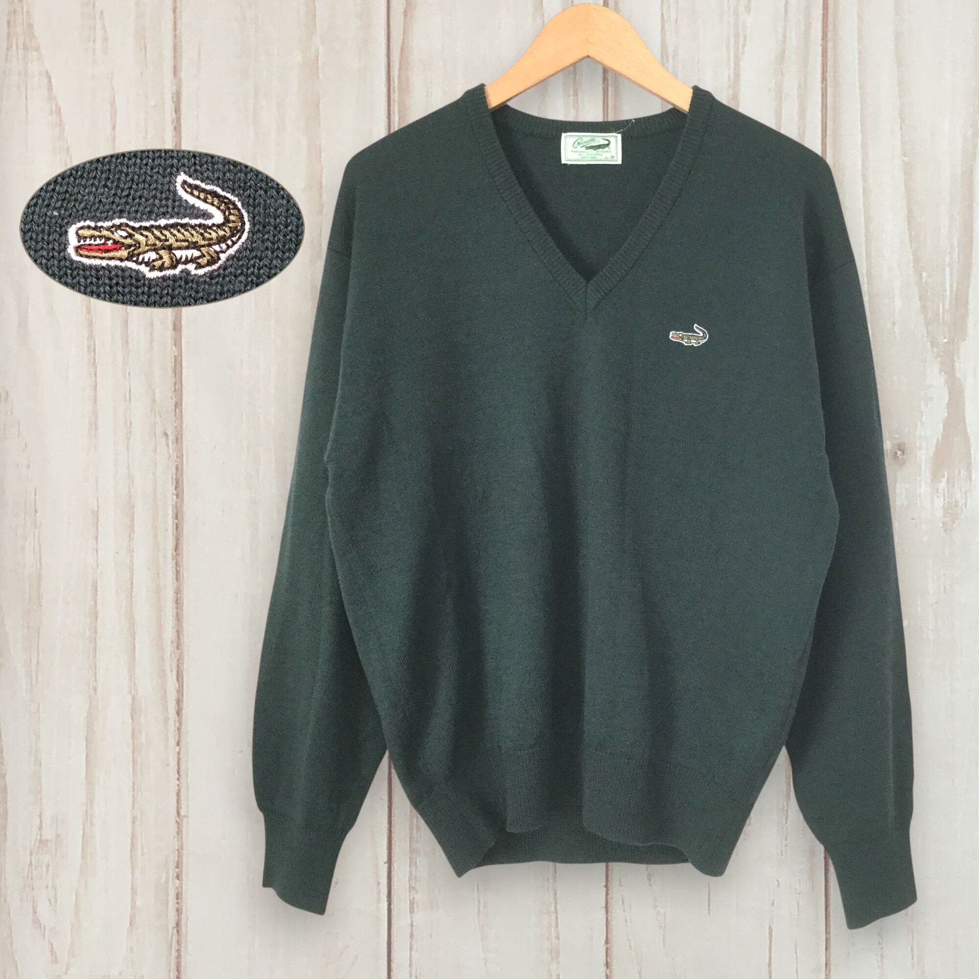 古着 クロコダイル Crocodile 長袖Vネックニット 日本製 Vネックニット セーター Lサイズ グリーン ウール混 L 緑