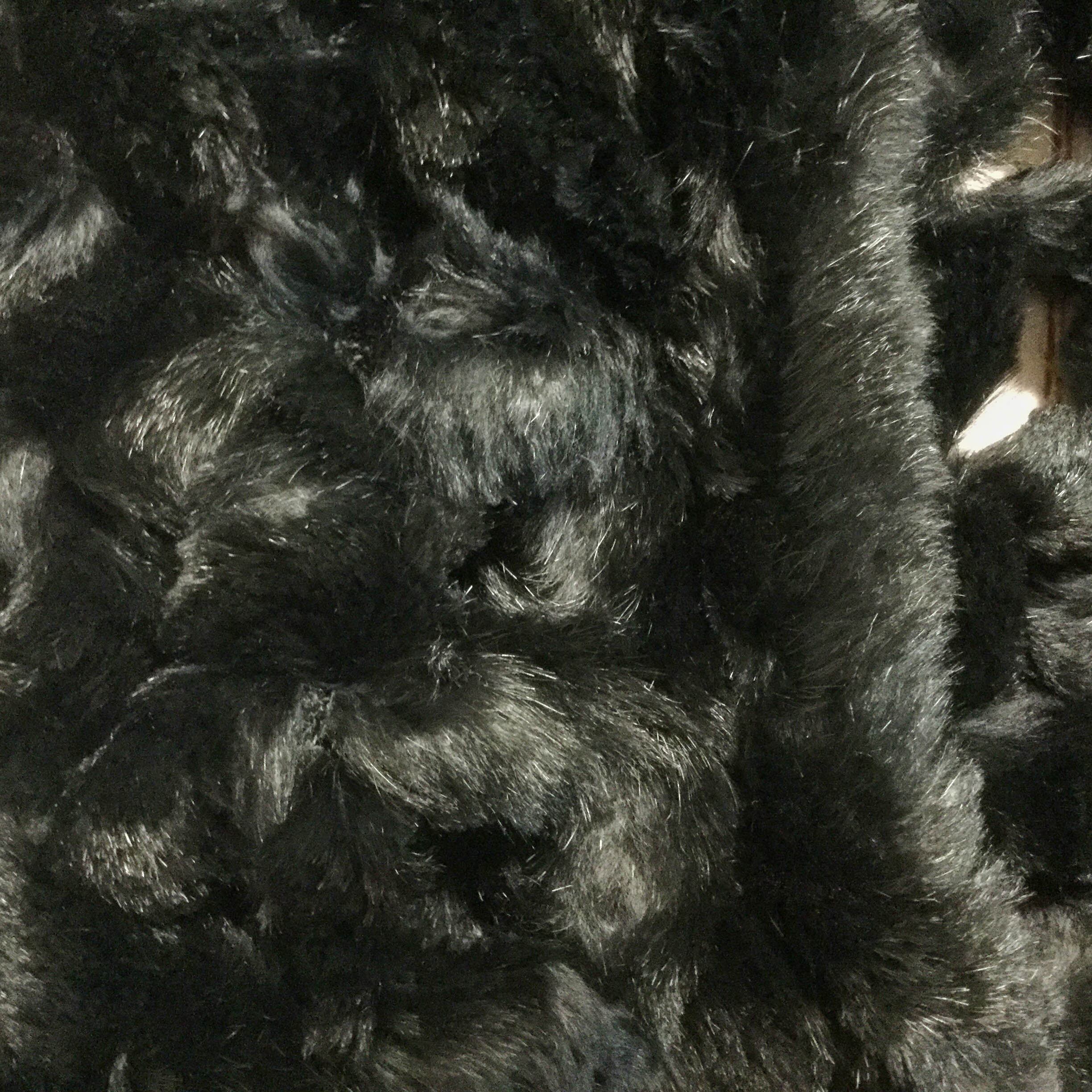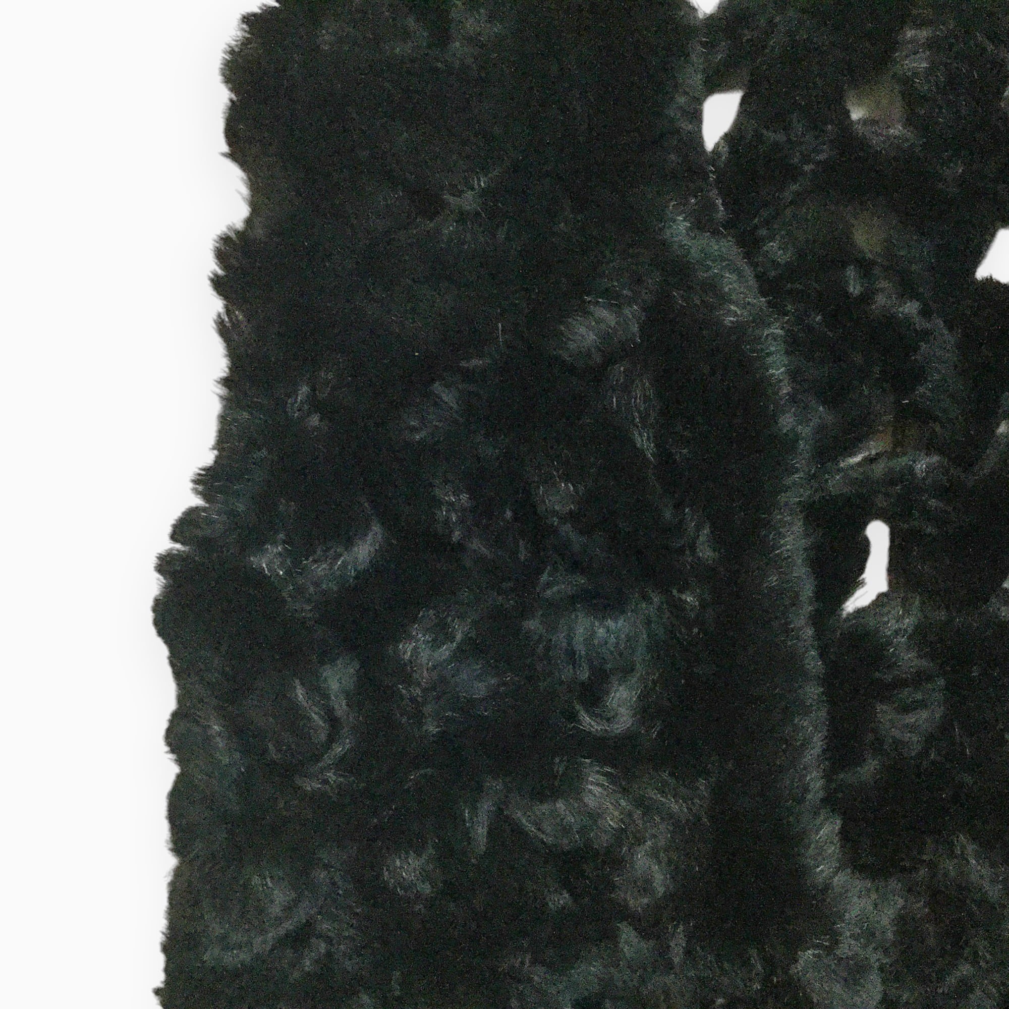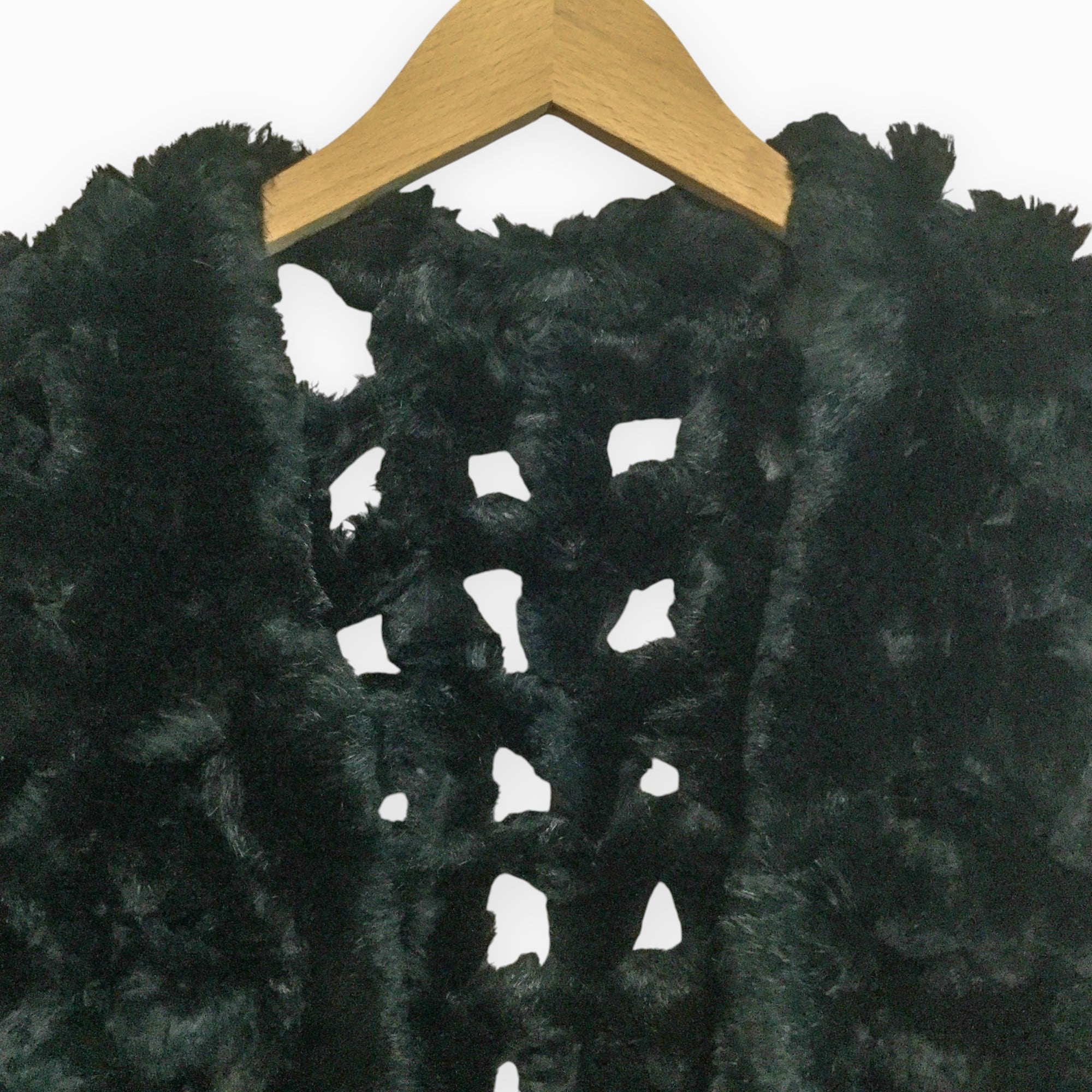 紐状にしたファーを組み合わせた、動きのあるデザインが印象的なブラックのファーベストです。