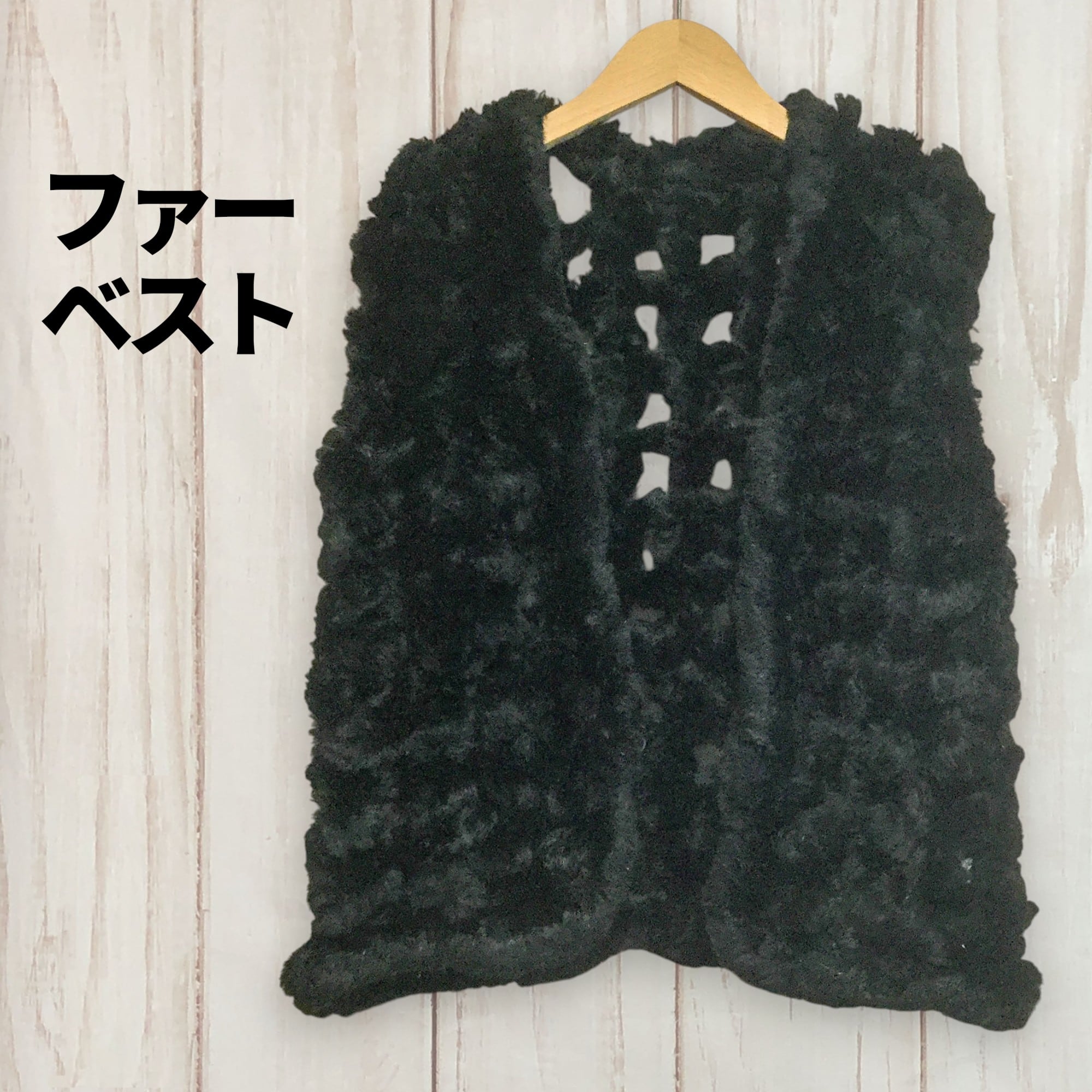 古着 ファーベスト ラビットファー風 ノースリーブ レイヤード 個性派 モード きれいめ カジュアル 秋冬 黒 レディース