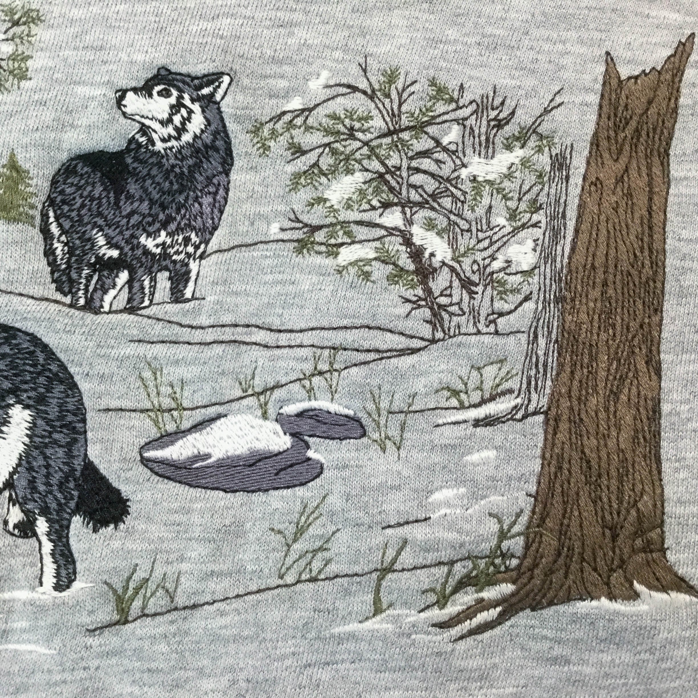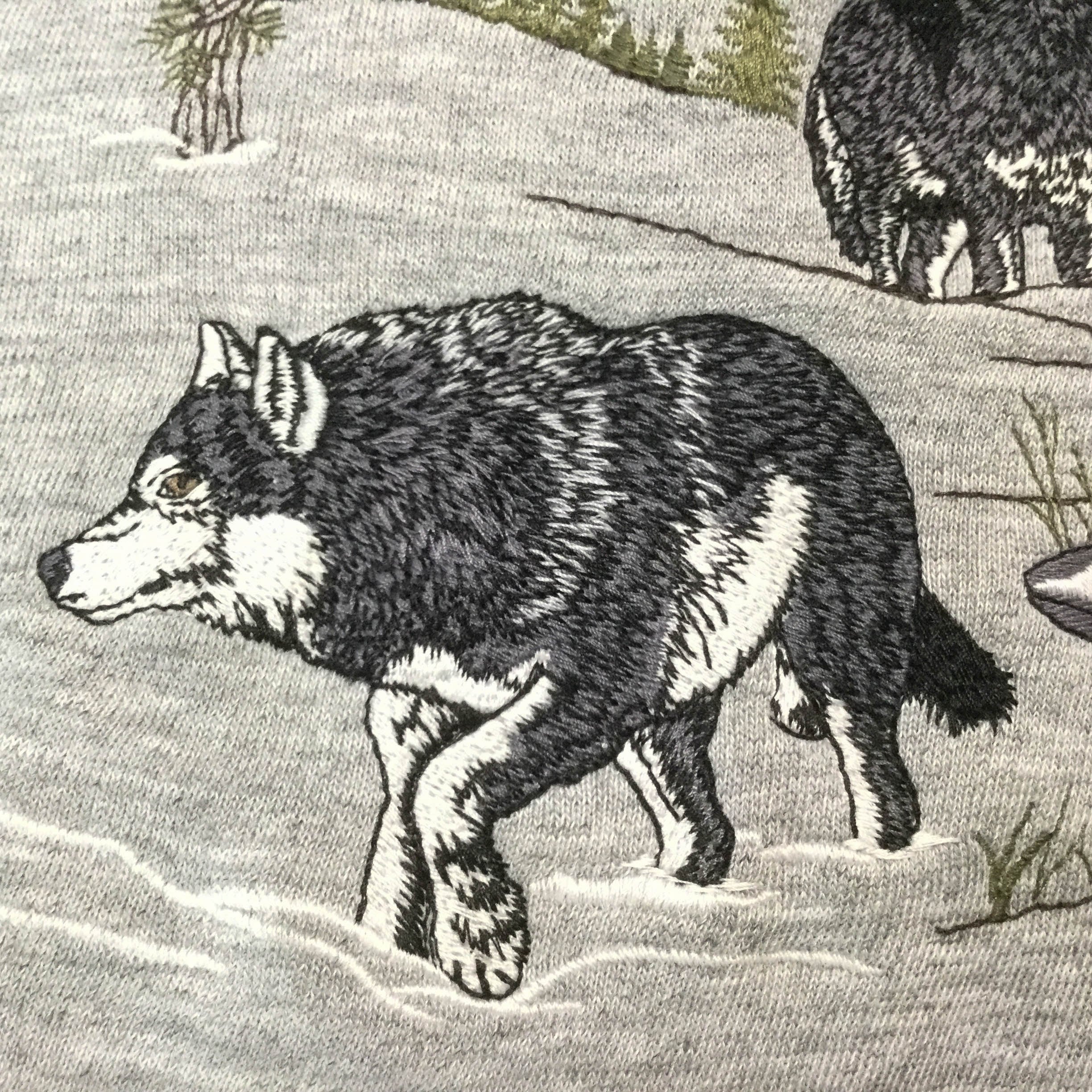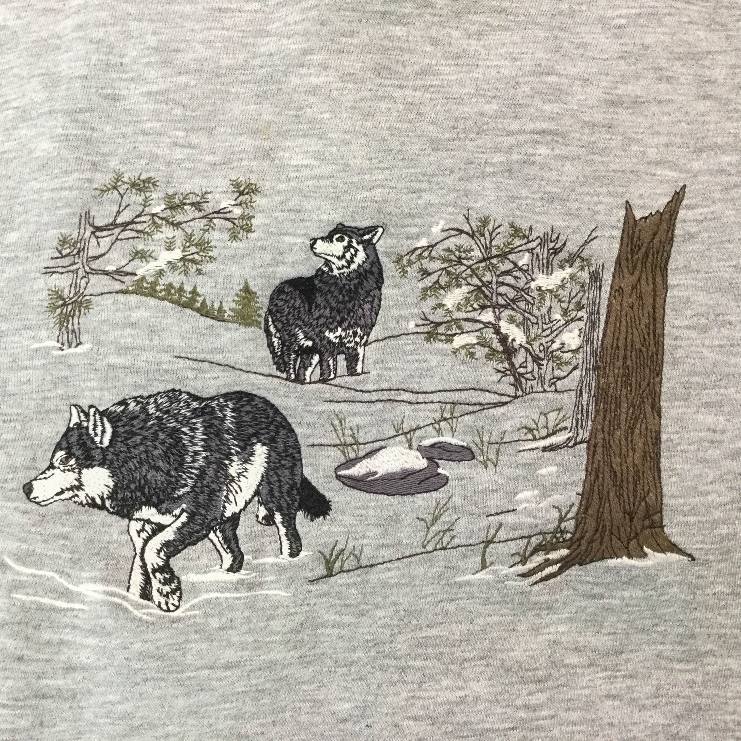 古着 長袖刺繍スウェット 刺繍 狼 オオカミ 裏起毛 XLサイズ アメリカ輸入古着 カジュアル ストリート 秋冬 XL グレー