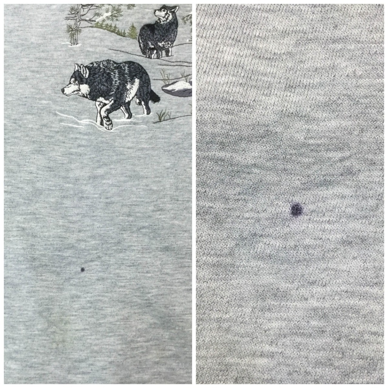 フロントの狼刺繍がインパクトのある、グレーカラーのスウェットです。