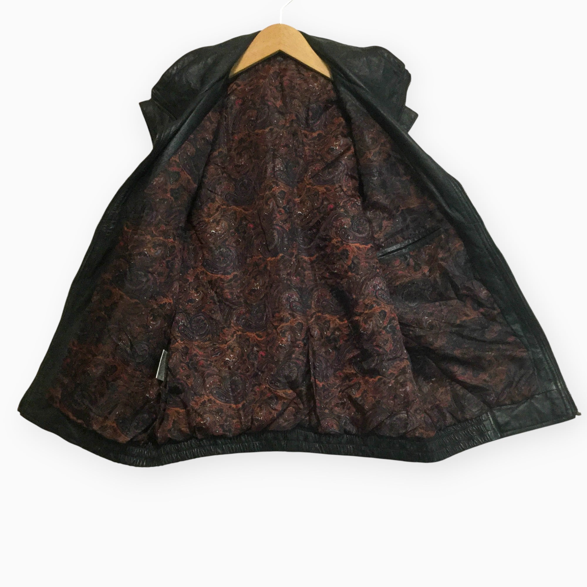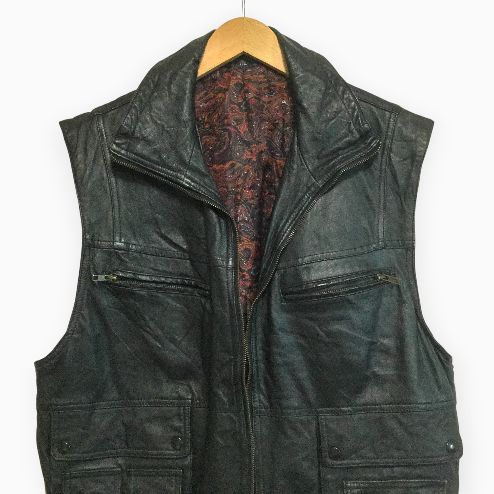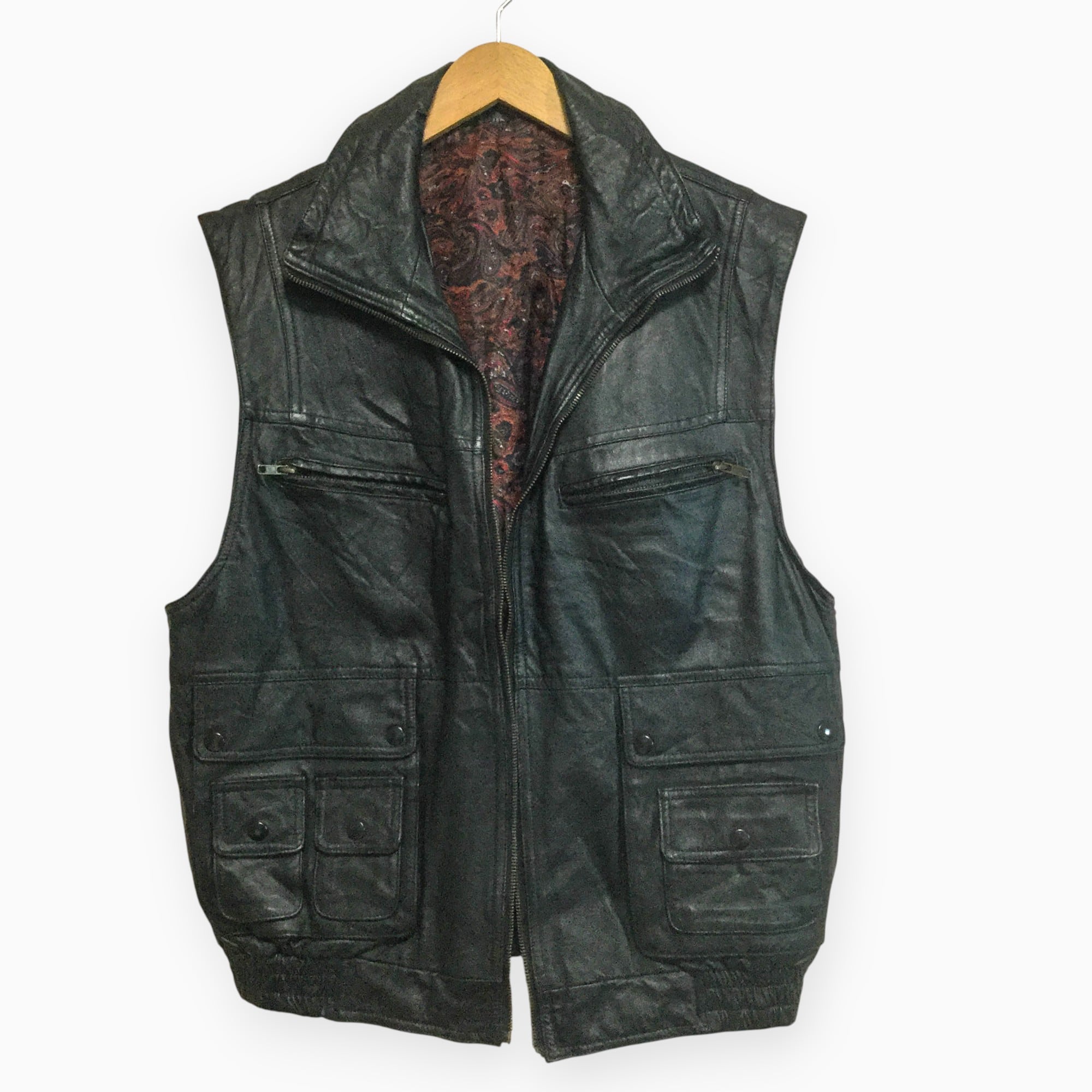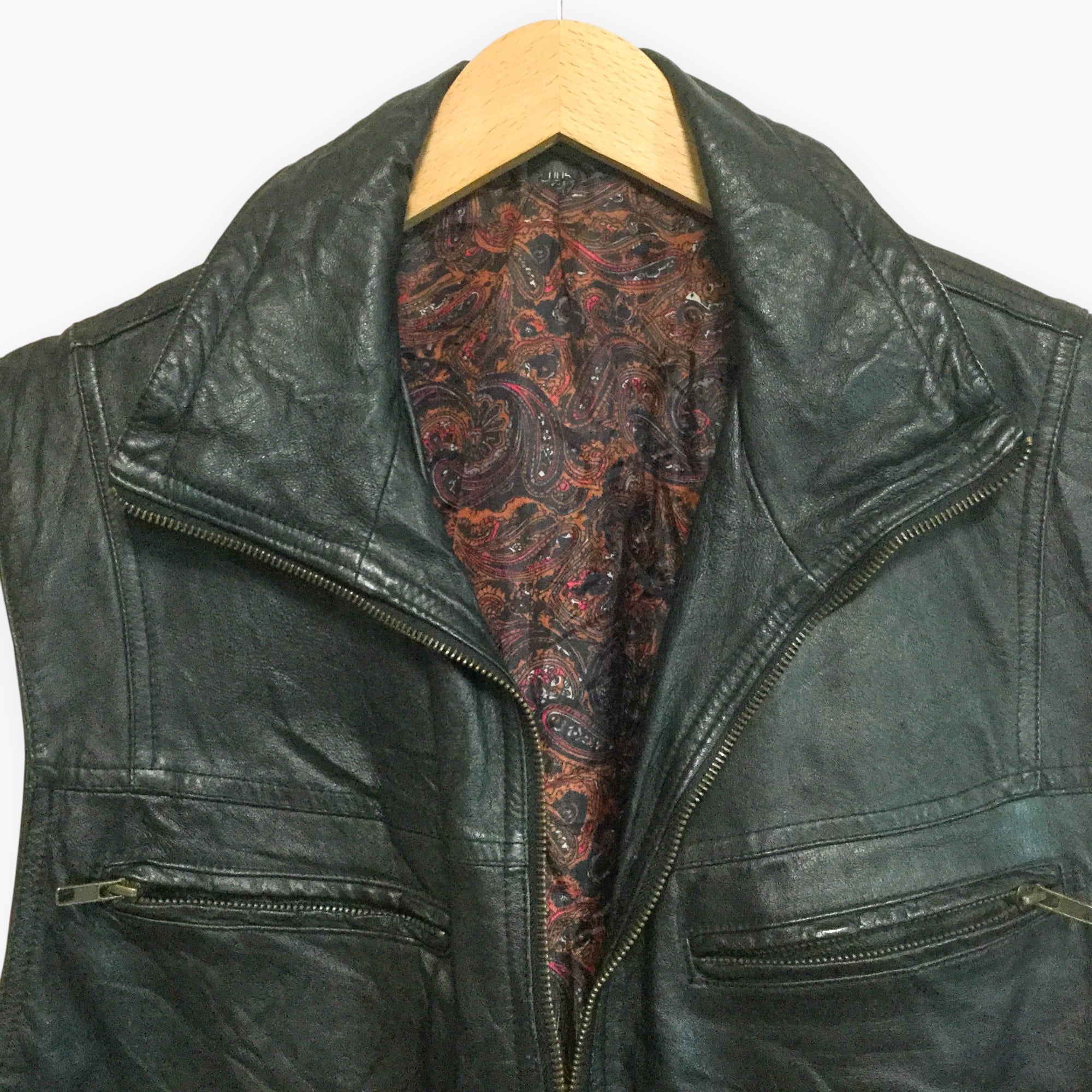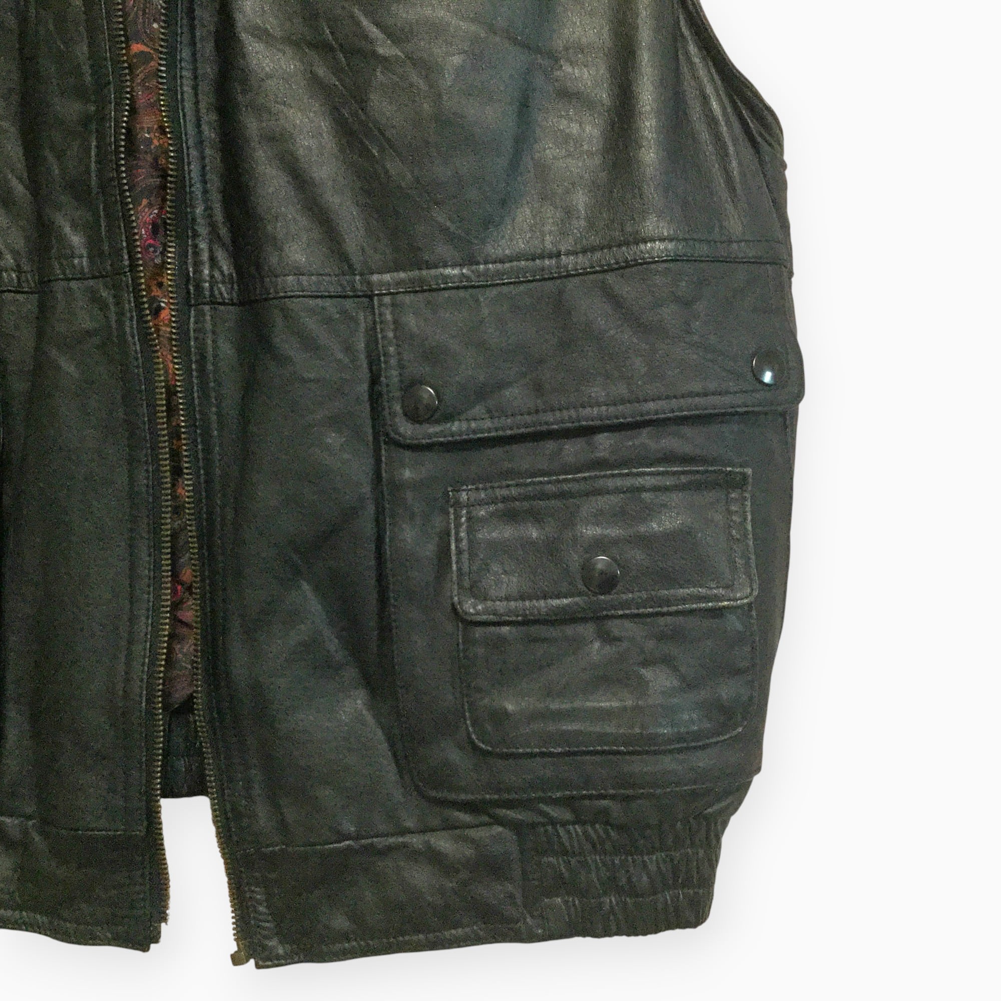 古着 レザーベスト ブラック 豚革 ナッパレザー ボタン留め ポケット付 シンプル スリムシルエット バイカー 2XL相当 黒