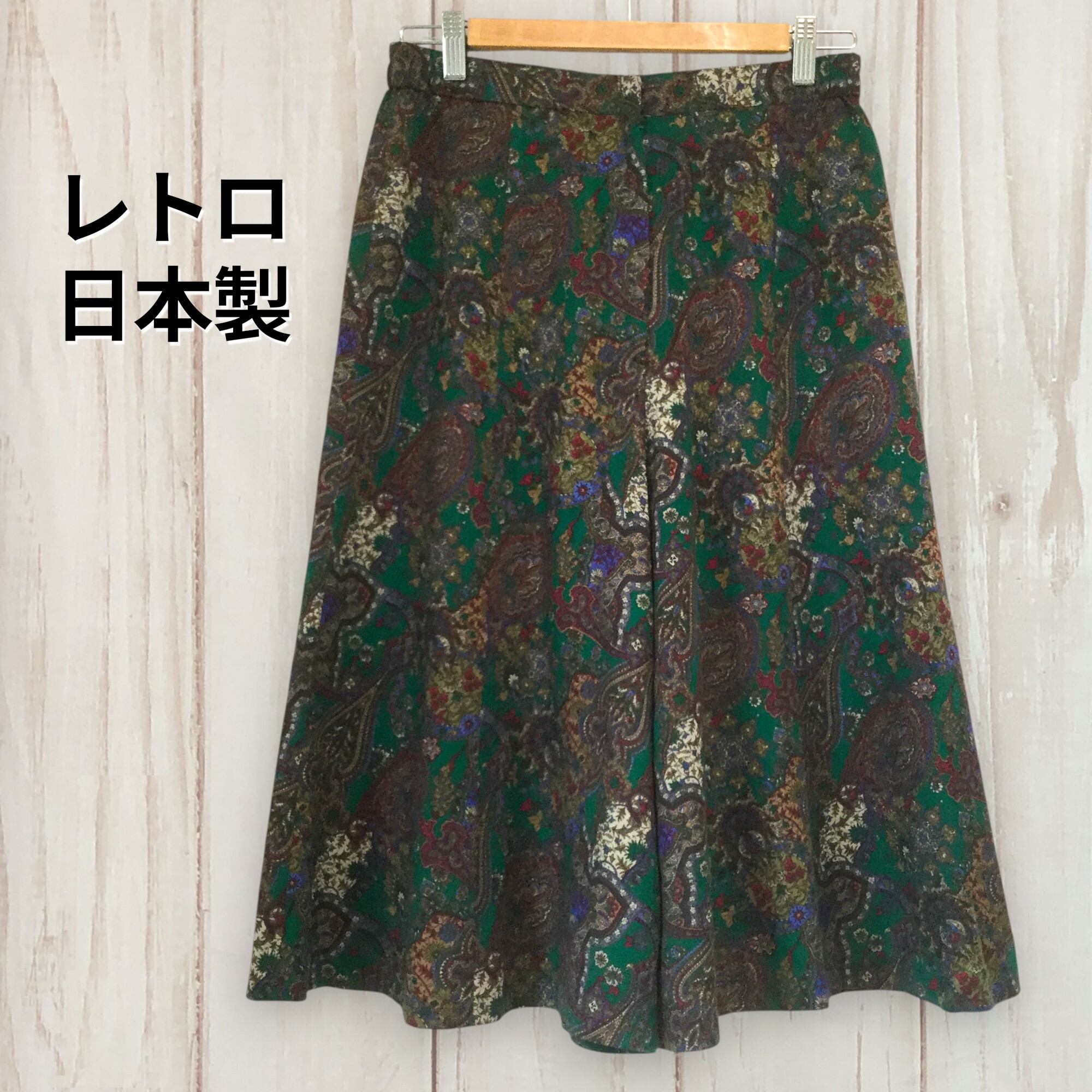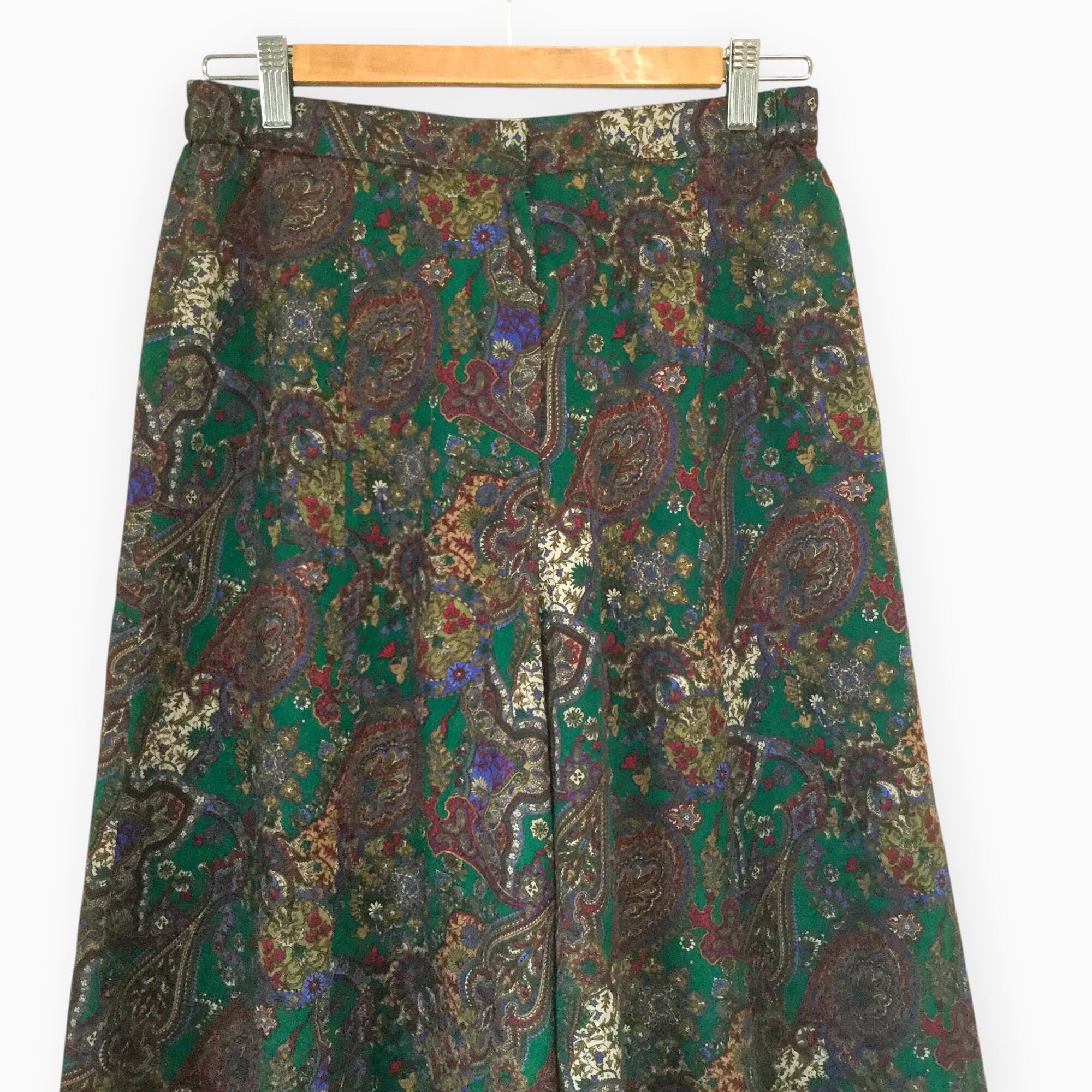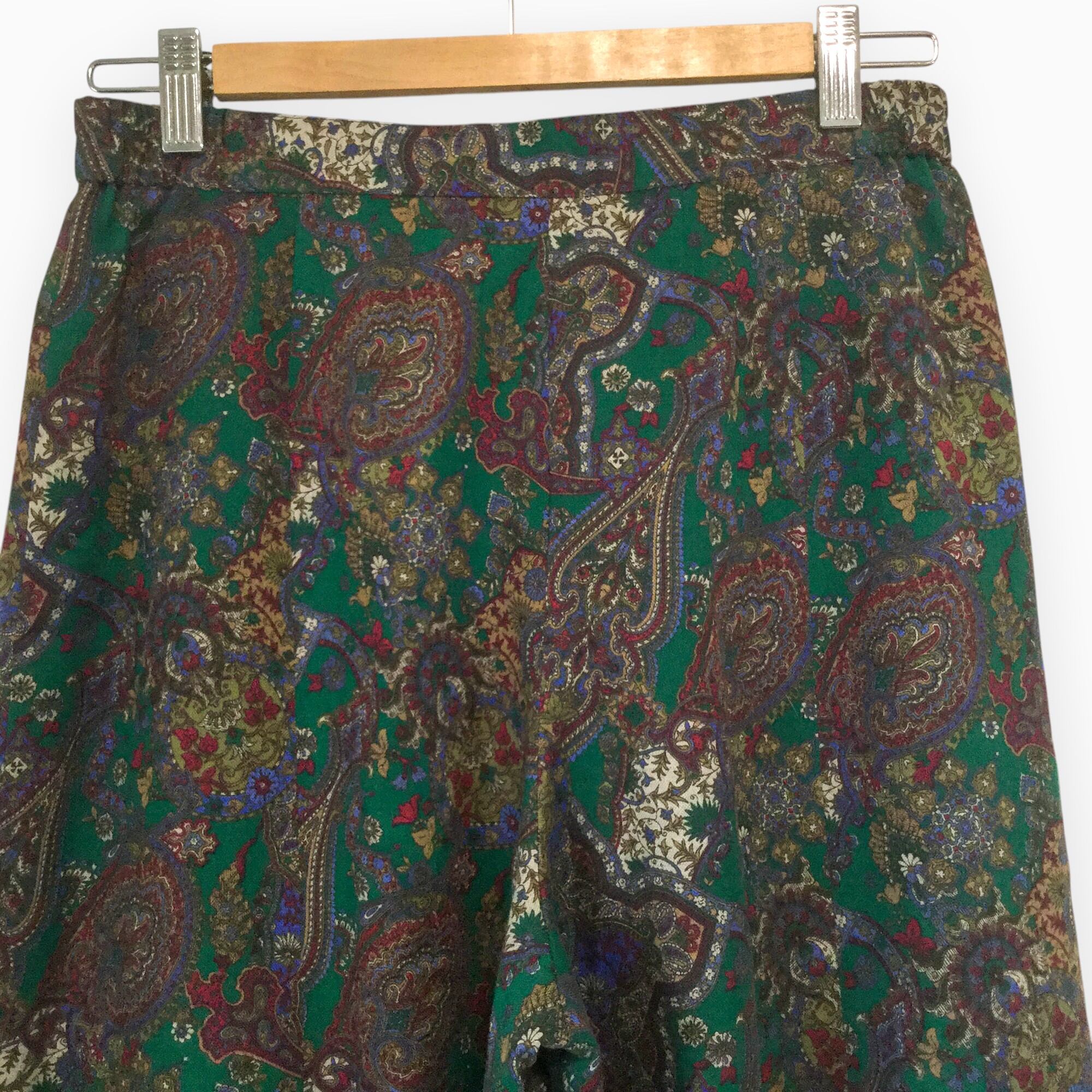 【昭和レトロ 総柄 ペイズリー 日本製 ワイドパンツ】M 古着 レディース [250627-028]
