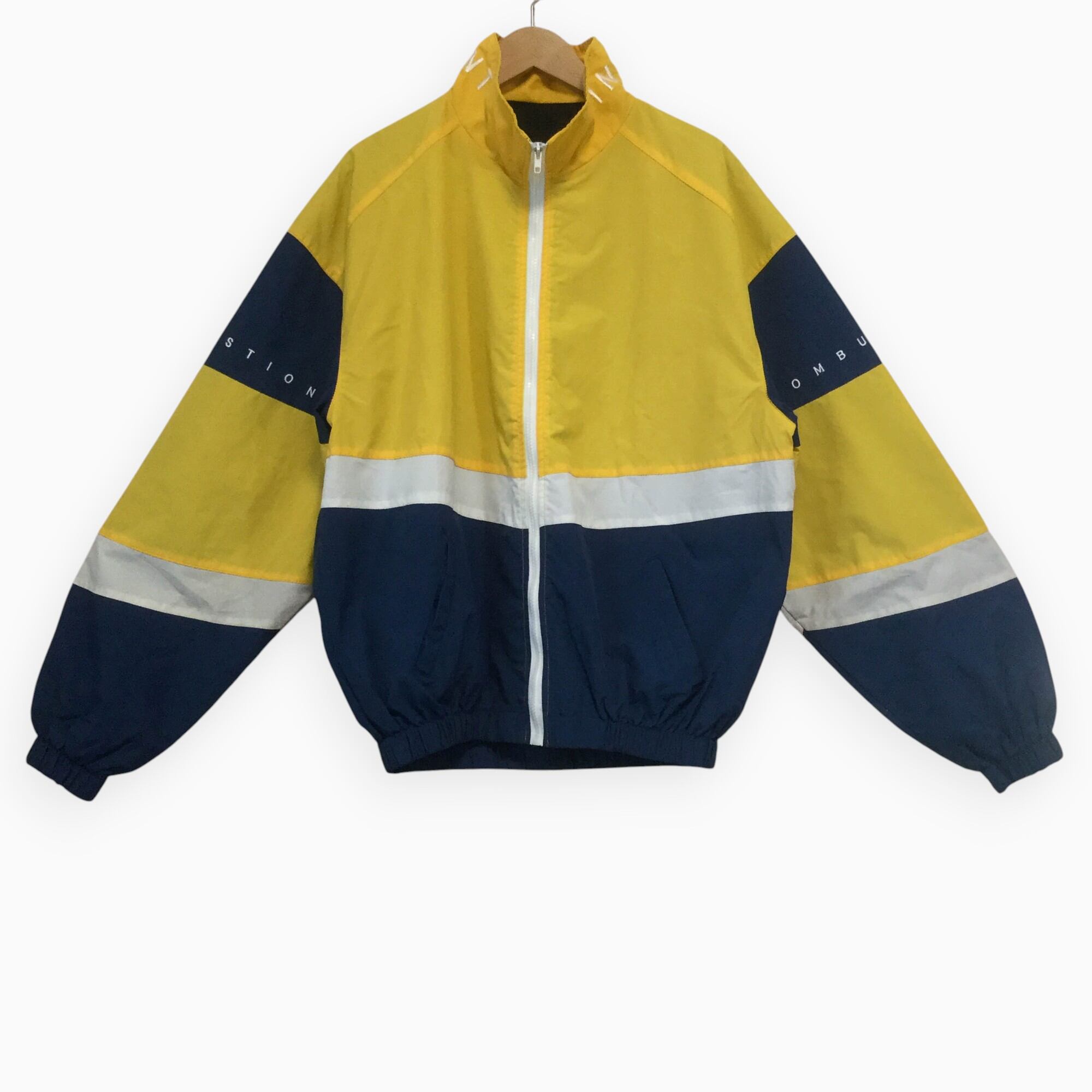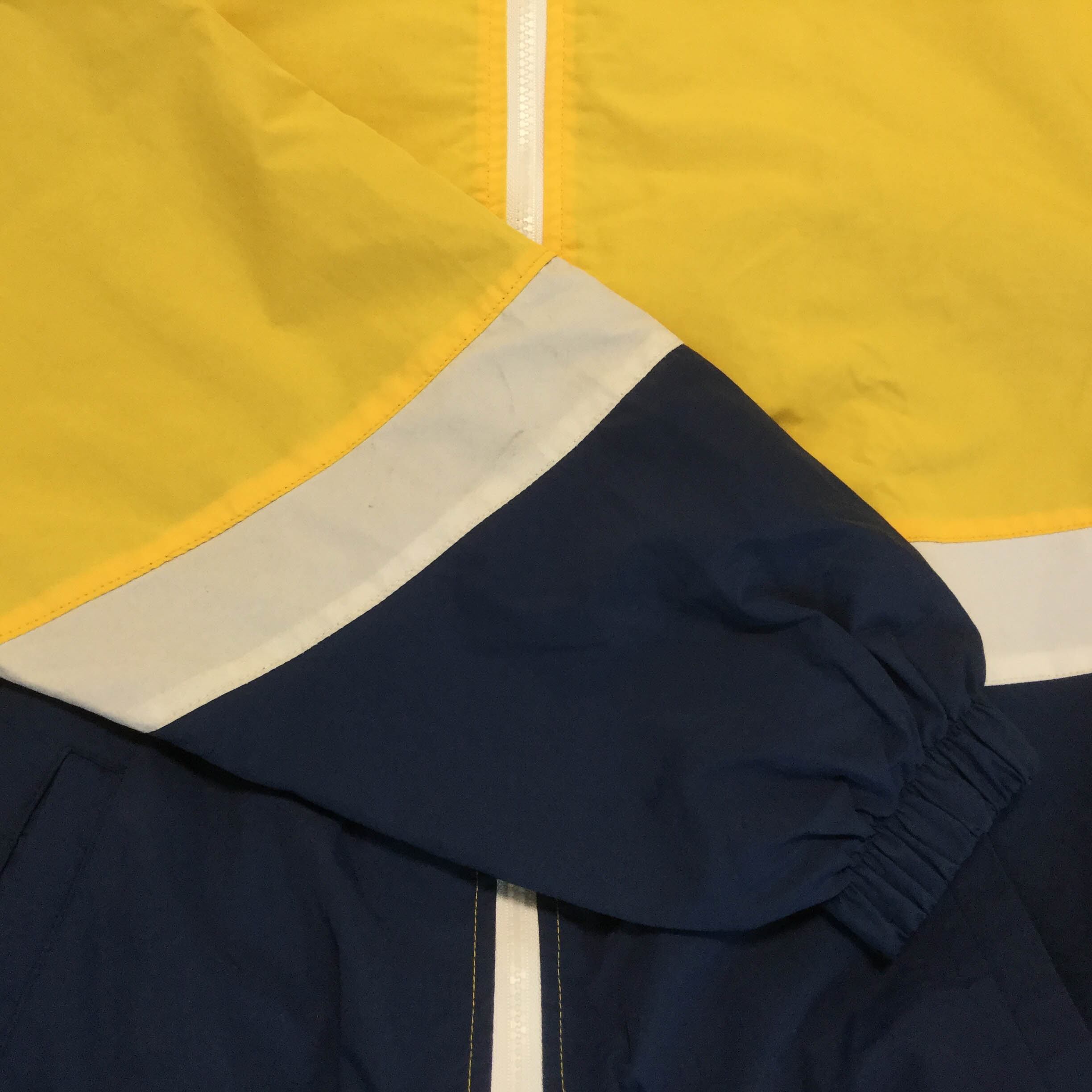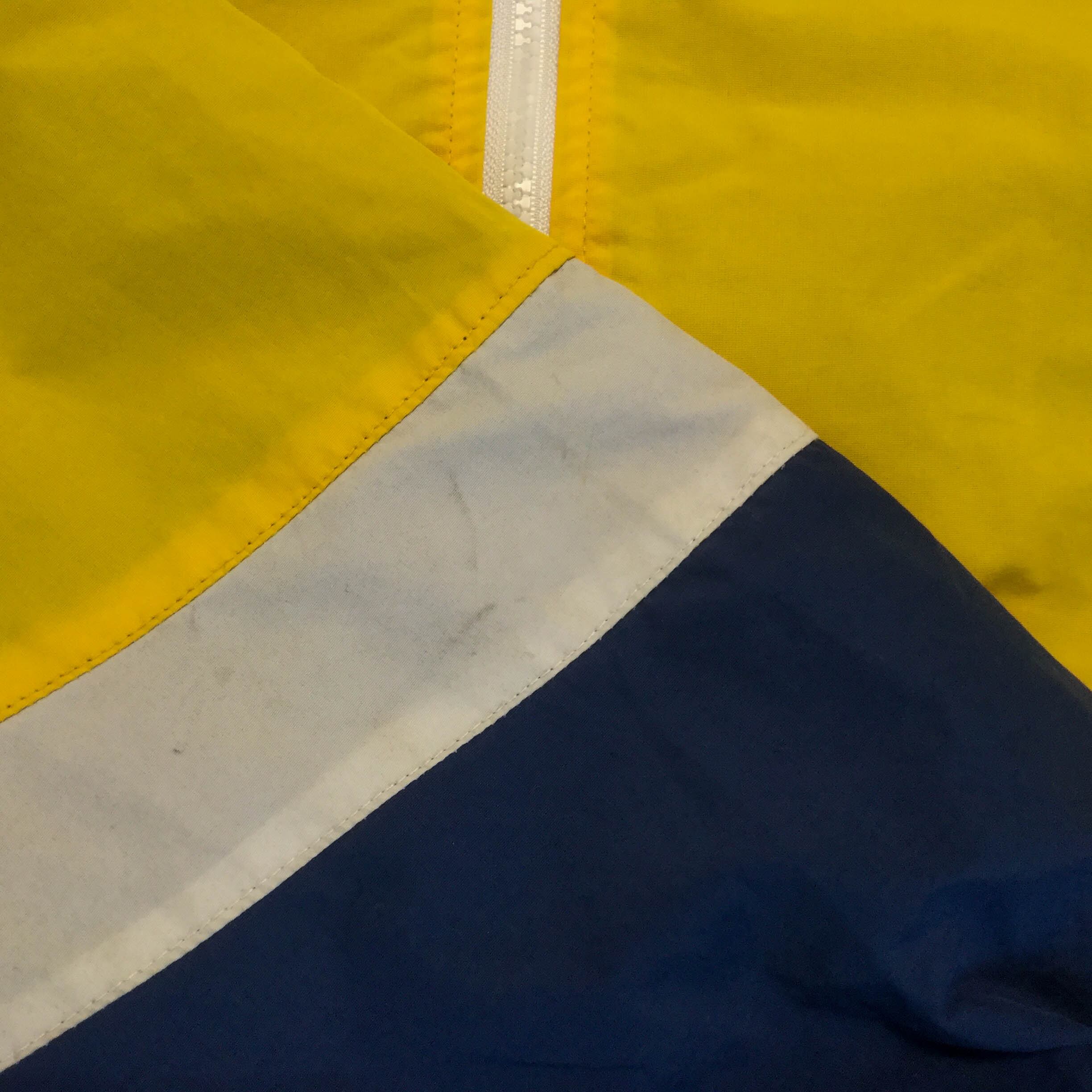 古着 ポリジャケット 刺繍 切替 マウンテン イエロー 90s 韓国製 L相当 黄/ネイビー/白