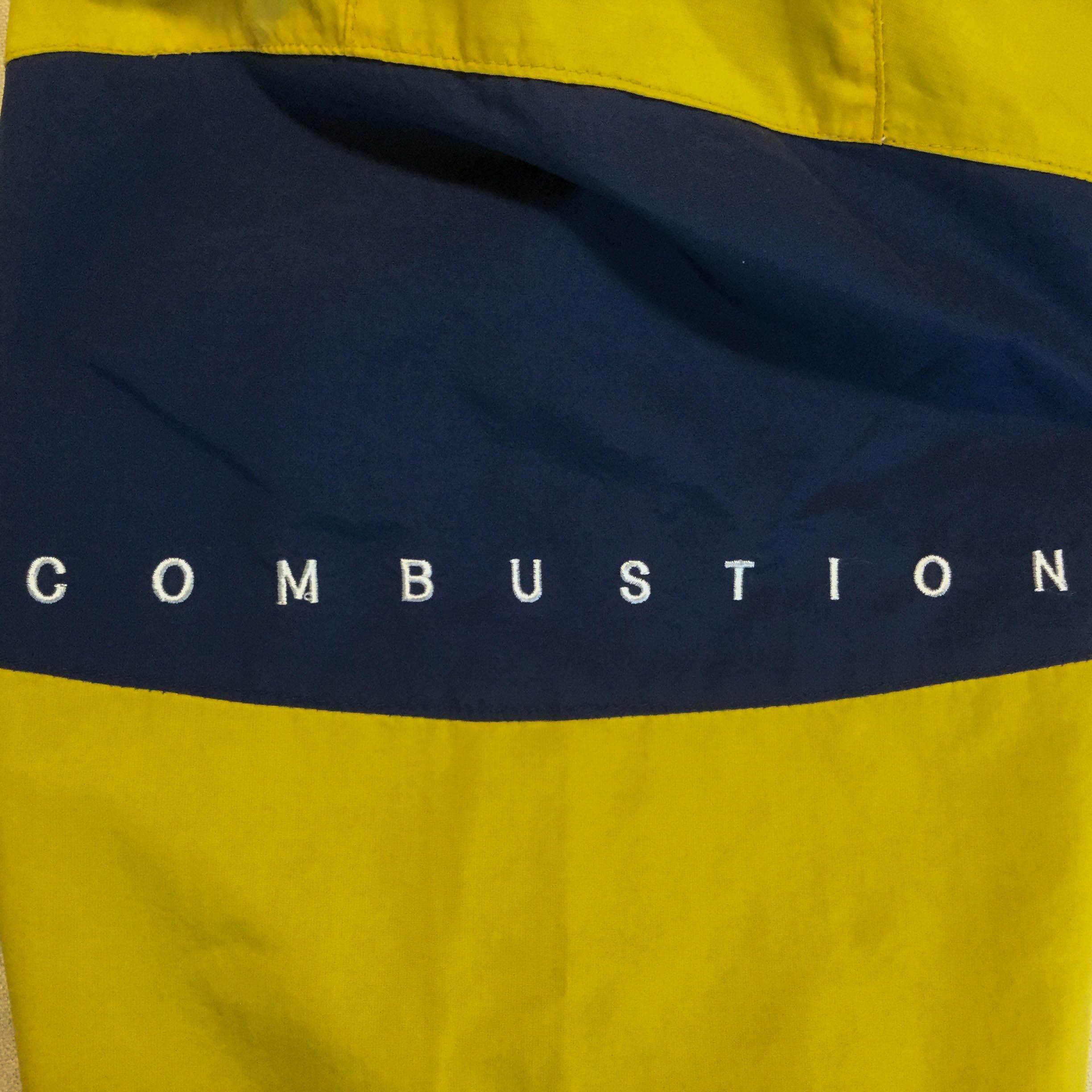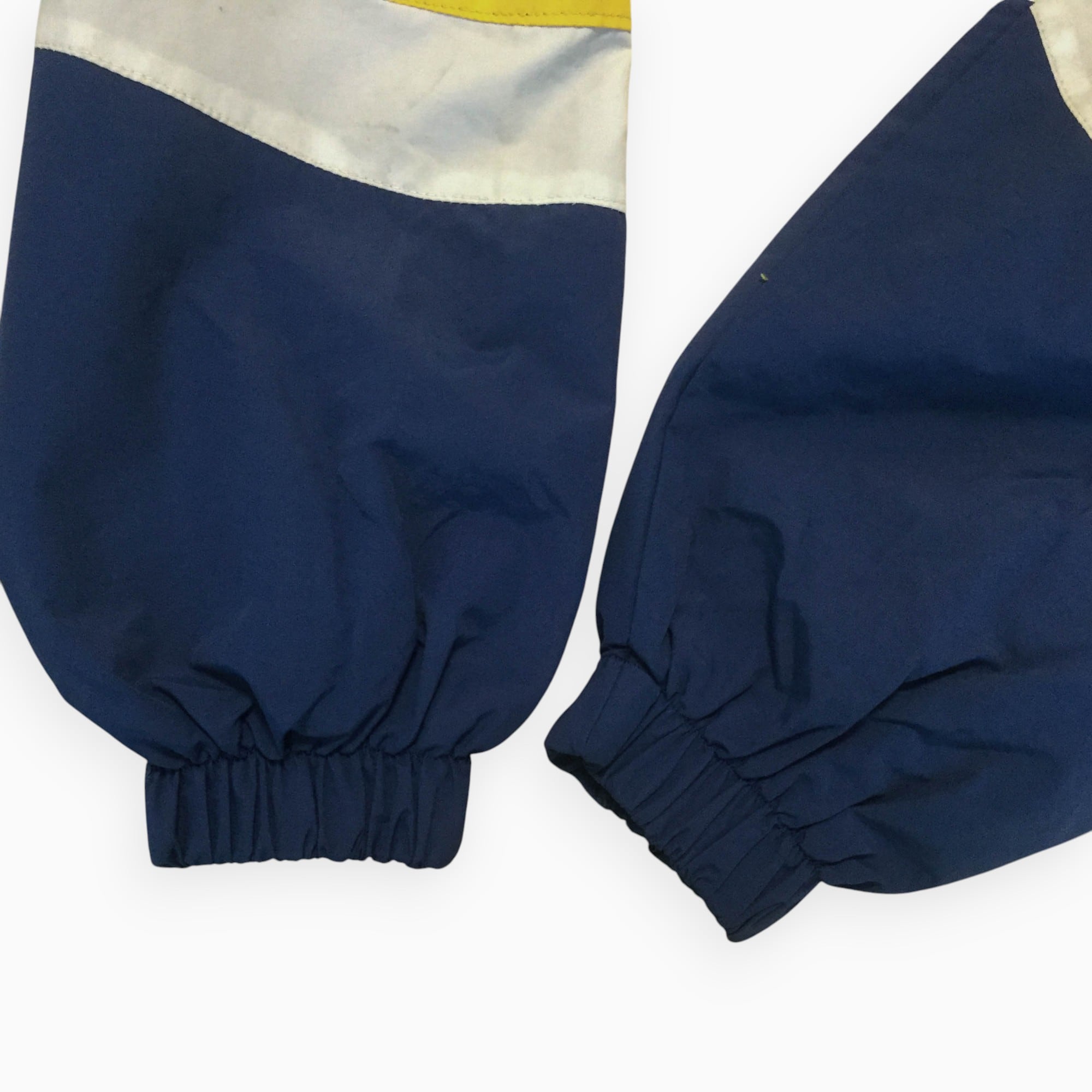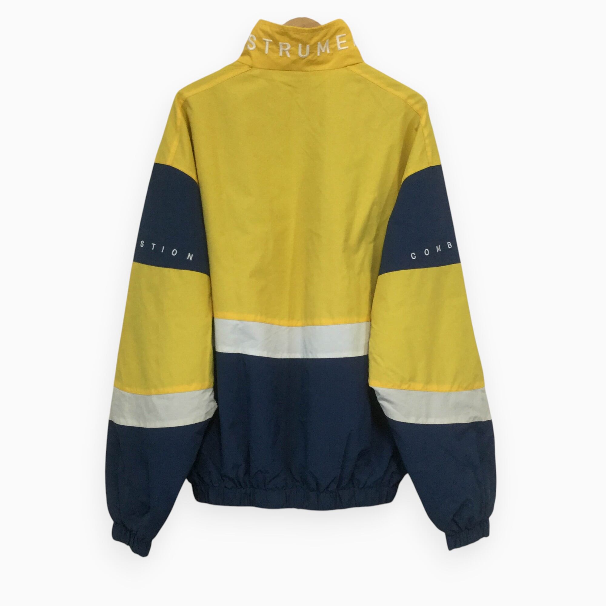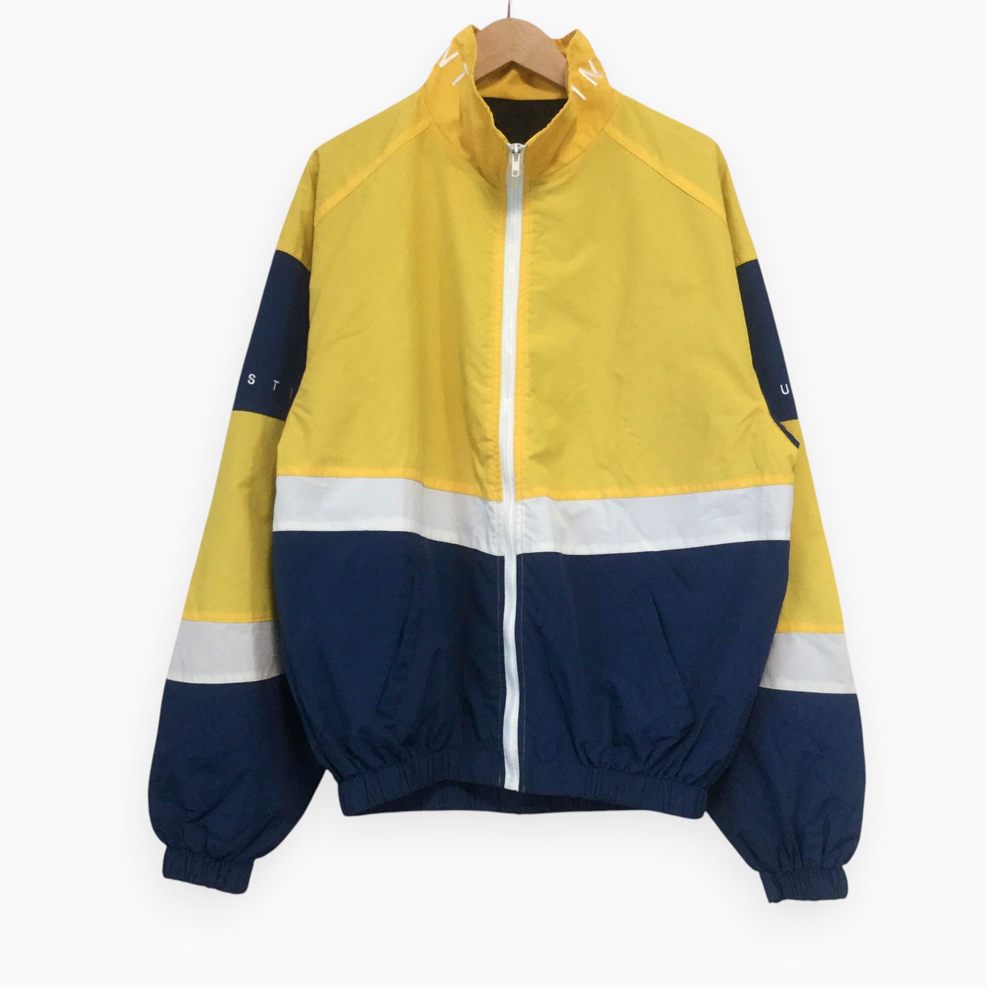 古着 ポリジャケット 刺繍 切替 マウンテン イエロー 90s 韓国製 L相当 黄/ネイビー/白