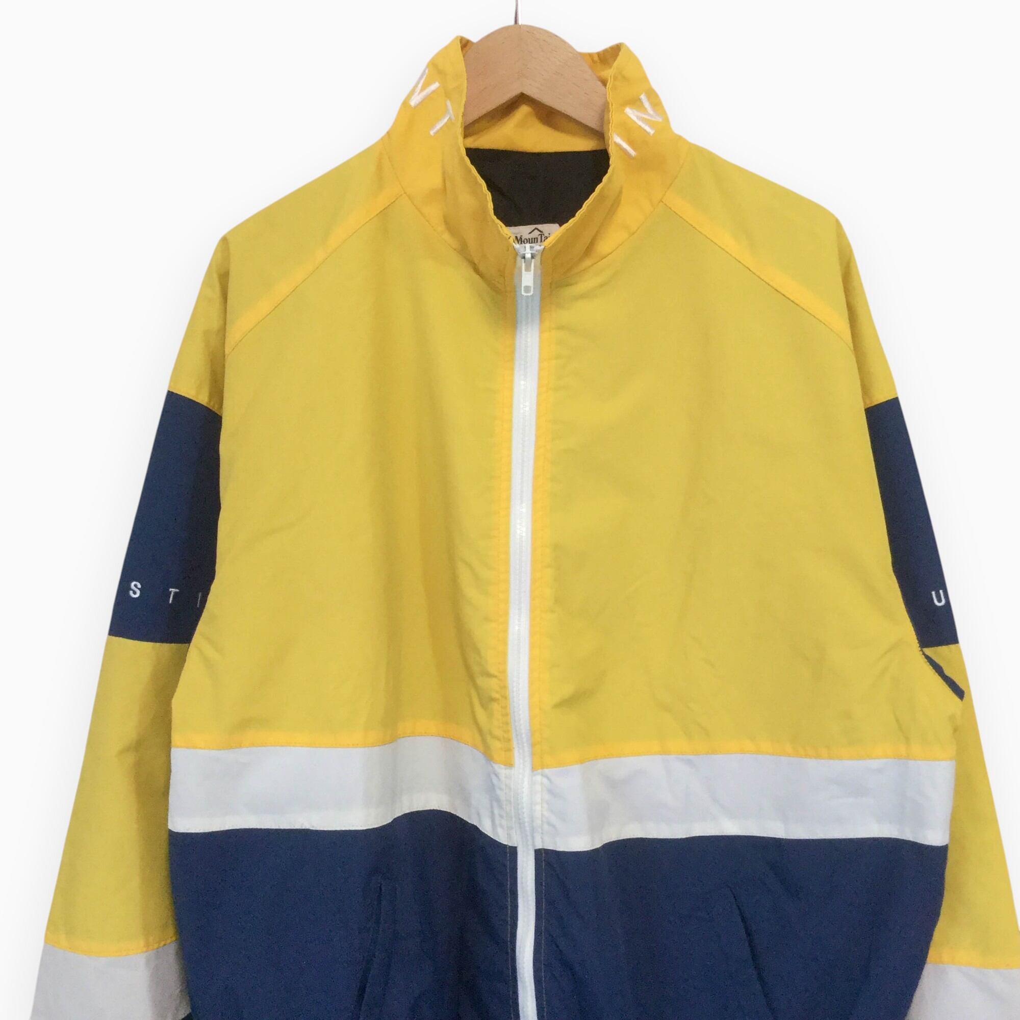 MounTain 黄/ネイビー/白 マウンテン ナイロンジャケット 切替 イエロー ネイビー ホワイト 90s 韓国製 刺繍