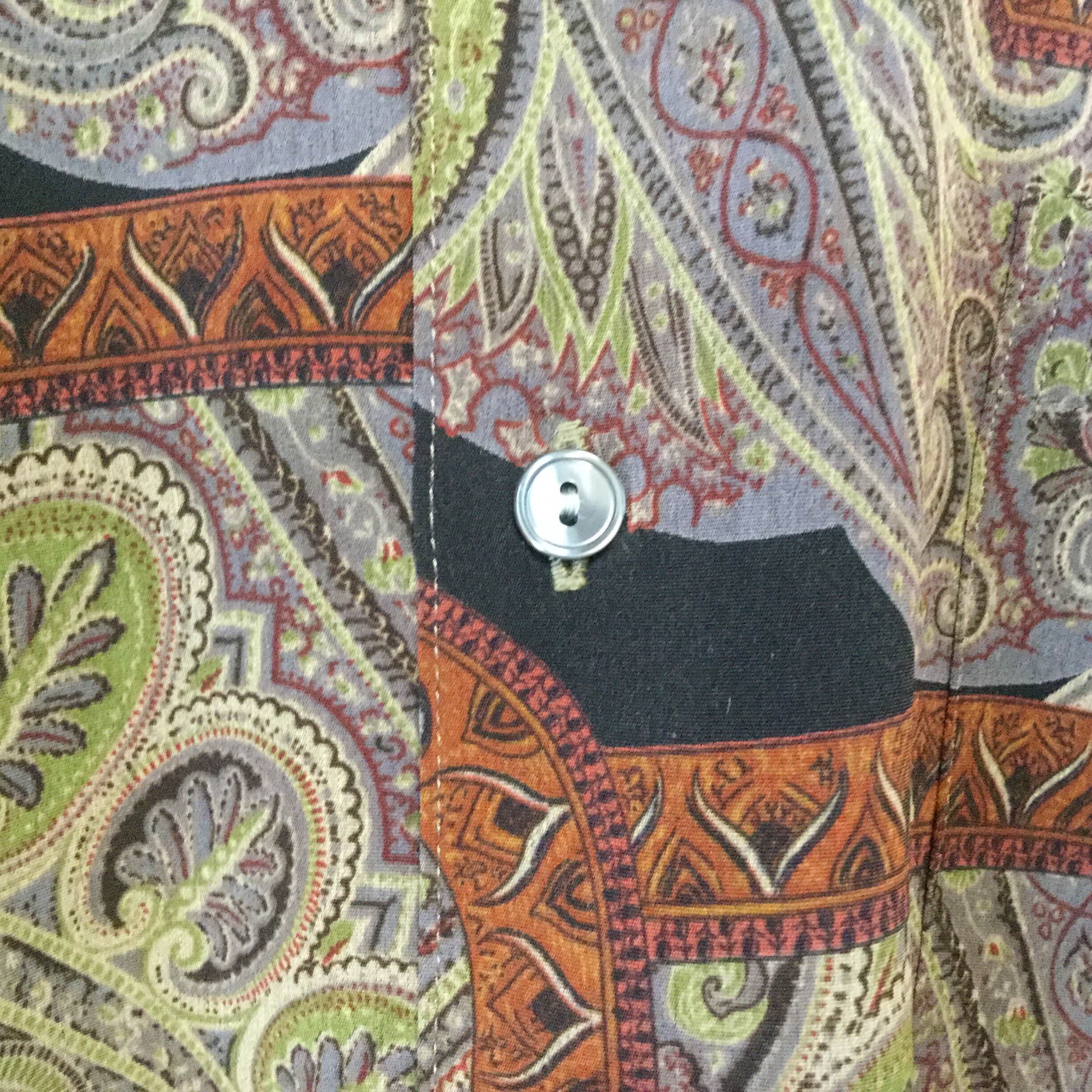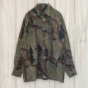 古着 長袖シャツ 日本製 総柄シャツ ペイズリー柄 スカーフ柄 昭和レトロ 90s ポリエステル100% テロ素材 ドレープ L